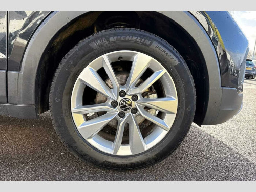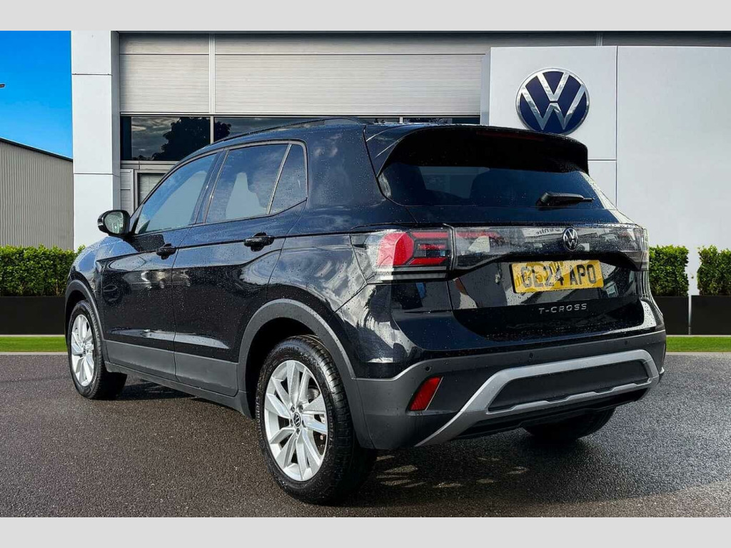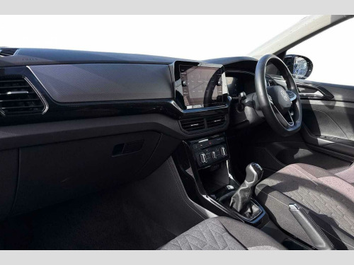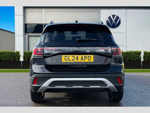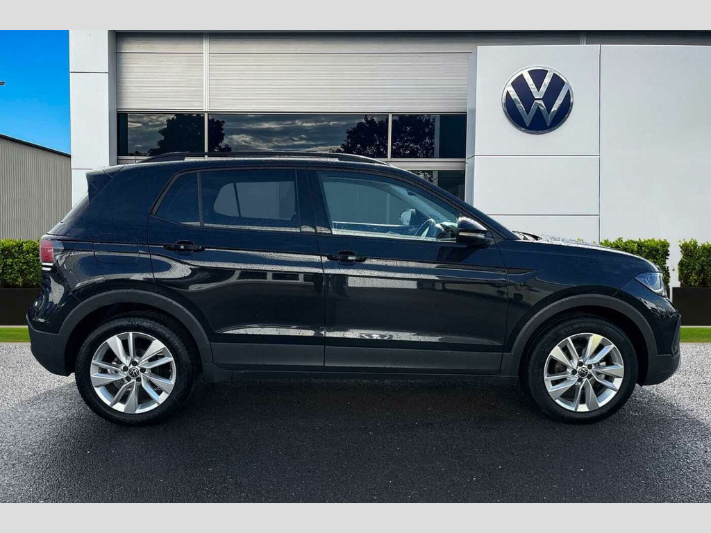 Take a look at this Volkswagen T-Cross Match that is available to purchase at Wrexham Volkswagen. Powering this T-Cross is a 1.0 TSI 115PS engine with manual transmission. The exterior, which is finished in a Deep Black Pearl paintwork, has a range of features on offer. To the front of the car you'll find the powerful LED headlights that provide exceptional visibility, and to the side the rear tinted windows for passenger privacy and the 17in Clayton alloy wheels. For added convenience this T-Cross also features roof rails and parking sensors that assist with maneuvering through audio and visual indications.
