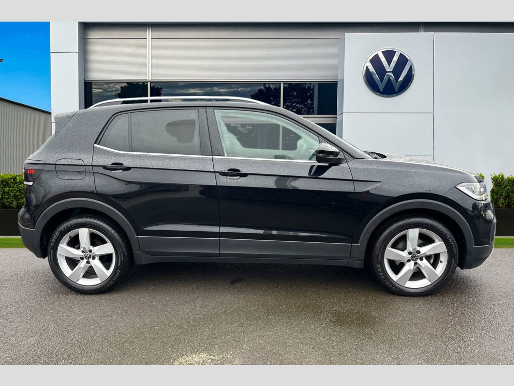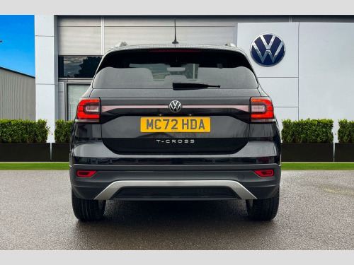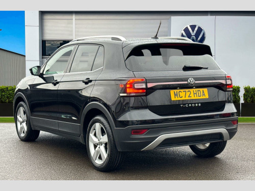 Now available at Wrexham Volkswagen is this Volkswagen T-Cross SEL. This T-Cross is powered by a 1.0 TSI 110PS engine with automatic transmission. The exterior is finished in the 'Deep Black Pearl' paintwork, which is complimented by the 17in Chesterfield alloy wheels to the side. This T-Cross comes with a range of features as standard such as the automatic headlights that provide outstanding visibility in dark conditions, a set of roof rails, front and rear parking sensors that assist with maneuvering, and driver assistance systems such as adaptive cruise control and lane assist.
