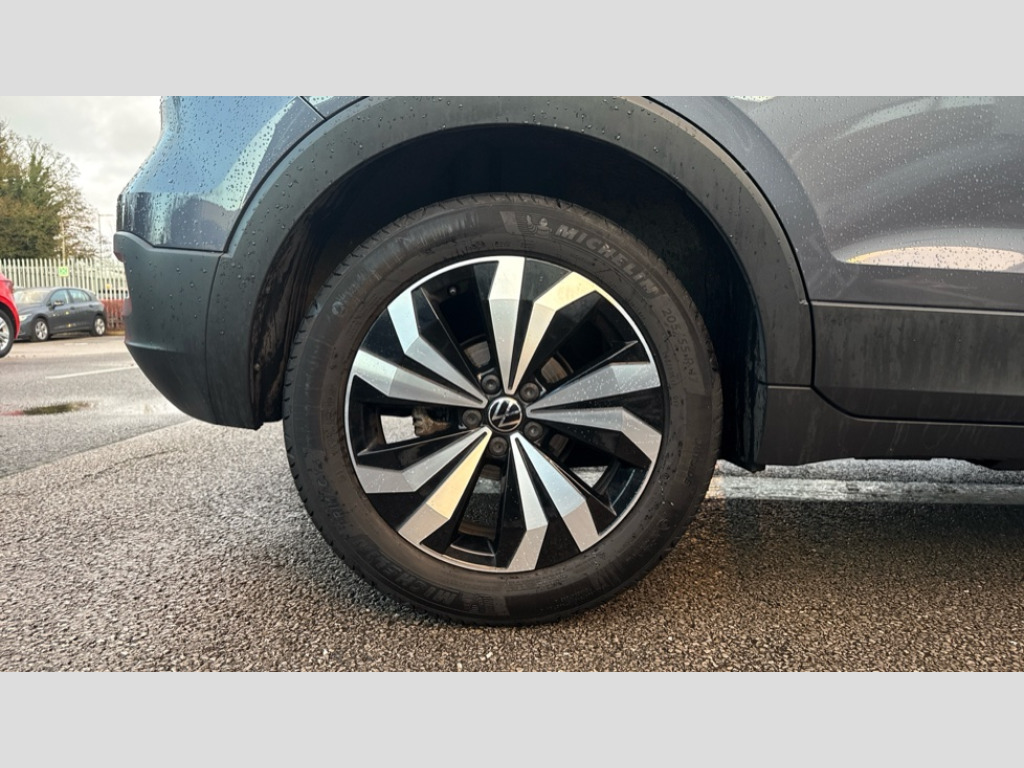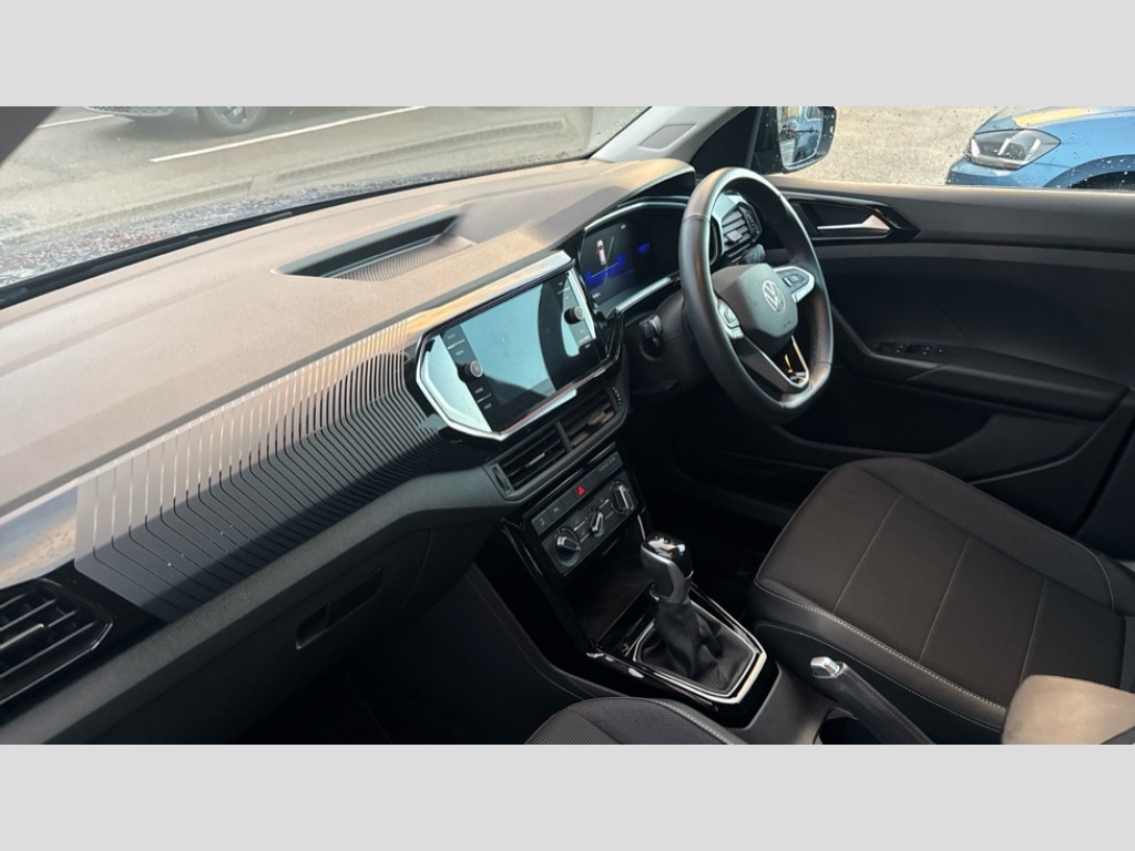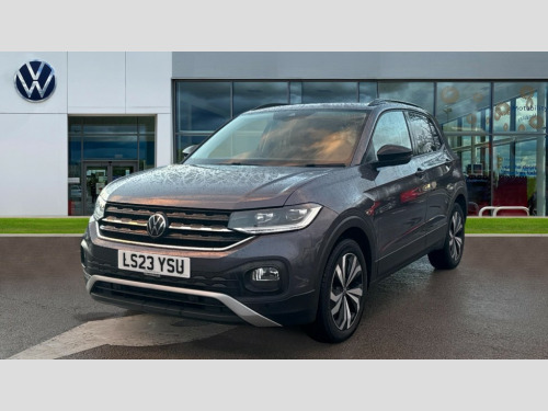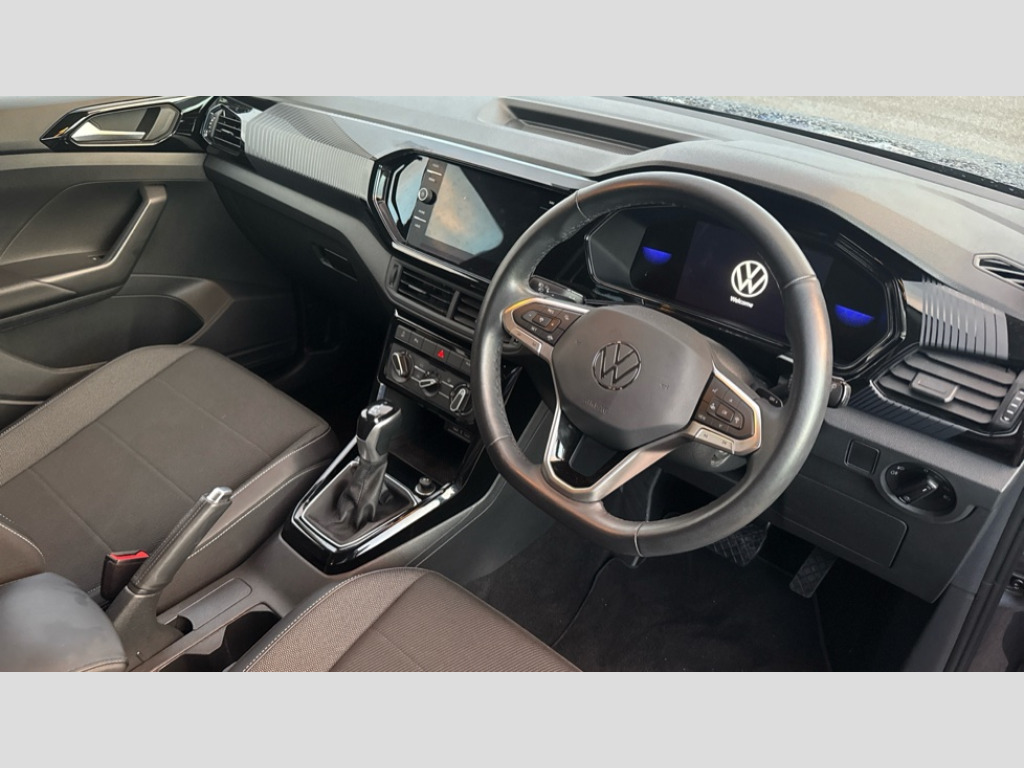 Volkswagen T-Cross 1.0 TSI 110 Black Edition 5dr DSG This 2023 Volkswagen T-Cross TSI Black Edition is a Volkswagen manufacturer approved vehicle with only one owner, offering peace of mind and a well cared for history. This stylish SUV features a 1.0 litre Euro 6 petrol engine, ensuring efficient performance. Inside, you'll find a manually controlled air conditioning system for your comfort, and the Ready 2 Discover infotainment system with Bluetooth connectivity keeps you entertained and connected on the go. For convenience and safety, it includes parking sensors front and rear, along with a dusk sensor that automatically activates the headlights. Adaptive cruise control also comes as standard, making longer journeys more relaxed.