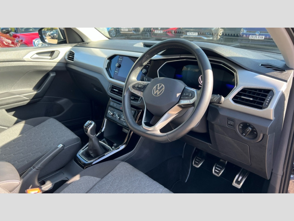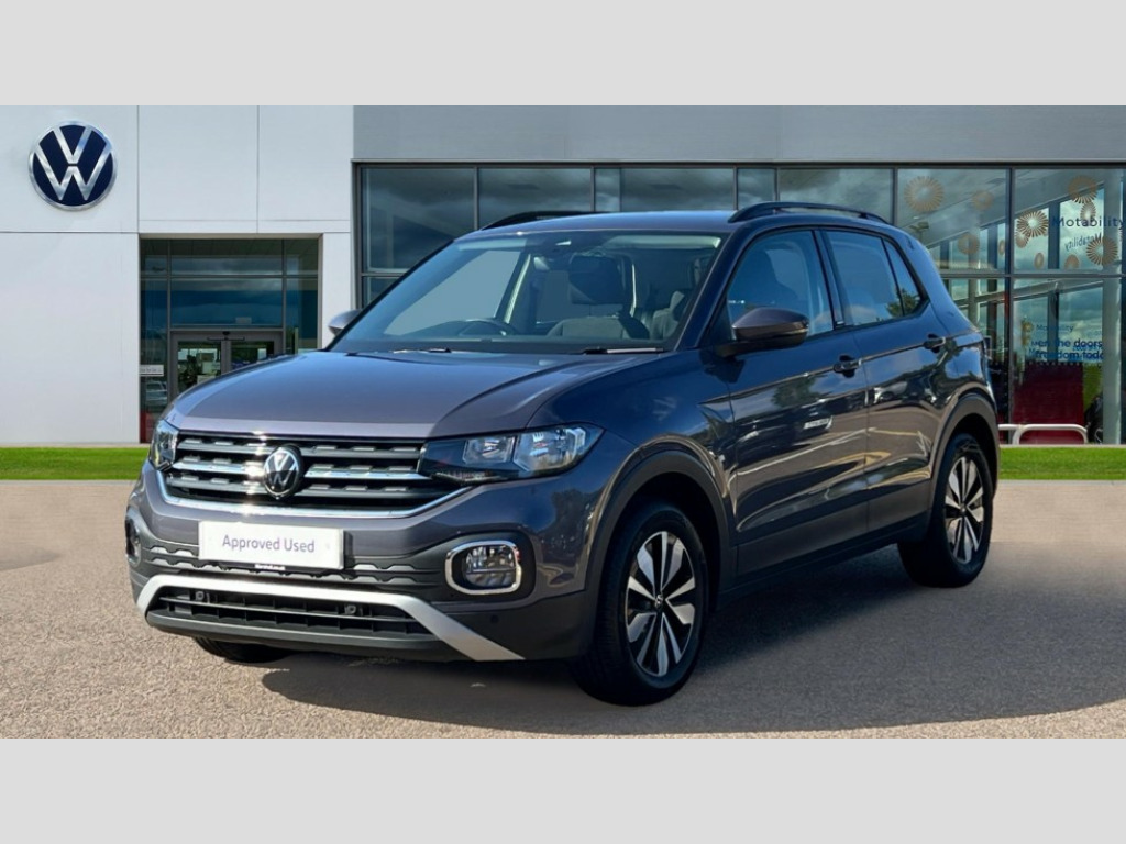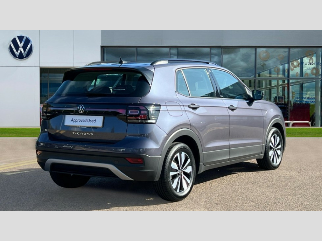 Volkswagen T-Cross 1.0 TSI 110 Move 5dr 'Lights On' Reminder warning buzzer, 8" Digital cockpit, Adaptive cruise control including front assist, forward collision warning, autonomous emergency braking, speed limiter, Blind spot monitoring, Bluetooth telephone and audio connection for compatible devices, Car information display, Driver alert system, E-Sim card for online connectivity, eCall emergency call system, Lane assist, Low washer fluid warning light, Multifunction computer with visual gear change recommendation for fuel consumption, Operating permit alteration, Power assisted speed sensitive steering, Speedo, rev counter, electronic odometer, trip, service interval display, exterior temperature and fuel gauge, Tailgate, Warning sound and light for doors and tailgate open, Warning sound and light for front seatbelts unfastened, We Connect Go Dongle, Wireless Car net app connect with Apple CarPlay, combined functionality of Apple CarPlay/Android Auto and MirrorLink, Battery regeneration during braking, Misfuel prevention device, Start-stop system with battery regeneration (recuperation - energy recovery during braking), 2 USB C ports in front, 2 USB charging sockets on the centre console in the rear charging capacity upto 45W, DAB Digital radio receiver, Diversity antenna for FM reception, Multi device interface (MDI) with USB connection, Music playback - MP3, WMA and AAC files, Premium USB cable for Apple or Android smartphone compatibility, Radio, Simultaneous pairing of 2 compatible mobile devices, Title and cover art display, Automatic hazard lights activation under emergency braking, Black roof rails, Body colour door handles, Body colour door mirrors with integrated indicators, Body coloured bumpers, Dusk sensor + automatic driving lights, Electrically foldable, adjustable and heated door mirrors with reverse activated kerb view adjustment on passenger's side, Front and rear electric windows, Front fog lights with static cornering function, Galvanised body, Heat insulating darkened glass in side and rear windows, LED third brake light, Lower door sills and door pillars in black, Radiator grille with chrome trim and chrome bezel front fog lamp, Rear fog light on one side, reversing light on both sides, Rear lights incorporating LED technology, Rear side wing doors, Rear window aerial, Rear windscreen washer and wiper with interval delay, Reflectors in all doors, Scuff plates, Tailgate with integrated roof spoiler, Windscreen wipers/ intermittent wipe + 4 position delay, Without dynamic road sign display, 12V Accessory socket in centre console, 2 Front and rear reading lights incorporating LED technology, 3 rear head restraints and 3 rear three point seat belts with ECE label, 3 seat bench in 2nd row, 60/40 split folding rear seat backrest, Ambient lighting and sourround lighting, Brushed stainless steel pedals, Child seat anchor for child seat system i-Size, 2x top tether and child seat anchor in front on front passenger side, Decorative strips doors in tomension silver leaf, Door and side trim panel, Drawer under drivers seat, Dust and pollen filter, Fabric upholstery, Front + rear carpet mats, Front centre armrest with storage compartment, Front seat back storage pockets, Front seats with adjustable lumbar support, Glovebox, Heating and fresh air system with 4 stage blower, Height/reach adjust steering wheel, Instrument lighting white adjustable panel illumination, LED interior light with switch off delay and dimmer, Luggage compartment cover, Luggage compartment lighting, Manual air conditioning, Manual front seats with height adjustment, MOVE badging on B-Pillar and door sill, Single front passenger seat, Storage compartment in drivers and front passengers door, Sun visors without mirror with ticket pocket on driver side, on front passenger side with airbag label on sun visor a.B-pillar, Three spoke multi-function leather trimmed steering wheel and gearknob, Unsplit sliding rear seat bench, Chrome pack - T-cross, 3-point seat belts in front with electric tensioner + height adjustment, Anti-lock Braking System (ABS) with Hydraulic Brake Assist (HBA), Automatic post collision braking system, Disc brakes in front, Disc brakes in rear, Driver and front passenger safety-optimised head restraints, Drivers and Front Passengers airbags with front passengers airbag deactivation switch, ESC with EDL, ASR, EDTC and trailer stabilisation function, Extended and predictive pedestrian/cyclist protection, Front and rear curtain airbags, Front seat side impact airbags, Hill start assist, Pre crash preventive occupant protection, Proactive passenger protection system in combination with front assist, Rear door child safety locks, Rigid safety cell with front and rear crumple zones, Single torn horn, Tyre pressure loss indicator, Volkswagen roadside assistance, Alarm with interior protection and deactivation via infotainment system, Electronic engine immobiliser, Remote tailgate unlocking using key fob, 16" Zurich alloy wheels + anti theft wheel bolts, Breakdown kit