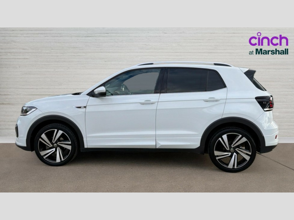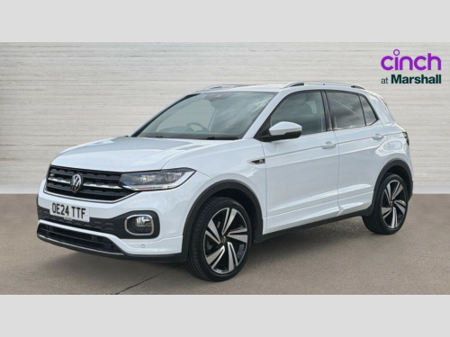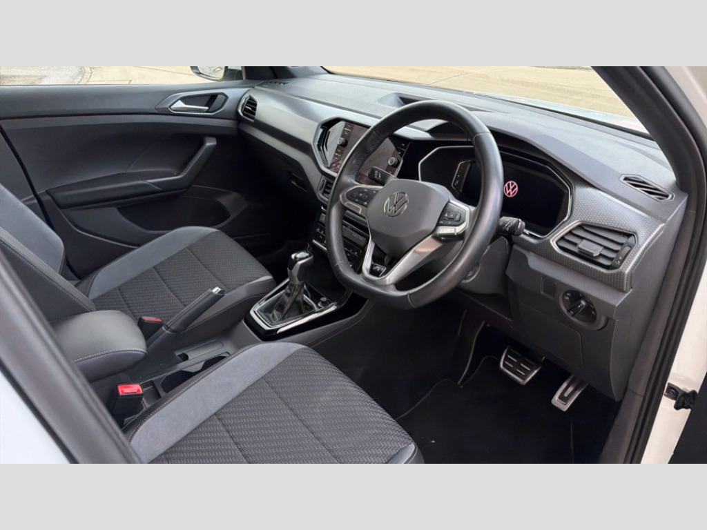 Volkswagen T-Cross 1.0 TSI 110 R-Line 5dr DSG 'Lights On' Reminder warning buzzer, 2D/3D map view, Active info display - 10.25" High resolution TFT dash display screen, Adaptive cruise control including front assist, forward collision warning, autonomous emergency braking, speed limiter, Blind spot monitoring, Bluetooth telephone and audio connection for compatible devices, Car information display, Driver alert system, eCall emergency call system, Lane assist, Low washer fluid warning light, Multifunction computer with visual gear change recommendation for fuel consumption, Operating permit alteration, Power assisted speed sensitive steering, Speed limit display, Speedo, rev counter, electronic odometer, trip, service interval display, exterior temperature and fuel gauge, Stop/start system, Tailgate, Warning sound and light for doors and tailgate open, Warning sound and light for front seatbelts unfastened, We connect plus preparation, Wireless Car net app connect with Apple CarPlay, combined functionality of Apple CarPlay/Android Auto and MirrorLink, Battery regeneration during braking, Misfuel prevention device, 2x USB connection with USB charging sockets and in rear centre console, DAB Digital radio receiver, Diversity antenna for FM reception, Multi device interface (MDI) with USB connection, Music playback - MP3, WMA and AAC files, Premium USB cable for Apple or Android smartphone compatibility, Simultaneous pairing of 2 compatible mobile devices, SMS Functionality, Three route options - Fast, Short, Eco, Title and cover art display, Automatic hazard lights activation under emergency braking, Body colour door handles, Body colour door mirrors with integrated indicators, Body colour rear roof spoiler, Body coloured bumpers, Dusk sensor + automatic driving lights, Electrically foldable, adjustable and heated door mirrors with reverse activated kerb view adjustment on passenger's side, Front and rear electric windows, Front fog lights with static cornering function, Galvanised body, Heated rear window, LED third brake light, Lower door sills and door pillars in black, Radiator grille with chrome trim and chrome bezel front fog lamp, Rear fog light on one side, reversing light on both sides, Rear lights incorporating LED technology, Rear side wing doors, Rear tinted glass 65% approx light absorbing from B pillar backwards, Rear window aerial, Rear windscreen washer and wiper with interval delay, Reflectors in all doors, Silver roof rails, Stainless steel door sill protection, Tailgate with integrated roof spoiler, Unique R Line badging, Windscreen wipers/ intermittent wipe + 4 position delay, 12V Accessory socket in centre console, 2 Front and rear reading lights incorporating LED technology, 2 Zone electronic climate control with automatic air recirculation, 3 rear head restraints and 3 rear three point seat belts with ECE label, 3 seat bench in 2nd row, 60/40 split folding rear seat backrest, Ambient lighting and sourround lighting, Black headlining, Branded points of interest, Brushed stainless steel pedals, Carbon flag cloth upholstery, Drawer under drivers seat, Driver and front passenger sunvisor with vanity mirror, Driver's sunvisor with ticket holder, Dust and pollen filter, Front and rear carpet mats with contrast stitching, Front centre armrest with storage compartment, Front footwell illumination, Front seat back storage pockets, Front seat R Line logo with rear seat backrest, Front sports seat with height and lumbar adjustment, Glovebox, Heating and fresh air system with 4 stage blower, Height/reach adjust steering wheel, Instrument lighting white adjustable panel illumination, Interior light with delay, Isofix child seat preparation for 2 rear child seats, Leather trimmed three spoke multifunction steering wheel with contrast stitching and aluminium inserts with R Line logo, Luggage compartment cover, Luggage compartment lighting, Moveable and foldable Rear bench seat, Scuff plates in door apertures, Steering wheel paddle shift, Storage compartment in drivers and front passengers door, R Line styling pack - T-cross, 3-point seat belts in front with electric tensioner + height adjustment, Anti-lock Braking System (ABS) with Hydraulic Brake Assist (HBA), Automatic post collision braking system, Driver and front passenger safety-optimised head restraints, Drivers and Front Passengers airbags with front passengers airbag deactivation switch, ESC with EDL, ASR, EDTC and trailer stabilisation function, Front and rear curtain airbags, Front seat side impact airbags, Hill start assist, Pre crash preventive occupant protection, Proactive passenger protection system in combination with front assist, Rear door child safety locks, Rigid safety cell with front and rear crumple zones, Single torn horn, Tyre pressure loss indicator, Volkswagen roadside assistance, Alarm with interior protection and deactivation via infotainment system, Child security locks in rear doors, Electronic engine immobiliser, Remote tailgate unlocking using key fob, Race decorative inserts in dash and doors, 18" Nevada black alloy wheels, Breakdown kit