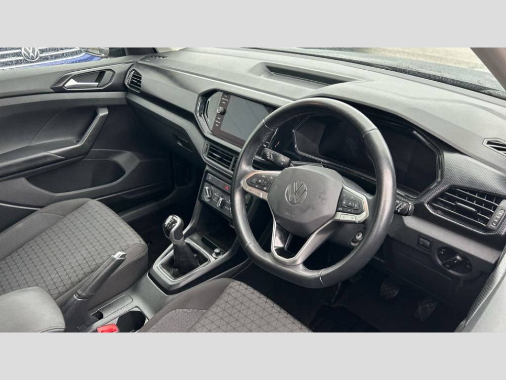 Volkswagen T-Cross 1.0 TSI 110 SE 5dr 'Lights On' Reminder warning buzzer, Adaptive cruise control including front assist, forward collision warning, autonomous emergency braking, speed limiter, Blind spot monitoring, Bluetooth telephone and audio connection for compatible devices, Car information display, Driver alert system, eCall emergency call system, Lane assist, Low washer fluid warning light, Multifunction computer with visual gear change recommendation for fuel consumption, Operating permit alteration, Power assisted speed sensitive steering, Speedo, rev counter, electronic odometer, trip, service interval display, exterior temperature and fuel gauge, Stop/start system, Warning sound and light for doors and tailgate open, Warning sound and light for front seatbelts unfastened, We Connect Go Dongle, Wireless Car net app connect with Apple CarPlay, combined functionality of Apple CarPlay/Android Auto and MirrorLink, Battery regeneration during braking, Misfuel prevention device, 2x USB connection with USB charging sockets and in rear centre console, DAB Digital radio receiver, Diversity antenna for FM reception, Multi device interface (MDI) with USB connection, Music playback - MP3, WMA and AAC files, Premium USB cable for Apple or Android smartphone compatibility, Simultaneous pairing of 2 compatible mobile devices, Title and cover art display, Automatic hazard lights activation under emergency braking, Black roof rails, Body colour door handles, Body colour door mirrors with integrated indicators, Body coloured bumpers, Dusk sensor + automatic driving lights, Electrically foldable, adjustable and heated door mirrors with reverse activated kerb view adjustment on passenger's side, Front and rear electric windows, Front fog lights with static cornering function, Galvanised body, Heated rear window, LED third brake light, Lower door sills and door pillars in black, Radiator grille with high gloss surface and chrome strip, Rear fog light on one side, reversing light on both sides, Rear lights incorporating LED technology, Rear side wing doors, Rear window aerial, Rear windscreen washer and wiper with interval delay, Reflectors in all doors, Tailgate with integrated roof spoiler, Windscreen wipers/ intermittent wipe + 4 position delay, 12V Accessory socket in centre console, 3 rear head restraints and 3 rear three point seat belts with ECE label, 3 seat bench in 2nd row, 60/40 split folding rear seat backrest, Drawer under drivers seat, Driver and front passenger sunvisor with vanity mirror, Driver's sunvisor with ticket holder, Dust and pollen filter, Front and rear reading lights X 2, Front centre armrest with storage compartment, Front seat back storage pockets, Front seats with adjustable lumbar support, Glovebox, Heating and fresh air system with 4 stage blower, Height/reach adjust steering wheel, Instrument lighting white adjustable panel illumination, Interior light with delay, Isofix child seat preparation for 2 rear child seats, Luggage compartment cover, Luggage compartment lighting, Manual air conditioning, Manual front seats with height adjustment, Moveable and foldable Rear bench seat, Single front passenger seat, Storage compartment in drivers and front passengers door, Three spoke multi-function leather trimmed steering wheel and gearknob, Triangle ties/pearl cloth upholstery, Variable boot floor, Anti-lock Braking System (ABS) with Hydraulic Brake Assist (HBA), Automatic post collision braking system, Driver and front passenger safety-optimised head restraints, Drivers and Front Passengers airbags with front passengers airbag deactivation switch, ESC with EDL, ASR, EDTC and trailer stabilisation function, Extended and proactive pedestrian protection, Front and rear curtain airbags, Front seat side impact airbags, Height adjustable 3 point automatic front seatbelts with pretensioners, Hill start assist, Pre crash preventive occupant protection, Rear door child safety locks, Rigid safety cell with front and rear crumple zones, Single torn horn, Tyre pressure loss indicator, Volkswagen roadside assistance, Alarm with interior protection and deactivation via infotainment system, Child security locks in rear doors, Electronic engine immobiliser, Remote tailgate unlocking using key fob, Pineapple decorative inserts in dash and doors, 17" Clayton alloy wheels + anti theft wheel bolts, Breakdown kit