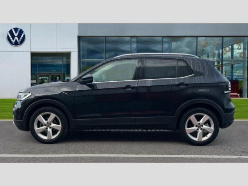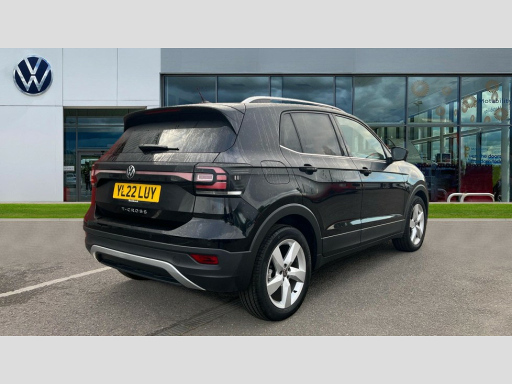 Volkswagen T-Cross 1.0 TSI 110 SEL 5dr 'Lights On' Reminder warning buzzer, 2D/3D map view, Adaptive cruise control including front assist, forward collision warning, autonomous emergency braking, speed limiter, Blind spot monitoring, Bluetooth telephone and audio connection for compatible devices, Car information display, Digital cockpit, Driver alert system, eCall emergency call system, Lane assist, Low washer fluid warning light, Multifunction computer with visual gear change recommendation for fuel consumption, Operating permit alteration, Power assisted speed sensitive steering, Speed limit display, Speedo, rev counter, electronic odometer, trip, service interval display, exterior temperature and fuel gauge, Stop/start system, Warning sound and light for doors and tailgate open, Warning sound and light for front seatbelts unfastened, We connect plus preparation, Wireless Car net app connect with Apple CarPlay, combined functionality of Apple CarPlay/Android Auto and MirrorLink, Battery regeneration during braking, Misfuel prevention device, 2x USB connection with USB charging sockets and in rear centre console, DAB Digital radio receiver, Diversity antenna for FM reception, Multi device interface (MDI) with USB connection, Music playback - MP3, WMA and AAC files, Premium USB cable for Apple or Android smartphone compatibility, Simultaneous pairing of 2 compatible mobile devices, SMS Functionality, Three route options - Fast, Short, Eco, Title and cover art display, Automatic hazard lights activation under emergency braking, Body colour door handles, Body coloured bumpers, Dusk sensor + automatic driving lights, Electrically foldable, adjustable and heated door mirrors with reverse activated kerb view adjustment on passenger's side, Front and rear electric windows, Front fog lights with static cornering function, Galvanised body, Heated rear window, LED third brake light, Lower door sills and door pillars in black, Radiator grille with chrome trim and chrome bezel front fog lamp, Rear fog light on one side, reversing light on both sides, Rear lights incorporating LED technology, Rear side wing doors, Rear window aerial, Rear windscreen washer and wiper with interval delay, Reflectors in all doors, Silver roof rails, Tailgate with integrated roof spoiler, Windscreen wipers/ intermittent wipe + 4 position delay, 12V Accessory socket in centre console, 2 Front and rear reading lights incorporating LED technology, 2 Zone electronic climate control with automatic air recirculation, 3 rear head restraints and 3 rear three point seat belts with ECE label, 3 seat bench in 2nd row, 60/40 split folding rear seat backrest, Branded points of interest, Drawer under drivers seat, Driver and front passenger sunvisor with vanity mirror, Driver's sunvisor with ticket holder, Dust and pollen filter, Front + rear carpet mats, Front centre armrest with storage compartment, Front footwell illumination, Front seat back storage pockets, Glovebox, Heating and fresh air system with 4 stage blower, Height/reach adjust steering wheel, Instrument lighting white adjustable panel illumination, Interior light with delay, Isofix child seat preparation for 2 rear child seats, Luggage compartment cover, Luggage compartment lighting, Moveable and foldable Rear bench seat, Storage compartment in drivers and front passengers door, Three spoke multi-function leather trimmed steering wheel and gearknob, Variable boot floor, Anti-lock Braking System (ABS) with Hydraulic Brake Assist (HBA), Automatic post collision braking system, Driver and front passenger safety-optimised head restraints, Drivers and Front Passengers airbags with front passengers airbag deactivation switch, ESC with EDL, ASR, EDTC and trailer stabilisation function, Front and rear curtain airbags, Front seat side impact airbags, Height-adjustable front three-point seat belts with tensioners, Hill start assist, Pre crash preventive occupant protection, Rear door child safety locks, Rigid safety cell with front and rear crumple zones, Single torn horn, Tyre pressure loss indicator, Volkswagen roadside assistance, Alarm with interior protection and deactivation via infotainment system, Child security locks in rear doors, Electronic engine immobiliser, Remote tailgate unlocking using key fob, Breakdown kit
