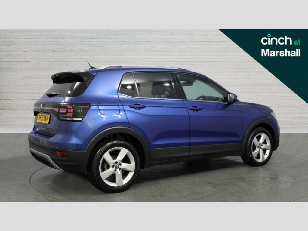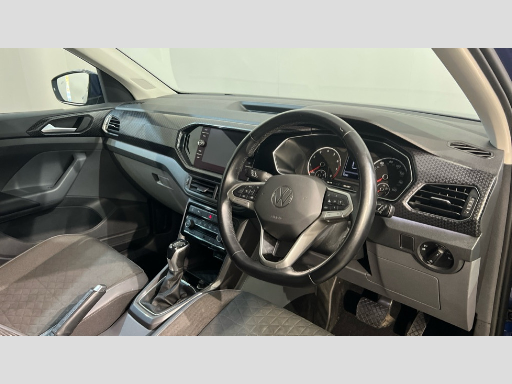 Volkswagen T-Cross 1.0 TSI 110 SEL 5dr DSG 'Lights On' Reminder warning buzzer, 2D/3D map view, Adaptive cruise control including front assist, forward collision warning, autonomous emergency braking, speed limiter, Blind spot monitoring, Bluetooth telephone and audio connection for compatible devices, Car information display, Driver alert system, eCall emergency call system, Lane assist, Low washer fluid warning light, Multifunction computer with visual gear change recommendation for fuel consumption, Operating permit alteration, Power assisted speed sensitive steering, Speed limit display, Speedo, rev counter, electronic odometer, trip, service interval display, exterior temperature and fuel gauge, Stop/start system, Warning sound and light for doors and tailgate open, Warning sound and light for front seatbelts unfastened, We connect plus preparation, Wireless Car net app connect with Apple CarPlay, combined functionality of Apple CarPlay/Android Auto and MirrorLink, Battery regeneration during braking, Misfuel prevention device, 2x USB connection with USB charging sockets and in rear centre console, DAB Digital radio receiver, Diversity antenna for FM reception, Multi device interface (MDI) with USB connection, Music playback - MP3, WMA and AAC files, Premium USB cable for Apple or Android smartphone compatibility, Simultaneous pairing of 2 compatible mobile devices, SMS Functionality, Three route options - Fast, Short, Eco, Title and cover art display, Automatic hazard lights activation under emergency braking, Body colour door handles, Body coloured bumpers, Dusk sensor + automatic driving lights, Electrically foldable, adjustable and heated door mirrors with reverse activated kerb view adjustment on passenger's side, Front and rear electric windows, Front fog lights with static cornering function, Galvanised body, Heated rear window, High level 3rd brake light, Lower door sills and door pillars in black, Radiator grille with chrome trim and chrome bezel front fog lamp, Rear fog light on one side, reversing light on both sides, Rear lights incorporating LED technology, Rear window aerial, Rear windscreen washer and wiper with interval delay, Reflectors in all doors, Silver roof rails, Tailgate with integrated roof spoiler, Windscreen wipers/ intermittent wipe + 4 position delay, 12V Accessory socket in centre console, 2 Front and rear reading lights incorporating LED technology, 2 Zone electronic climate control with automatic air recirculation, 3 rear head restraints and 3 rear three point seat belts with ECE label, 60/40 split folding rear seat backrest, Branded points of interest, Drawer under drivers seat, Driver and front passenger sunvisor with vanity mirror, Driver's sunvisor with ticket holder, Dust and pollen filter, Front + rear carpet mats, Front centre armrest with storage compartment, Front footwell illumination, Front seat back storage pockets, Glovebox, Heating and fresh air system with 4 stage blower, Height/reach adjust steering wheel, Instrument lighting white adjustable panel illumination, Interior light with delay, Isofix child seat preparation for 2 rear child seats, Luggage compartment cover, Luggage compartment lighting, Moveable and foldable Rear bench seat, Storage compartment in drivers and front passengers door, Three spoke multi-function leather trimmed steering wheel and gearknob, Variable boot floor, Anti-lock Braking System (ABS) with Hydraulic Brake Assist (HBA), Automatic post collision braking system, Driver and front passenger safety-optimised head restraints, Drivers and Front Passengers airbags with front passengers airbag deactivation switch, ESC with EDL, ASR, EDTC and trailer stabilisation function, Extended and proactive pedestrian protection, Front and rear curtain airbags, Front seat side impact airbags, Height adjustable 3 point automatic front seatbelts with pretensioners, Hill start assist, Pre crash preventive occupant protection, Rigid safety cell with front and rear crumple zones, Single torn horn, Tyre pressure loss indicator, Volkswagen roadside assistance, Alarm with interior protection and deactivation via infotainment system, Child security locks in rear doors, Electronic engine immobiliser, Remote tailgate unlocking using key fob, Breakdown kit