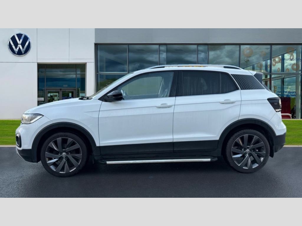 Volkswagen T-Cross 1.0 TSI 115 First Edition 5dr Active Info display 10.25" high resolution TFT dash display with customisable menu and information, Adaptive cruise control, Car-Net App-Connect with VW media control, Discover navigation system with 8.0" colour screen, radio/CD player, European map data, eCall emergency call system, Front and rear parking sensors, Front assist, radar sensor controlled distance monitor, city emergency braking + predictive pedestrian protection, Lane assist with blind spot plus lane keeping system, Multifunction computer with visual gear change recommendation for fuel consumption, Power assisted speed sensitive steering, Side scan blind spot detection, Speed limiter, Speedo, rev counter, electronic odometer, trip, service interval display, exterior temperature and fuel gauge, Stop/start system, Warning sound and light for doors and tailgate open, Warning sound and light for front seatbelts unfastened, Battery regeneration during braking, Misfuel prevention device, 2 USB sockets in rear, Beats audio system, Composition Media with 8"colour touch screen including DAB/CD drive, MP3/WMA, AUX-in/SD slot, 1 USB port and Bluetooth telephone connectivity, Multi device interface (MDI) with USB connection, Premium USB cable for Apple or Android smartphone compatibility, Simultaneous pairing of 2 compatible mobile devices, Title and cover art display, Automatic dimming interior rear view mirror with rain sensor, Automatic hazard lights activation under emergency braking, Body colour door handles, Body colour door mirrors with integrated indicators, Body coloured bumpers, C pillar decal, Dusk sensor, Front and rear electric windows, Front fog lights with static cornering function, Galvanised body, Heated rear window, High beam assist, High level 3rd brake light, LED headlights with auto range adjustment + LED daytime running lights, Manual coming/automatic leaving home lighting function, Power adjustable heated door mirrors, Radiator grille with chrome lamelel and bumpers in wagon paint, Rear tail lights LED except turn signals, Rear tinted glass 65% approx light absorbing from B pillar backwards, Rear windscreen washer and wiper with interval delay, Reflectors in all doors, Silver roof rails, Solid paint, Tailgate with integrated roof spoiler, Windscreen wipers/ intermittent wipe + 4 position delay, 12V Accessory socket in centre console, 2 Front and rear reading lights incorporating LED technology, 2 Zone electronic climate control with automatic air recirculation, 3 rear head restraints and 3 rear three point seat belts with ECE label, 60/40 split folding rear seat backrest, Drawer under drivers seat, Driver's seat height adjustment, Driver's sunvisor with ticket holder, Dust and pollen filter, Front + rear carpet mats, Front centre armrest with storage compartment and two rear air vents, Front comfort seats, Front seats with adj lumbar support, Front sport seats, Glovebox, Heating and fresh air system with 4 stage blower, Height/reach adjust steering wheel, Hexalink/pearl cloth upholstery, Illuminated vanity mirror, Instrument lighting white adjustable panel illumination, Interior light with delay, Isofix child seat preparation for 2 rear child seats, Luggage compartment cover, Luggage compartment lighting, Lumbar support, Manual front seats with height adjustment, Moveable and foldable Rear bench seat, Removable luggage cover, Storage compartment in driver and passenger doors, Sun visors with mirror on passenger side, Three spoke multi-function leather trimmed steering wheel and gearknob, Variable boot floor, Beats sound pack - T-cross, Black design pack - T-cross, Light and sight pack - T-cross, 3 point seat belt with electric pre tensioner, Anti-lock Braking System (ABS) with Hydraulic Brake Assist (HBA), Automatic post collision braking system, Driver and front passenger safety-optimised head restraints, Drivers and Front Passengers airbags with front passengers airbag deactivation switch, Electronic parking brake with auto hold, ESC with EDL, ASR, EDTC and trailer stabilisation function, Extended and proactive pedestrian protection, Front and rear curtain airbags, Front disc brakes and rear drum brakes, Front seat side impact airbags, Front ventilated disc brakes and rear disc brakes, Height adjustable 3 point automatic front seatbelts with pretensioners, Hill start assist, Pre crash preventive occupant protection, Rigid safety cell with front and rear crumple zones, Tyre pressure loss indicator, Volkswagen roadside assistance, Alarm with remote central locking and interior protection, Central locking without safe fuse with radio remote control and 2 radio folding keys, Child security locks in rear doors, Electronic engine immobiliser, Softell decorative inserts in dash and centre console, 18" Adamantium alloy wheels + anti theft wheel bolts, Tyre mobility system