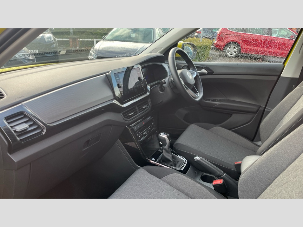 Volkswagen T-Cross 1.0 TSI 115 Match 5dr DSG 'Lights On' Reminder warning buzzer, Advanced driver attention and drowsiness monitor, Blind spot monitoring, Car information display, Dynamic road sign display, E-Sim card for online connectivity, eCall emergency call system, Front and rear parking sensors, Front assist, forward collision warning, autonomous emergency braking and speed limiter, Low washer fluid warning light, Multifunction computer with visual gear change recommendation for fuel consumption, Multifunction front facing camera for distance control, Operating permit alteration, Power assisted steering, Predictive adaptive cruise control, Preparation for navigation system with media and internet package, Preparation for We connect and We connect plus, Rear view camera, Semi-automated driving assistance, travel assist including lane keeping system Lane Assist and emergency assisst, Speedo, rev counter, electronic odometer, trip, service interval display, exterior temperature and fuel gauge, Warning sound and light for doors and tailgate open, Warning sound and light for front seatbelts unfastened, Wireless Car net app connect with Apple CarPlay, combined functionality of Apple CarPlay/Android Auto and MirrorLink, Wireless charging, Misfuel prevention device, Start-stop system with battery regeneration (recuperation - energy recovery during braking), 2 USB C ports in front, 2 USB charging sockets on the centre console in the rear charging capacity upto 45W, Diversity antenna for FM reception, Music playback - MP3, WMA and AAC files, Radio, Automatic dimming interior rear view mirror, Automatic hazard lights activation under emergency braking, Automatic headlight control with LED separate daytime running light and coming home and leaving home feature, Black roof rails, Body colour door handles, Body colour door mirrors, Body coloured bumpers, Dynamic headlight range control with self adjusting whilst driving, Electric folding door mirror, adjustable, heated with front passenger exterior mirror lowering function, Exterior mirrors convex on the left and aspherical on the right, Front and rear electric windows, Galvanised body, Heat insulating and laminated safety glass windshield, Heat insulating darkened glass in side and rear windows, High Beam Assist, automatic sensing for switching between dipped and main beam, LED Headlights, LED rear combination lights, LED third brake light, Lower door sills and door pillars in black, Rain sensor, Rear fog light on one side, reversing light on both sides, Rear side wing doors, Rear window aerial, Rear window wiper with intermittent control, Reflectors in all doors, Scuff plates, Tailgate with integrated roof spoiler, 12V Accessory socket in centre console, 3 rear head restraints, 3 seat bench in 2nd row, 60/40 split folding rear seat backrest, Ambient lighting and logo projection, Ceramique roof lining, Cloth upholstery, Door and side trim panel, Drawer under drivers seat, Driver and front passenger sunvisor with vanity mirror, Dust and pollen filter, Front and rear reading lights X 2, Front centre armrest with storage compartment, Front seat back storage pockets, Glove compartment door with light, Heating and fresh air system with 4 stage blower, Height/reach adjust steering wheel, Instrument lighting white adjustable panel illumination, Interior light with switch off delay and dimmer, Isofix anchors for child seats on outer rear seats and front passenger seats, Leather gearshift handle, Leather wrapped multifunction steering wheel, Luggage compartment floor, Luggage compartment lighting, Manual front seats with height adjustment, Padded dashboard, Removable luggage compartment cover, Single front passenger seat, Storage compartment in drivers and front passengers door, Unsplit sliding rear seat bench, 3 point outer rear seat belts with ECE label, 3 Point seatbelt for centre rear seat, Anti-lock Braking System (ABS) with Hydraulic Brake Assist (HBA), Automatic post collision braking system, Disc brakes in front, Driver and front passenger safety-optimised head restraints, Drivers and Front Passengers airbags with front passengers airbag deactivation switch, Drum brakes in rear, ESC with EDL and ASR (traction control), Extended and predictive pedestrian/cyclist protection, Front and rear passenger curtain airbag system including front side airbags, Height adjustable front 3 point seatbelts + pretensioners, Hill start assist, Pre crash preventive occupant protection, Proactive passenger protection system in combination with front assist, Rear door child safety locks, Rigid safety cell with front and rear crumple zones, Single tone horn, Tyre pressure loss indicator, Volkswagen roadside assistance, Alarm with interior protection, Anti theft alarm system, Electronic engine immobiliser, Remote keyless entry using key fob including Start/Stop button on centre console with SAFELOCK, Remote tailgate unlocking using key fob, Low rolling resistance tyres
