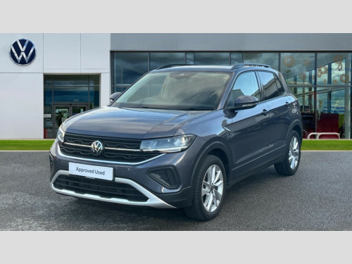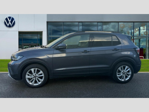 Volkswagen T-Cross 1.0 TSI 115 Match 5dr DSG This 2024 Volkswagen T-Cross TSI Match is a Volkswagen manufacturer approved vehicle with only one owner from new. It features a 1.0 litre Euro 6 petrol engine and comes in the desirable Match trim. Notable features include LED headlights with automatic activation and separate daytime running lights, a manually controlled air conditioning system, and adaptive cruise control for a more relaxed driving experience. For your convenience, it also boasts a mobile phone interface with inductive charging, meaning you can wirelessly charge your phone on the go.