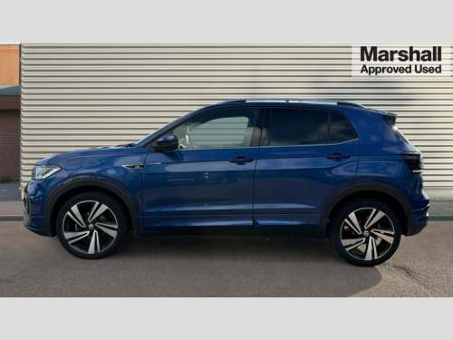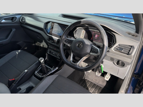 Volkswagen T-Cross 1.0 TSI 115 R-Line 5dr 'Lights On' Reminder warning buzzer, Adaptive cruise control including front assist, forward collision warning, autonomous emergency braking, speed limiter, Digital Cockpit Pro - Active info display, Discover media navigation system with 8" display including streaming and internet, Driver alert system, eCall emergency call system, Lane assist, Multifunction computer with visual gear change recommendation for fuel consumption, Power assisted speed sensitive steering, Speedo, rev counter, electronic odometer, trip, service interval display, exterior temperature and fuel gauge, Stop/start system, Warning sound and light for doors and tailgate open, Warning sound and light for front seatbelts unfastened, We Connect Go Dongle, Wireless Car net app connect with Apple CarPlay, combined functionality of Apple CarPlay/Android Auto and MirrorLink, Battery regeneration during braking, Misfuel prevention device, 2x USB connection with USB charging sockets and in rear centre console, Diversity antenna for FM reception, Premium USB cable for Apple or Android smartphone compatibility, Automatic dimming interior rear view mirror, Automatic hazard lights activation under emergency braking, Body colour door handles, Body colour rear roof spoiler, Body coloured bumpers, Dusk sensor + automatic driving lights, Front and rear electric windows, Front fog lights with static cornering function, Galvanised body, Heated rear window, High level 3rd brake light, LED dipped and main beam headlights with automatic range adjustment including separate unique signature LED daytime running lights, Lower door sills and door pillars in black, Manual coming/automatic leaving home lighting function, Radiator grille with high gloss surface and chrome strip, Rain sensor, Rear lights incorporating LED technology, Rear tinted glass 65% approx light absorbing from B pillar backwards, Rear window aerial, Rear windscreen washer and wiper with interval delay, Reflectors in all doors, Silver roof rails, Stainless steel door sill protection, Tailgate with integrated roof spoiler, Unique R Line badging, Windscreen wipers/ intermittent wipe + 4 position delay, 12V Accessory socket in centre console, 2 Front and rear reading lights incorporating LED technology, 2 Zone electronic climate control with automatic air recirculation, 3 rear head restraints and 3 rear three point seat belts with ECE label, 60/40 split folding rear seat backrest, Aluminium pedals, Black headlining, Carbon flag cloth upholstery, Drawer under drivers seat, Driver and front passenger sunvisor with vanity mirror, Driver's sunvisor with ticket holder, Dust and pollen filter, Front + rear carpet mats, Front centre armrest with storage compartment, Front seat back storage pockets, Front seat R Line logo with rear seat backrest, Front sports seat with height and lumbar adjustment, Glovebox, Heating and fresh air system with 4 stage blower, Height/reach adjust steering wheel, Instrument lighting white adjustable panel illumination, Interior light with delay, Isofix child seat preparation for 2 rear child seats, Leather trimmed three spoke multifunction steering wheel with contrast stitching and aluminium inserts with R Line logo, Luggage compartment cover, Luggage compartment lighting, Moveable and foldable Rear bench seat, Storage compartment in drivers and front passengers door, Variable boot floor, Composition Media infotainment system pack - T cross, R Line styling pack - T-cross, Anti-lock Braking System (ABS) with Hydraulic Brake Assist (HBA), Automatic post collision braking system, Driver and front passenger safety-optimised head restraints, Drivers and Front Passengers airbags with front passengers airbag deactivation switch, ESC with EDL, ASR, EDTC and trailer stabilisation function, Extended and proactive pedestrian protection, Front and rear curtain airbags, Front seat side impact airbags, Height adjustable 3 point automatic front seatbelts with pretensioners, Hill start assist, Pre crash preventive occupant protection, Rigid safety cell with front and rear crumple zones, Tyre pressure loss indicator, Volkswagen roadside assistance, Alarm with interior protection and deactivation via infotainment system, Child security locks in rear doors, Remote tailgate unlocking using key fob, Race decorative inserts in dash and doors, 18" Nevada black alloy wheels