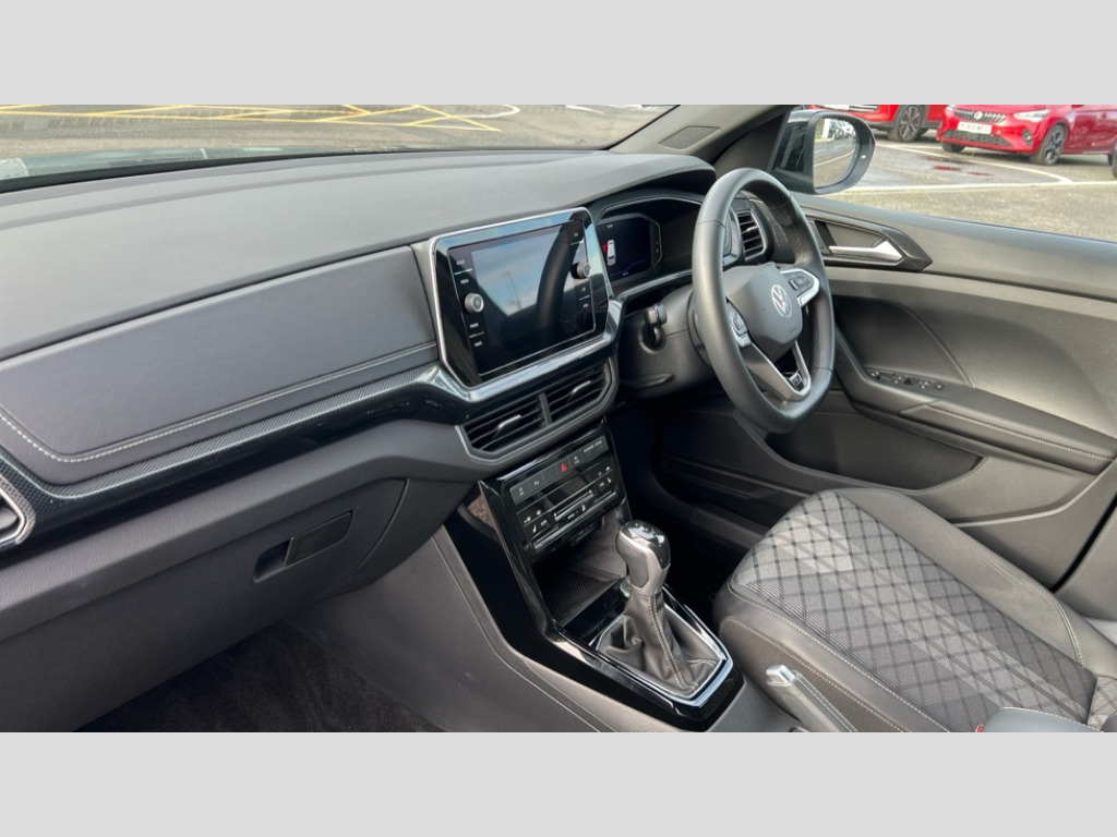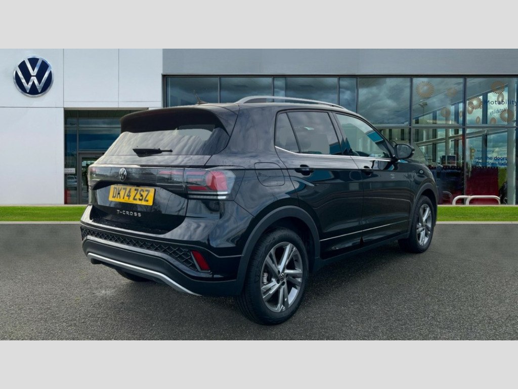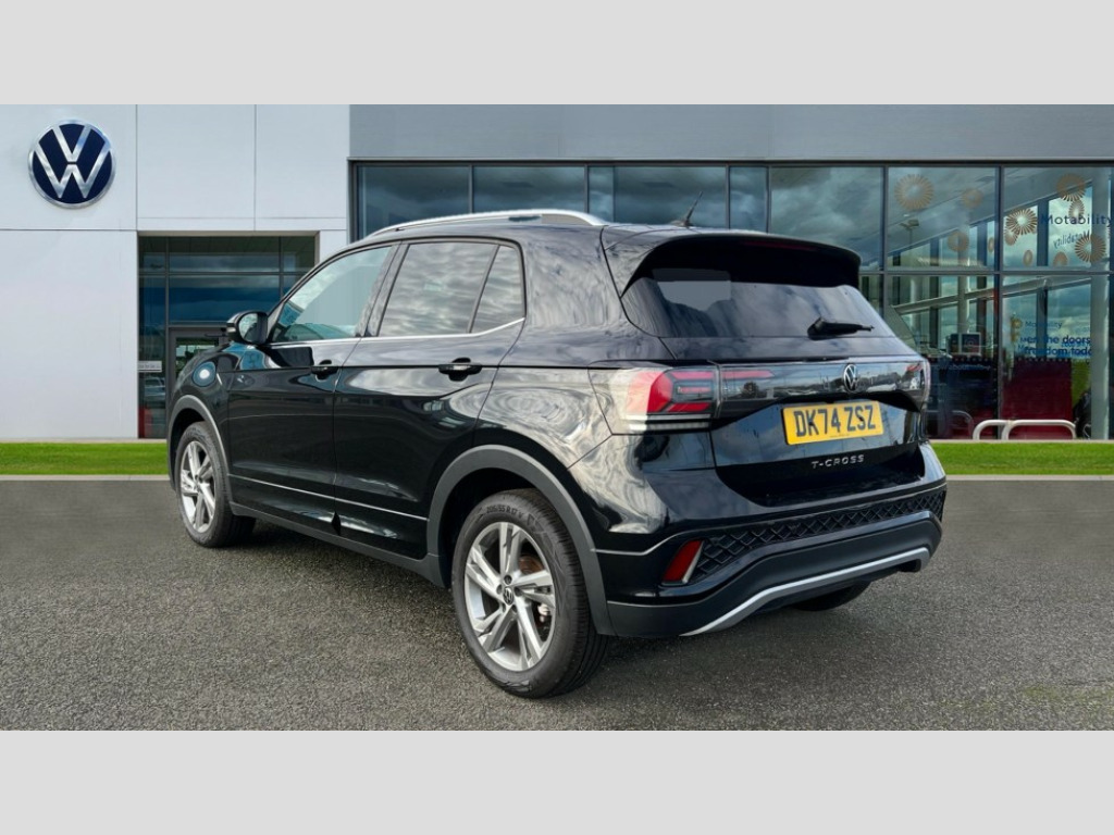 Volkswagen T-Cross 1.0 TSI 115 R-Line 5dr DSG 'Lights On' Reminder warning buzzer, 10.25" Digital cockpit pro, Advanced driver attention and drowsiness monitor, Blind spot monitoring, Car information display, Driver profile selection including ECO function, Dynamic road sign display, E-Sim card for online connectivity, eCall emergency call system, Front and rear parking sensors, Front assist, forward collision warning, autonomous emergency braking and speed limiter, Low washer fluid warning light, Multifunction computer with visual gear change recommendation for fuel consumption, Multifunction front facing camera for distance control, Operating permit alteration, Power assisted steering, Predictive adaptive cruise control, Preparation for navigation system with media and internet package, Preparation for We connect and We connect plus, Semi-automated driving assistance, travel assist including lane keeping system Lane Assist and emergency assisst, Speedo, rev counter, electronic odometer, trip, service interval display, exterior temperature and fuel gauge, Warning sound and light for doors and tailgate open, Warning sound and light for front seatbelts unfastened, Wireless Car net app connect with Apple CarPlay, combined functionality of Apple CarPlay/Android Auto and MirrorLink, Wireless charging, Misfuel prevention device, Start-stop system with battery regeneration (recuperation - energy recovery during braking), 2 USB C ports in front, 2 USB charging sockets on the centre console in the rear charging capacity upto 45W, Diversity antenna for FM reception, Music playback - MP3, WMA and AAC files, Radio, Automatic dimming interior rear view mirror, Automatic hazard lights activation under emergency braking, Automatic headlight control with LED separate daytime running light and coming home and leaving home feature, Black roof rails, Body colour door handles, Body colour door mirrors, Body coloured bumpers, Dynamic headlight range control with self adjusting whilst driving, Electric folding door mirror, adjustable, heated with front passenger exterior mirror lowering function, Exterior mirrors convex on the left and aspherical on the right, Front and rear electric windows, Front door sill protectors with R-Line logo, Galvanised body, Heat insulating and laminated safety glass windshield, Heat insulating darkened glass in side and rear windows, High Beam Assist, automatic sensing for switching between dipped and main beam, LED rear combination lights, LED third brake light, Lower door sills and door pillars in black, Privacy glass for rear side windows and rear window, Rain sensor, Rear fog light on one side, reversing light on both sides, Rear side wing doors, Rear window aerial, Rear window wiper with intermittent control, Reflectors in all doors, Scuff plates, Tailgate with integrated roof spoiler, 12V Accessory socket in centre console, 2 Front and rear reading lights incorporating LED technology, 3 rear head restraints, 3 seat bench in 2nd row, 60/40 split folding rear seat backrest, Air care climatronic 2 zone air conditioning system, Ambient lighting, Brushed stainless steel pedals, Chrome plated radiator grille inserts, air vent surrounds and light switch surrounds, Cloth upholstery, Comfort front sport seats, Door and side trim panel, Drawer under drivers seat, Driver and front passenger sunvisor with vanity mirror, Dust and pollen filter, Front + rear carpet mats, Front centre armrest with storage compartment, Front footwell illumination, Front seat back storage pockets, Glove compartment door with light, Heated front seats, Heating and fresh air system with 4 stage blower, Height/reach adjust steering wheel, Instrument lighting white adjustable panel illumination, Interior light with switch off delay and dimmer, Isofix anchors for child seats on outer rear seats and front passenger seats, Leather gearshift handle, Leather wrapped multifunction steering wheel, Luggage compartment floor, Luggage compartment lighting, Manual front seats with height adjustment, Padded dashboard, Removable luggage compartment cover, Single front passenger seat, Storage compartment in drivers and front passengers door, Titanium black roof lining, Unsplit sliding rear seat bench, 3 point outer rear seat belts with ECE label, 3 Point seatbelt for centre rear seat, Anti-lock Braking System (ABS) with Hydraulic Brake Assist (HBA), Automatic post collision braking system, Disc brakes in front, Disc brakes in rear, Driver and front passenger safety-optimised head restraints, Drivers and Front Passengers airbags with front passengers airbag deactivation switch, ESC with EDL and ASR (traction control), Extended and predictive pedestrian/cyclist protection, Front and rear passenger curtain airbag system including front side airbags, Height adjustable front 3 point seatbelts + pretensioners, Hill start assist, Pre crash preventive occupant protection, Proactive passenger protection system in combination with front assist, Rear door child safety locks, Rigid safety cell with front and rear crumple zones, Single tone horn, Tyre pressure loss indicator, Volkswagen roadside assistance, Alarm with interior protection, Anti theft alarm system, Electronic engine immobiliser, Remote tailgate unlocking using key fob, Titanium Black Decorative inserts - R Line, Low rolling resistance tyres