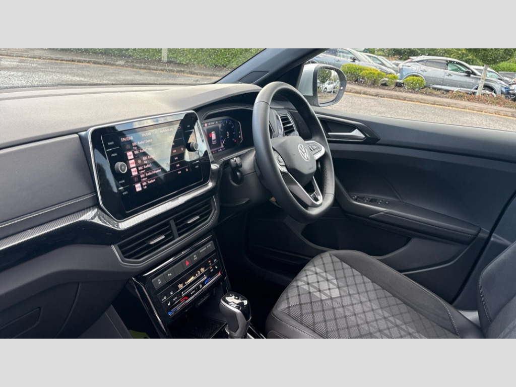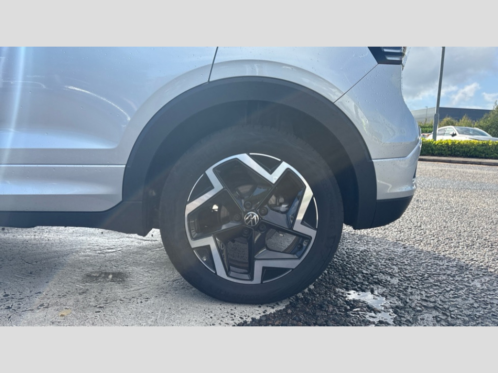 Volkswagen T-Cross 1.0 TSI 115 R-Line 5dr DSG 'Lights On' Reminder warning buzzer, 10.25" Digital cockpit pro, Advanced driver attention and drowsiness monitor, Blind spot monitoring, Car information display, Driver profile selection including ECO function, Dynamic road sign display, E-Sim card for online connectivity, eCall emergency call system, Front and rear parking sensors, Front assist, forward collision warning, autonomous emergency braking and speed limiter, Low washer fluid warning light, Multifunction computer with visual gear change recommendation for fuel consumption, Multifunction front facing camera for distance control, Operating permit alteration, Power assisted steering, Predictive adaptive cruise control, Preparation for navigation system with media and internet package, Preparation for We connect and We connect plus, Semi-automated driving assistance, travel assist including lane keeping system Lane Assist and emergency assisst, Speedo, rev counter, electronic odometer, trip, service interval display, exterior temperature and fuel gauge, Warning sound and light for doors and tailgate open, Warning sound and light for front seatbelts unfastened, Wireless Car net app connect with Apple CarPlay, combined functionality of Apple CarPlay/Android Auto and MirrorLink, Wireless charging, Misfuel prevention device, Start-stop system with battery regeneration (recuperation - energy recovery during braking), 2 USB C ports in front, 2 USB charging sockets on the centre console in the rear charging capacity upto 45W, Diversity antenna for FM reception, Music playback - MP3, WMA and AAC files, Radio, Automatic dimming interior rear view mirror, Automatic hazard lights activation under emergency braking, Automatic headlight control with LED separate daytime running light and coming home and leaving home feature, Body colour door handles, Body colour door mirrors, Body coloured bumpers, Dynamic headlight range control with self adjusting whilst driving, Electric folding door mirror, adjustable, heated with front passenger exterior mirror lowering function, Exterior mirrors convex on the left and aspherical on the right, Front and rear electric windows, Front door sill protectors with R-Line logo, Galvanised body, Heat insulating and laminated safety glass windshield, Heat insulating darkened glass in side and rear windows, High Beam Assist, automatic sensing for switching between dipped and main beam, LED rear combination lights, LED third brake light, Lower door sills and door pillars in black, Privacy glass for rear side windows and rear window, Rain sensor, Rear fog light on one side, reversing light on both sides, Rear side wing doors, Rear window aerial, Rear window wiper with intermittent control, Reflectors in all doors, Scuff plates, Tailgate with integrated roof spoiler, 12V Accessory socket in centre console, 2 Front and rear reading lights incorporating LED technology, 3 rear head restraints, 3 seat bench in 2nd row, 60/40 split folding rear seat backrest, Air care climatronic 2 zone air conditioning system, Ambient lighting, Brushed stainless steel pedals, Chrome plated radiator grille inserts, air vent surrounds and light switch surrounds, Cloth upholstery, Comfort front sport seats, Door and side trim panel, Drawer under drivers seat, Driver and front passenger sunvisor with vanity mirror, Dust and pollen filter, Front + rear carpet mats, Front centre armrest with storage compartment, Front footwell illumination, Front seat back storage pockets, Glove compartment door with light, Heated front seats, Heating and fresh air system with 4 stage blower, Height/reach adjust steering wheel, Instrument lighting white adjustable panel illumination, Interior light with switch off delay and dimmer, Isofix anchors for child seats on outer rear seats and front passenger seats, Leather gearshift handle, Leather wrapped multifunction steering wheel, Luggage compartment floor, Luggage compartment lighting, Manual front seats with height adjustment, Padded dashboard, Removable luggage compartment cover, Single front passenger seat, Storage compartment in drivers and front passengers door, Titanium black roof lining, Unsplit sliding rear seat bench, 3 point outer rear seat belts with ECE label, 3 Point seatbelt for centre rear seat, Anti-lock Braking System (ABS) with Hydraulic Brake Assist (HBA), Automatic post collision braking system, Disc brakes in front, Disc brakes in rear, Driver and front passenger safety-optimised head restraints, Drivers and Front Passengers airbags with front passengers airbag deactivation switch, ESC with EDL and ASR (traction control), Extended and predictive pedestrian/cyclist protection, Front and rear passenger curtain airbag system including front side airbags, Height adjustable front 3 point seatbelts + pretensioners, Hill start assist, Pre crash preventive occupant protection, Proactive passenger protection system in combination with front assist, Rear door child safety locks, Rigid safety cell with front and rear crumple zones, Single tone horn, Tyre pressure loss indicator, Volkswagen roadside assistance, Alarm with interior protection, Anti theft alarm system, Electronic engine immobiliser, Remote tailgate unlocking using key fob, Titanium Black Decorative inserts - R Line, Low rolling resistance tyres