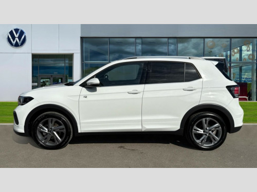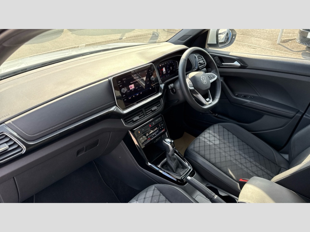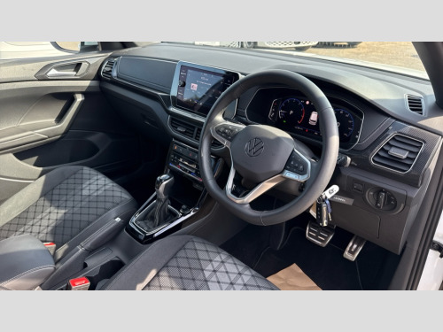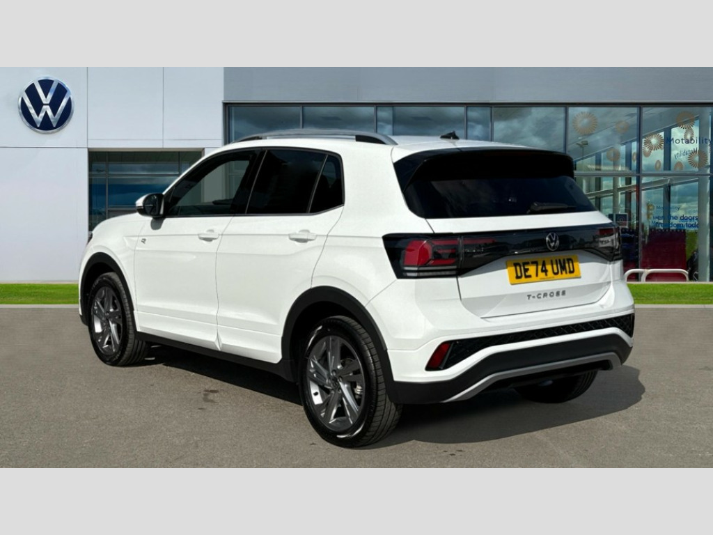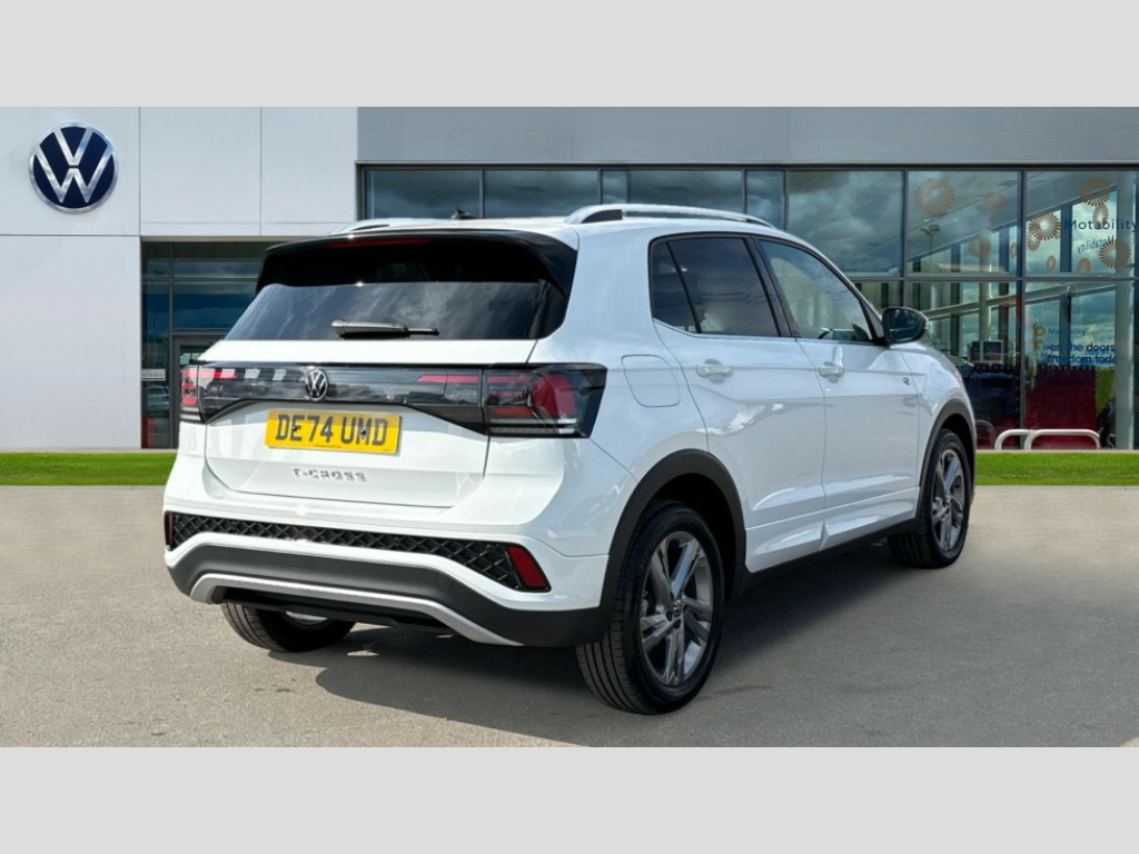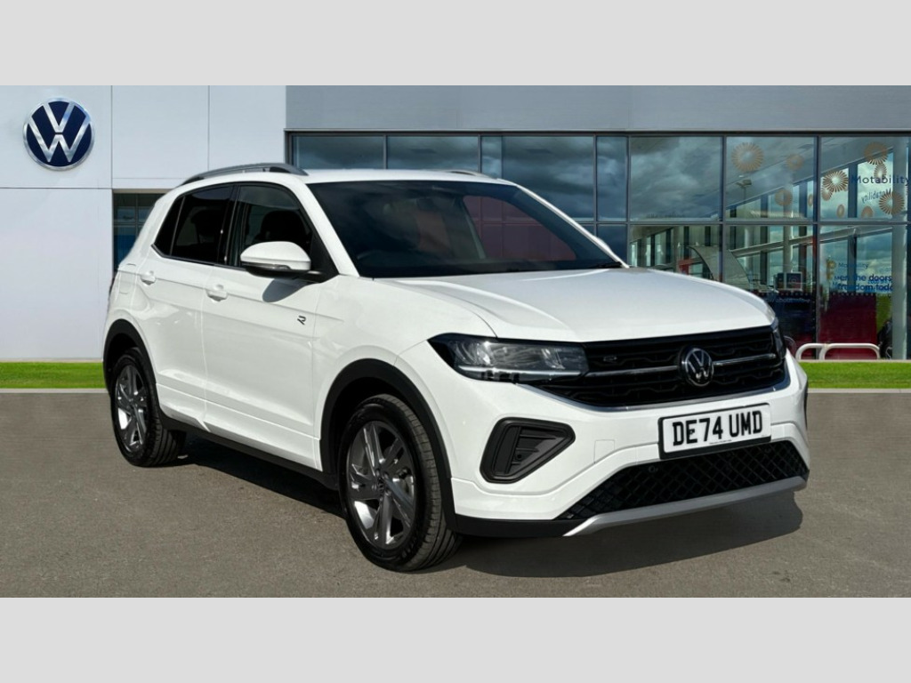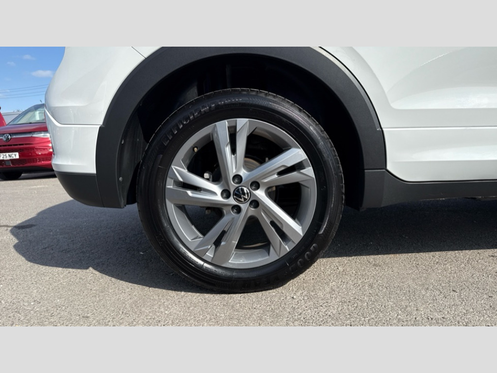 Volkswagen T-Cross 1.0 TSI 115 R-Line 5dr DSG 'Lights On' Reminder warning buzzer, 10.25" Digital cockpit pro, Advanced driver attention and drowsiness monitor, Blind spot monitoring, Car information display, Driver profile selection including ECO function, Dynamic road sign display, E-Sim card for online connectivity, eCall emergency call system, Front and rear parking sensors, Front assist, forward collision warning, autonomous emergency braking and speed limiter, Low washer fluid warning light, Multifunction computer with visual gear change recommendation for fuel consumption, Multifunction front facing camera for distance control, Operating permit alteration, Power assisted steering, Predictive adaptive cruise control, Preparation for navigation system with media and internet package, Preparation for We connect and We connect plus, Semi-automated driving assistance, travel assist including lane keeping system Lane Assist and emergency assisst, Speedo, rev counter, electronic odometer, trip, service interval display, exterior temperature and fuel gauge, Warning sound and light for doors and tailgate open, Warning sound and light for front seatbelts unfastened, Wireless Car net app connect with Apple CarPlay, combined functionality of Apple CarPlay/Android Auto and MirrorLink, Wireless charging, Misfuel prevention device, Start-stop system with battery regeneration (recuperation - energy recovery during braking), 2 USB C ports in front, 2 USB charging sockets on the centre console in the rear charging capacity upto 45W, Diversity antenna for FM reception, Music playback - MP3, WMA and AAC files, Radio, Automatic dimming interior rear view mirror, Automatic hazard lights activation under emergency braking, Automatic headlight control with LED separate daytime running light and coming home and leaving home feature, Black roof rails, Body colour door handles, Body colour door mirrors, Body coloured bumpers, Dynamic headlight range control with self adjusting whilst driving, Electric folding door mirror, adjustable, heated with front passenger exterior mirror lowering function, Exterior mirrors convex on the left and aspherical on the right, Front and rear electric windows, Front door sill protectors with R-Line logo, Galvanised body, Heat insulating and laminated safety glass windshield, Heat insulating darkened glass in side and rear windows, High Beam Assist, automatic sensing for switching between dipped and main beam, LED rear combination lights, LED third brake light, Lower door sills and door pillars in black, Privacy glass for rear side windows and rear window, Rain sensor, Rear fog light on one side, reversing light on both sides, Rear side wing doors, Rear window aerial, Rear window wiper with intermittent control, Reflectors in all doors, Scuff plates, Tailgate with integrated roof spoiler, 12V Accessory socket in centre console, 2 Front and rear reading lights incorporating LED technology, 3 rear head restraints, 3 seat bench in 2nd row, 60/40 split folding rear seat backrest, Air care climatronic 2 zone air conditioning system, Ambient lighting, Brushed stainless steel pedals, Chrome plated radiator grille inserts, air vent surrounds and light switch surrounds, Cloth upholstery, Comfort front sport seats, Door and side trim panel, Drawer under drivers seat, Driver and front passenger sunvisor with vanity mirror, Dust and pollen filter, Front + rear carpet mats, Front centre armrest with storage compartment, Front footwell illumination, Front seat back storage pockets, Glove compartment door with light, Heated front seats, Heating and fresh air system with 4 stage blower, Height/reach adjust steering wheel, Instrument lighting white adjustable panel illumination, Interior light with switch off delay and dimmer, Isofix anchors for child seats on outer rear seats and front passenger seats, Leather gearshift handle, Leather wrapped multifunction steering wheel, Luggage compartment floor, Luggage compartment lighting, Manual front seats with height adjustment, Padded dashboard, Removable luggage compartment cover, Single front passenger seat, Storage compartment in drivers and front passengers door, Titanium black roof lining, Unsplit sliding rear seat bench, 3 point outer rear seat belts with ECE label, 3 Point seatbelt for centre rear seat, Anti-lock Braking System (ABS) with Hydraulic Brake Assist (HBA), Automatic post collision braking system, Disc brakes in front, Disc brakes in rear, Driver and front passenger safety-optimised head restraints, Drivers and Front Passengers airbags with front passengers airbag deactivation switch, ESC with EDL and ASR (traction control), Extended and predictive pedestrian/cyclist protection, Front and rear passenger curtain airbag system including front side airbags, Height adjustable front 3 point seatbelts + pretensioners, Hill start assist, Pre crash preventive occupant protection, Proactive passenger protection system in combination with front assist, Rear door child safety locks, Rigid safety cell with front and rear crumple zones, Single tone horn, Tyre pressure loss indicator, Volkswagen roadside assistance, Alarm with interior protection, Anti theft alarm system, Electronic engine immobiliser, Remote tailgate unlocking using key fob, Titanium Black Decorative inserts - R Line, 17" Valencia light alloy wheels in electro grey + anti theft wheel bolts, Low rolling resistance tyres