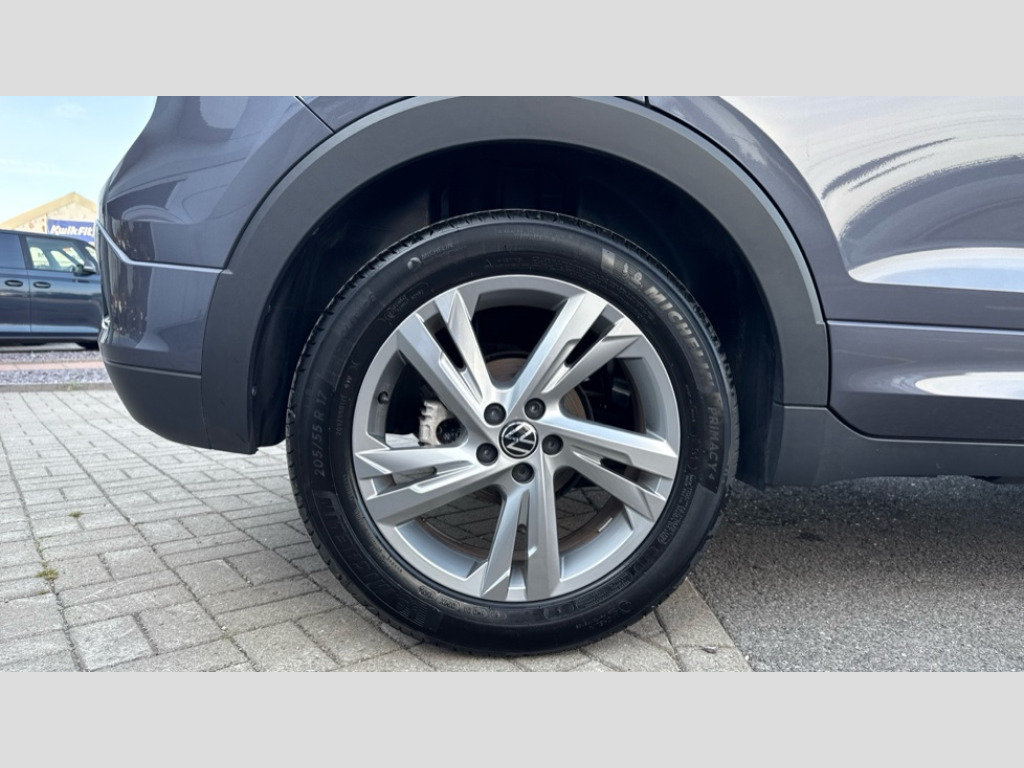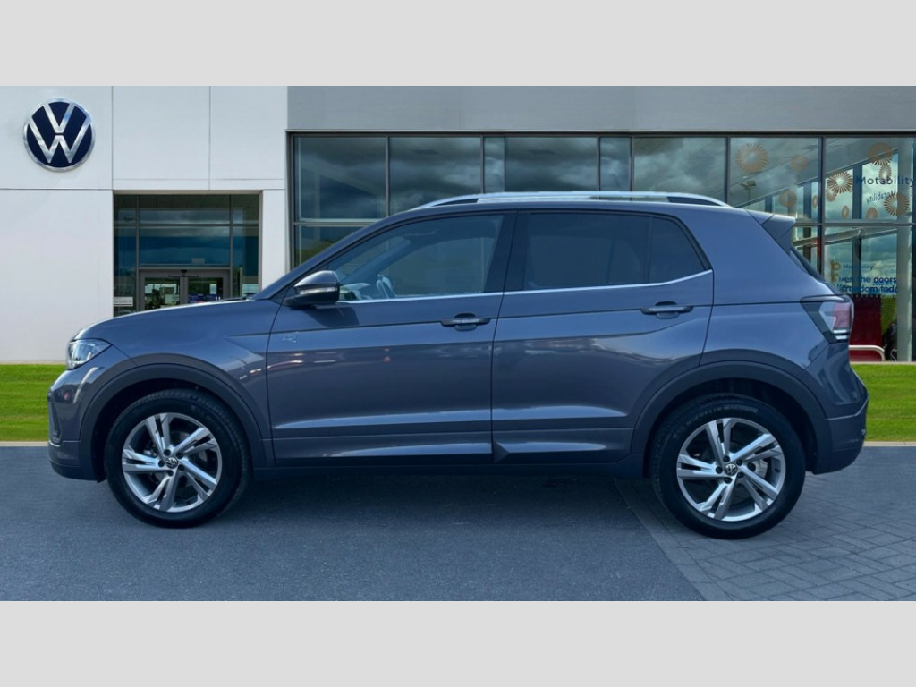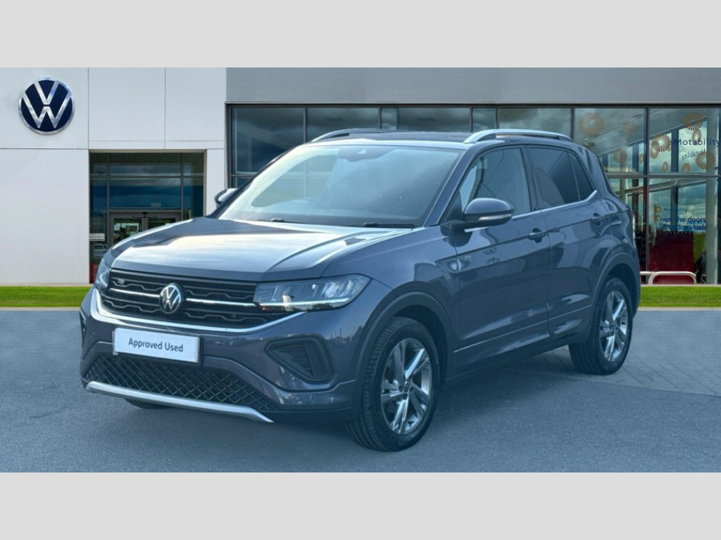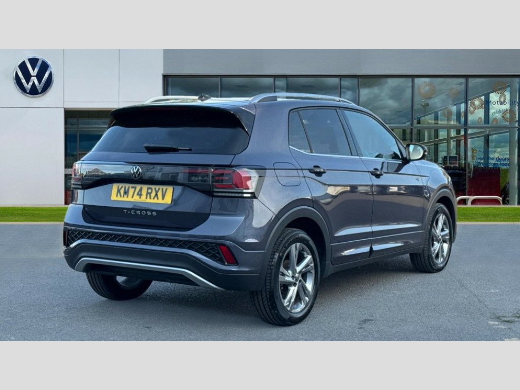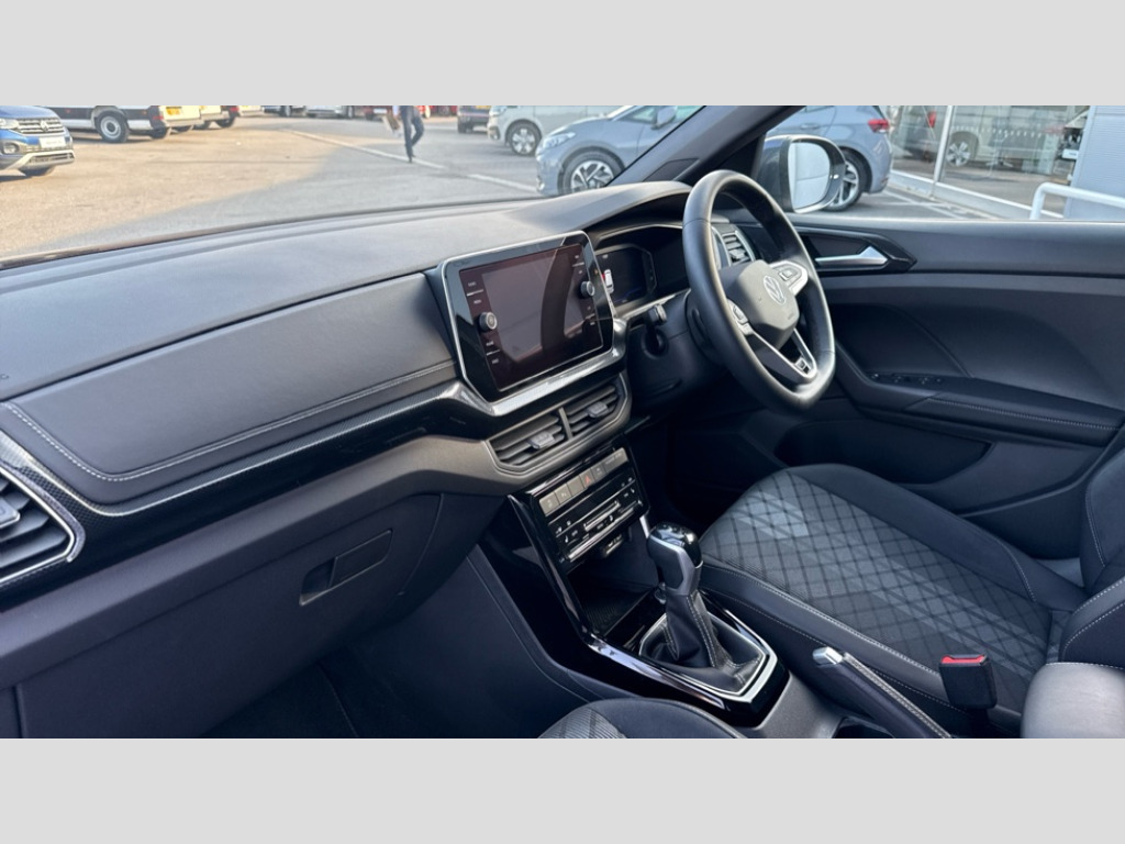 Volkswagen T-Cross 1.0 TSI 115 R-Line 5dr DSG 'Lights On' Reminder warning buzzer, 10.25" Digital cockpit pro, Advanced driver attention and drowsiness monitor, Blind spot monitoring, Car information display, Driver profile selection including ECO function, Dynamic road sign display, E-Sim card for online connectivity, eCall emergency call system, Front and rear parking sensors, Front assist, forward collision warning, autonomous emergency braking and speed limiter, Low washer fluid warning light, Multifunction computer with visual gear change recommendation for fuel consumption, Multifunction front facing camera for distance control, Operating permit alteration, Power assisted steering, Predictive adaptive cruise control, Preparation for navigation system with media and internet package, Preparation for We connect and We connect plus, Semi-automated driving assistance, travel assist including lane keeping system Lane Assist and emergency assisst, Speedo, rev counter, electronic odometer, trip, service interval display, exterior temperature and fuel gauge, Warning sound and light for doors and tailgate open, Warning sound and light for front seatbelts unfastened, Wireless Car net app connect with Apple CarPlay, combined functionality of Apple CarPlay/Android Auto and MirrorLink, Wireless charging, Misfuel prevention device, Start-stop system with battery regeneration (recuperation - energy recovery during braking), 2 USB C ports in front, 2 USB charging sockets on the centre console in the rear charging capacity upto 45W, Diversity antenna for FM reception, Music playback - MP3, WMA and AAC files, Radio, Automatic dimming interior rear view mirror, Automatic hazard lights activation under emergency braking, Automatic headlight control with LED separate daytime running light and coming home and leaving home feature, Black roof rails, Body colour door handles, Body colour door mirrors, Body coloured bumpers, Dynamic headlight range control with self adjusting whilst driving, Electric folding door mirror, adjustable, heated with front passenger exterior mirror lowering function, Exterior mirrors convex on the left and aspherical on the right, Front and rear electric windows, Front door sill protectors with R-Line logo, Galvanised body, Heat insulating and laminated safety glass windshield, Heat insulating darkened glass in side and rear windows, High Beam Assist, automatic sensing for switching between dipped and main beam, LED rear combination lights, LED third brake light, Lower door sills and door pillars in black, Privacy glass for rear side windows and rear window, Rain sensor, Rear fog light on one side, reversing light on both sides, Rear side wing doors, Rear window aerial, Rear window wiper with intermittent control, Reflectors in all doors, Scuff plates, Tailgate with integrated roof spoiler, 12V Accessory socket in centre console, 2 Front and rear reading lights incorporating LED technology, 3 rear head restraints, 3 seat bench in 2nd row, 60/40 split folding rear seat backrest, Air care climatronic 2 zone air conditioning system, Ambient lighting, Brushed stainless steel pedals, Chrome plated radiator grille inserts, air vent surrounds and light switch surrounds, Cloth upholstery, Comfort front sport seats, Door and side trim panel, Drawer under drivers seat, Driver and front passenger sunvisor with vanity mirror, Dust and pollen filter, Front + rear carpet mats, Front centre armrest with storage compartment, Front footwell illumination, Front seat back storage pockets, Glove compartment door with light, Heated front seats, Heating and fresh air system with 4 stage blower, Height/reach adjust steering wheel, Instrument lighting white adjustable panel illumination, Interior light with switch off delay and dimmer, Isofix anchors for child seats on outer rear seats and front passenger seats, Leather gearshift handle, Leather wrapped multifunction steering wheel, Luggage compartment floor, Luggage compartment lighting, Manual front seats with height adjustment, Padded dashboard, Removable luggage compartment cover, Single front passenger seat, Storage compartment in drivers and front passengers door, Titanium black roof lining, Unsplit sliding rear seat bench, 3 point outer rear seat belts with ECE label, 3 Point seatbelt for centre rear seat, Anti-lock Braking System (ABS) with Hydraulic Brake Assist (HBA), Automatic post collision braking system, Disc brakes in front, Disc brakes in rear, Driver and front passenger safety-optimised head restraints, Drivers and Front Passengers airbags with front passengers airbag deactivation switch, ESC with EDL and ASR (traction control), Extended and predictive pedestrian/cyclist protection, Front and rear passenger curtain airbag system including front side airbags, Height adjustable front 3 point seatbelts + pretensioners, Hill start assist, Pre crash preventive occupant protection, Proactive passenger protection system in combination with front assist, Rear door child safety locks, Rigid safety cell with front and rear crumple zones, Single tone horn, Tyre pressure loss indicator, Volkswagen roadside assistance, Alarm with interior protection, Anti theft alarm system, Electronic engine immobiliser, Remote tailgate unlocking using key fob, Titanium Black Decorative inserts - R Line, 17" Valencia light alloy wheels in electro grey + anti theft wheel bolts, Low rolling resistance tyres