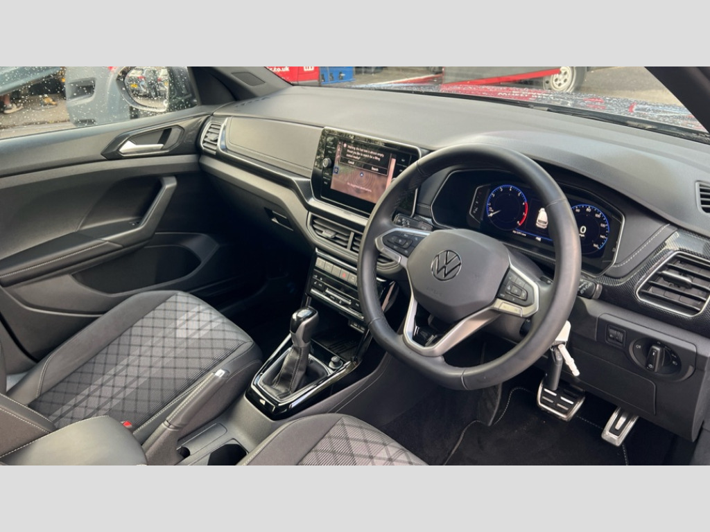 Volkswagen T-Cross 1.0 TSI 115 R-Line 5dr DSG 'Lights On' Reminder warning buzzer, 10.25" Digital cockpit pro, Advanced driver attention and drowsiness monitor, Blind spot monitoring, Car information display, Driver profile selection including ECO function, Dynamic road sign display, E-Sim card for online connectivity, eCall emergency call system, Front and rear parking sensors, Front assist, forward collision warning, autonomous emergency braking and speed limiter, Low washer fluid warning light, Multifunction computer with visual gear change recommendation for fuel consumption, Multifunction front facing camera for distance control, Operating permit alteration, Power assisted steering, Predictive adaptive cruise control, Preparation for navigation system with media and internet package, Preparation for We connect and We connect plus, Semi-automated driving assistance, travel assist including lane keeping system Lane Assist and emergency assisst, Speedo, rev counter, electronic odometer, trip, service interval display, exterior temperature and fuel gauge, Warning sound and light for doors and tailgate open, Warning sound and light for front seatbelts unfastened, Wireless Car net app connect with Apple CarPlay, combined functionality of Apple CarPlay/Android Auto and MirrorLink, Wireless charging, Misfuel prevention device, Start-stop system with battery regeneration (recuperation - energy recovery during braking), 2 USB C ports in front, 2 USB charging sockets on the centre console in the rear charging capacity upto 45W, Diversity antenna for FM reception, Music playback - MP3, WMA and AAC files, Radio, Automatic dimming interior rear view mirror, Automatic hazard lights activation under emergency braking, Automatic headlight control with LED separate daytime running light and coming home and leaving home feature, Body colour door handles, Body colour door mirrors, Body coloured bumpers, Dynamic headlight range control with self adjusting whilst driving, Electric folding door mirror, adjustable, heated with front passenger exterior mirror lowering function, Exterior mirrors convex on the left and aspherical on the right, Front and rear electric windows, Front door sill protectors with R-Line logo, Galvanised body, Heat insulating and laminated safety glass windshield, Heat insulating darkened glass in side and rear windows, High Beam Assist, automatic sensing for switching between dipped and main beam, LED rear combination lights, LED third brake light, Lower door sills and door pillars in black, Privacy glass for rear side windows and rear window, Rain sensor, Rear fog light on one side, reversing light on both sides, Rear side wing doors, Rear window aerial, Rear window wiper with intermittent control, Reflectors in all doors, Scuff plates, Tailgate with integrated roof spoiler, 12V Accessory socket in centre console, 2 Front and rear reading lights incorporating LED technology, 3 rear head restraints, 3 seat bench in 2nd row, 60/40 split folding rear seat backrest, Air care climatronic 2 zone air conditioning system, Ambient lighting, Brushed stainless steel pedals, Chrome plated radiator grille inserts, air vent surrounds and light switch surrounds, Cloth upholstery, Comfort front sport seats, Door and side trim panel, Drawer under drivers seat, Driver and front passenger sunvisor with vanity mirror, Dust and pollen filter, Front + rear carpet mats, Front centre armrest with storage compartment, Front footwell illumination, Front seat back storage pockets, Glove compartment door with light, Heated front seats, Heating and fresh air system with 4 stage blower, Height/reach adjust steering wheel, Instrument lighting white adjustable panel illumination, Interior light with switch off delay and dimmer, Isofix anchors for child seats on outer rear seats and front passenger seats, Leather gearshift handle, Leather wrapped multifunction steering wheel, Luggage compartment floor, Luggage compartment lighting, Manual front seats with height adjustment, Padded dashboard, Removable luggage compartment cover, Single front passenger seat, Storage compartment in drivers and front passengers door, Titanium black roof lining, Unsplit sliding rear seat bench, 3 point outer rear seat belts with ECE label, 3 Point seatbelt for centre rear seat, Anti-lock Braking System (ABS) with Hydraulic Brake Assist (HBA), Automatic post collision braking system, Disc brakes in front, Disc brakes in rear, Driver and front passenger safety-optimised head restraints, Drivers and Front Passengers airbags with front passengers airbag deactivation switch, ESC with EDL and ASR (traction control), Extended and predictive pedestrian/cyclist protection, Front and rear passenger curtain airbag system including front side airbags, Height adjustable front 3 point seatbelts + pretensioners, Hill start assist, Pre crash preventive occupant protection, Proactive passenger protection system in combination with front assist, Rear door child safety locks, Rigid safety cell with front and rear crumple zones, Single tone horn, Tyre pressure loss indicator, Volkswagen roadside assistance, Alarm with interior protection, Anti theft alarm system, Electronic engine immobiliser, Remote tailgate unlocking using key fob, Titanium Black Decorative inserts - R Line, Low rolling resistance tyres