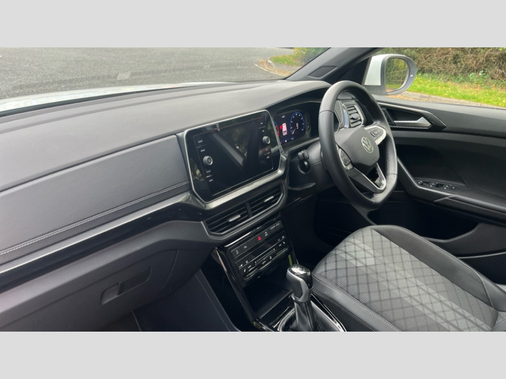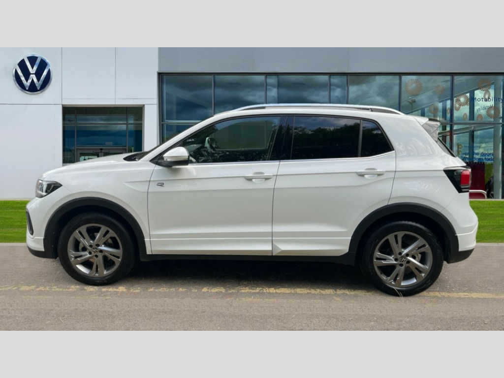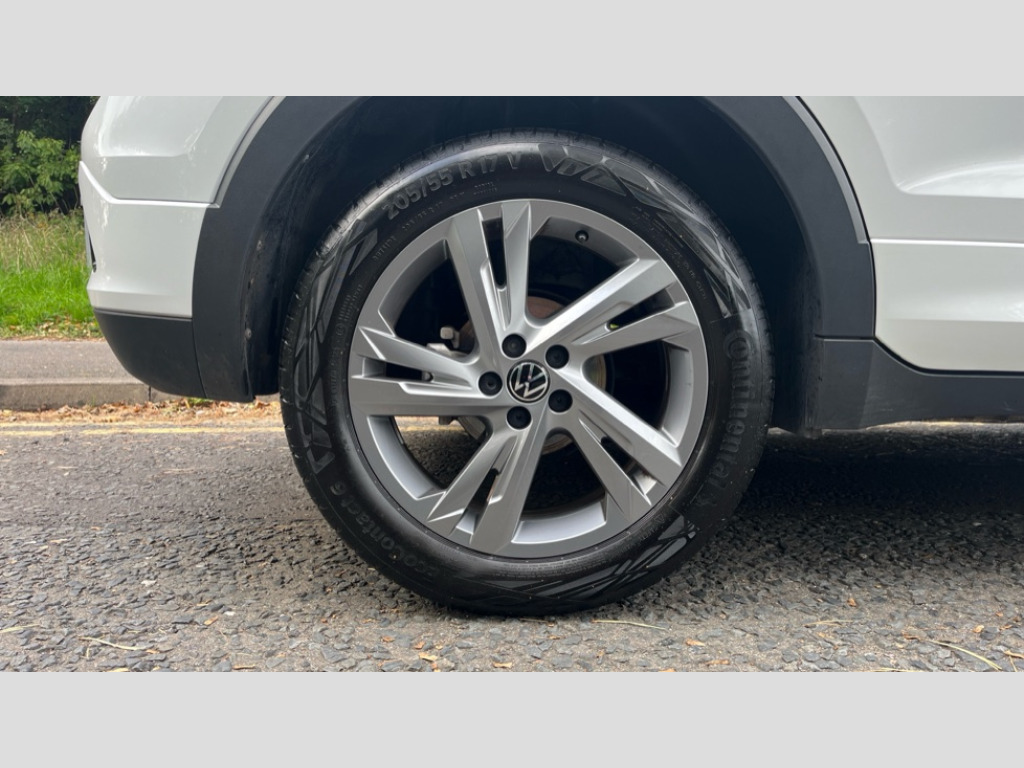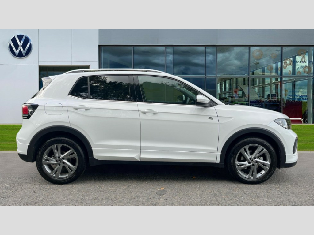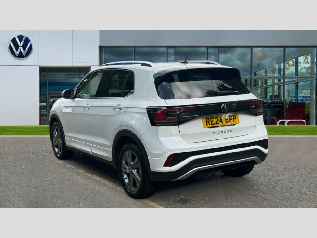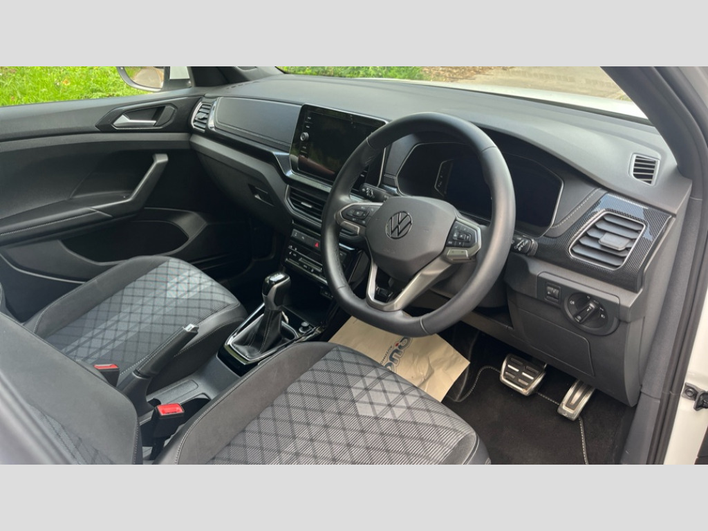 Volkswagen T-Cross 1.0 TSI 115 R-Line 5dr DSG 'Lights On' Reminder warning buzzer, 10.25" Digital cockpit pro, Adaptive cruise control including front assist, forward collision warning, autonomous emergency braking, speed limiter, Advanced driver attention and drowsiness monitor, Blind spot monitoring, Car information display, Driver profile selection including ECO function, Dynamic road sign display, E-Sim card for online connectivity, eCall emergency call system, Front and rear parking sensors, Low washer fluid warning light, Multifunction computer with visual gear change recommendation for fuel consumption, Multifunction front facing camera for distance control, Operating permit alteration, Power assisted steering, Preparation for navigation system with media and internet package, Preparation for We connect and We connect plus, Semi-automated driving assistance, travel assist including lane keeping system Lane Assist and emergency assisst, Speedo, rev counter, electronic odometer, trip, service interval display, exterior temperature and fuel gauge, Warning sound and light for doors and tailgate open, Warning sound and light for front seatbelts unfastened, Wireless Car net app connect with Apple CarPlay, combined functionality of Apple CarPlay/Android Auto and MirrorLink, Misfuel prevention device, Start-stop system with battery regeneration (recuperation - energy recovery during braking), 2 USB C ports in front, 2 USB charging sockets on the centre console in the rear charging capacity upto 45W, Diversity antenna for FM reception, Music playback - MP3, WMA and AAC files, Radio, Automatic dimming interior rear view mirror, Automatic hazard lights activation under emergency braking, Automatic headlight control with LED separate daytime running light and coming home and leaving home feature, Black roof rails, Body colour door handles, Body colour door mirrors, Body coloured bumpers, Dynamic headlight range control with self adjusting whilst driving, Electric folding door mirror, adjustable, heated with front passenger exterior mirror lowering function, Exterior mirrors convex on the left and aspherical on the right, Front and rear electric windows, Front door sill protectors with R-Line logo, Galvanised body, Heat insulating and laminated safety glass windshield, Heat insulating darkened glass in side and rear windows, High Beam Assist, automatic sensing for switching between dipped and main beam, LED rear combination lights, LED third brake light, Lower door sills and door pillars in black, Rain sensor, Rear fog light on one side, reversing light on both sides, Rear side wing doors, Rear tinted glass 65% approx light absorbing from B pillar backwards, Rear window aerial, Rear window wiper with intermittent control, Reflectors in all doors, Scuff plates, Tailgate with integrated roof spoiler, 12V Accessory socket in centre console, 2 Front and rear reading lights incorporating LED technology, 3 rear head restraints, 3 seat bench in 2nd row, 60/40 split folding rear seat backrest, Air care climatronic 2 zone air conditioning system, Ambient lighting, Brushed stainless steel pedals, Chrome plated radiator grille inserts, air vent surrounds and light switch surrounds, Cloth upholstery, Comfort front sport seats, Door and side trim panel, Drawer under drivers seat, Driver and front passenger sunvisor with vanity mirror, Dust and pollen filter, Front + rear carpet mats, Front centre armrest with storage compartment, Front footwell illumination, Front seat back storage pockets, Glove compartment door with light, Heated front seats, Heating and fresh air system with 4 stage blower, Height/reach adjust steering wheel, Instrument lighting white adjustable panel illumination, Interior light with switch off delay and dimmer, Isofix anchors for child seats on outer rear seats and front passenger seats, Leather gearshift handle, Leather wrapped multifunction steering wheel, Luggage compartment floor, Luggage compartment lighting, Manual front seats with height adjustment, Padded dashboard, Removable luggage compartment cover, Single front passenger seat, Storage compartment in drivers and front passengers door, Titanium black roof lining, Unsplit sliding rear seat bench, 3 point outer rear seat belts with ECE label, 3 Point seatbelt for centre rear seat, Anti-lock Braking System (ABS) with Hydraulic Brake Assist (HBA), Automatic post collision braking system, Disc brakes in front, Disc brakes in rear, Driver and front passenger safety-optimised head restraints, Drivers and Front Passengers airbags with front passengers airbag deactivation switch, ESC with EDL and ASR (traction control), Extended and predictive pedestrian/cyclist protection, Front and rear passenger curtain airbag system including front side airbags, Height adjustable front 3 point seatbelts + pretensioners, Hill start assist, Pre crash preventive occupant protection, Proactive passenger protection system in combination with front assist, Rear door child safety locks, Rigid safety cell with front and rear crumple zones, Single tone horn, Tyre pressure loss indicator, Volkswagen roadside assistance, Alarm with interior protection, Anti theft alarm system, Electronic engine immobiliser, Remote tailgate unlocking using key fob, Titanium Black Decorative inserts - R Line, Low rolling resistance tyres