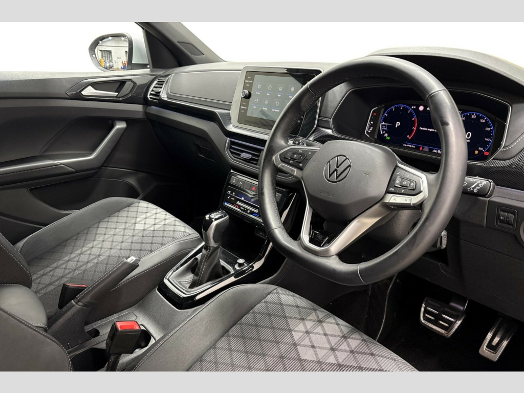 Volkswagen T-Cross 1.0 TSI 115 R-Line 5dr DSG 'Lights On' Reminder warning buzzer, 10.25" Digital cockpit pro, Advanced driver attention and drowsiness monitor, Blind spot monitoring, Car information display, Driver profile selection including ECO function, Dynamic road sign display, E-Sim card for online connectivity, eCall emergency call system, Front and rear parking sensors, Front assist, forward collision warning, autonomous emergency braking and speed limiter, Low washer fluid warning light, Multifunction computer with visual gear change recommendation for fuel consumption, Multifunction front facing camera for distance control, Operating permit alteration, Power assisted steering, Predictive adaptive cruise control, Preparation for navigation system with media and internet package, Preparation for We connect and We connect plus, Semi-automated driving assistance, travel assist including lane keeping system Lane Assist and emergency assisst, Speedo, rev counter, electronic odometer, trip, service interval display, exterior temperature and fuel gauge, Warning sound and light for doors and tailgate open, Warning sound and light for front seatbelts unfastened, Wireless Car net app connect with Apple CarPlay, combined functionality of Apple CarPlay/Android Auto and MirrorLink, Wireless charging, Misfuel prevention device, Start-stop system with battery regeneration (recuperation - energy recovery during braking), 2 USB C ports in front, 2 USB charging sockets on the centre console in the rear charging capacity upto 45W, Diversity antenna for FM reception, Music playback - MP3, WMA and AAC files, Radio, Automatic dimming interior rear view mirror, Automatic hazard lights activation under emergency braking, Automatic headlight control with LED separate daytime running light and coming home and leaving home feature, Body colour door handles, Body colour door mirrors, Body coloured bumpers, Dynamic headlight range control with self adjusting whilst driving, Electric folding door mirror, adjustable, heated with front passenger exterior mirror lowering function, Exterior mirrors convex on the left and aspherical on the right, Front and rear electric windows, Front door sill protectors with R-Line logo, Galvanised body, Heat insulating and laminated safety glass windshield, Heat insulating darkened glass in side and rear windows, High Beam Assist, automatic sensing for switching between dipped and main beam, LED rear combination lights, LED third brake light, Lower door sills and door pillars in black, Privacy glass for rear side windows and rear window, Rain sensor, Rear fog light on one side, reversing light on both sides, Rear side wing doors, Rear window aerial, Rear window wiper with intermittent control, Reflectors in all doors, Scuff plates, Tailgate with integrated roof spoiler, 12V Accessory socket in centre console, 2 Front and rear reading lights incorporating LED technology, 3 rear head restraints, 3 seat bench in 2nd row, 60/40 split folding rear seat backrest, Air care climatronic 2 zone air conditioning system, Ambient lighting, Brushed stainless steel pedals, Chrome plated radiator grille inserts, air vent surrounds and light switch surrounds, Cloth upholstery, Comfort front sport seats, Door and side trim panel, Drawer under drivers seat, Driver and front passenger sunvisor with vanity mirror, Dust and pollen filter, Front + rear carpet mats, Front centre armrest with storage compartment, Front footwell illumination, Front seat back storage pockets, Glove compartment door with light, Heated front seats, Heating and fresh air system with 4 stage blower, Height/reach adjust steering wheel, Instrument lighting white adjustable panel illumination, Interior light with switch off delay and dimmer, Isofix anchors for child seats on outer rear seats and front passenger seats, Leather gearshift handle, Leather wrapped multifunction steering wheel, Luggage compartment floor, Luggage compartment lighting, Manual front seats with height adjustment, Padded dashboard, Removable luggage compartment cover, Single front passenger seat, Storage compartment in drivers and front passengers door, Titanium black roof lining, Unsplit sliding rear seat bench, 3 point outer rear seat belts with ECE label, 3 Point seatbelt for centre rear seat, Anti-lock Braking System (ABS) with Hydraulic Brake Assist (HBA), Automatic post collision braking system, Disc brakes in front, Disc brakes in rear, Driver and front passenger safety-optimised head restraints, Drivers and Front Passengers airbags with front passengers airbag deactivation switch, ESC with EDL and ASR (traction control), Extended and predictive pedestrian/cyclist protection, Front and rear passenger curtain airbag system including front side airbags, Height adjustable front 3 point seatbelts + pretensioners, Hill start assist, Pre crash preventive occupant protection, Proactive passenger protection system in combination with front assist, Rear door child safety locks, Rigid safety cell with front and rear crumple zones, Single tone horn, Tyre pressure loss indicator, Volkswagen roadside assistance, Alarm with interior protection, Anti theft alarm system, Electronic engine immobiliser, Remote tailgate unlocking using key fob, Titanium Black Decorative inserts - R Line, Low rolling resistance tyres