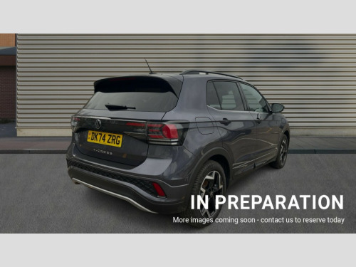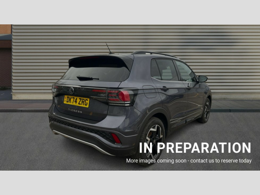 Volkswagen T-Cross 1.0 TSI 115 R-Line 5dr DSG 'Lights On' Reminder warning buzzer, 10.25" Digital cockpit pro, Advanced driver attention and drowsiness monitor, Blind spot monitoring, Car information display, Driver profile selection including ECO function, Dynamic road sign display, E-Sim card for online connectivity, eCall emergency call system, Front and rear parking sensors, Front assist, forward collision warning, autonomous emergency braking and speed limiter, Low washer fluid warning light, Multifunction computer with visual gear change recommendation for fuel consumption, Multifunction front facing camera for distance control, Operating permit alteration, Power assisted steering, Predictive adaptive cruise control, Preparation for navigation system with media and internet package, Preparation for We connect and We connect plus, Semi-automated driving assistance, travel assist including lane keeping system Lane Assist and emergency assisst, Speedo, rev counter, electronic odometer, trip, service interval display, exterior temperature and fuel gauge, Warning sound and light for doors and tailgate open, Warning sound and light for front seatbelts unfastened, Wireless Car net app connect with Apple CarPlay, combined functionality of Apple CarPlay/Android Auto and MirrorLink, Wireless charging, Misfuel prevention device, Start-stop system with battery regeneration (recuperation - energy recovery during braking), 2 USB C ports in front, 2 USB charging sockets on the centre console in the rear charging capacity upto 45W, Diversity antenna for FM reception, Music playback - MP3, WMA and AAC files, Radio, Automatic dimming interior rear view mirror, Automatic hazard lights activation under emergency braking, Automatic headlight control with LED separate daytime running light and coming home and leaving home feature, Body colour door handles, Body colour door mirrors, Body coloured bumpers, Dynamic headlight range control with self adjusting whilst driving, Electric folding door mirror, adjustable, heated with front passenger exterior mirror lowering function, Exterior mirrors convex on the left and aspherical on the right, Front and rear electric windows, Front door sill protectors with R-Line logo, Galvanised body, Heat insulating and laminated safety glass windshield, Heat insulating darkened glass in side and rear windows, High Beam Assist, automatic sensing for switching between dipped and main beam, LED rear combination lights, LED third brake light, Lower door sills and door pillars in black, Privacy glass for rear side windows and rear window, Rain sensor, Rear fog light on one side, reversing light on both sides, Rear side wing doors, Rear window aerial, Rear window wiper with intermittent control, Reflectors in all doors, Scuff plates, Tailgate with integrated roof spoiler, 12V Accessory socket in centre console, 2 Front and rear reading lights incorporating LED technology, 3 rear head restraints, 3 seat bench in 2nd row, 60/40 split folding rear seat backrest, Air care climatronic 2 zone air conditioning system, Ambient lighting, Brushed stainless steel pedals, Chrome plated radiator grille inserts, air vent surrounds and light switch surrounds, Cloth upholstery, Comfort front sport seats, Door and side trim panel, Drawer under drivers seat, Driver and front passenger sunvisor with vanity mirror, Dust and pollen filter, Front + rear carpet mats, Front centre armrest with storage compartment, Front footwell illumination, Front seat back storage pockets, Glove compartment door with light, Heated front seats, Heating and fresh air system with 4 stage blower, Height/reach adjust steering wheel, Instrument lighting white adjustable panel illumination, Interior light with switch off delay and dimmer, Isofix anchors for child seats on outer rear seats and front passenger seats, Leather gearshift handle, Leather wrapped multifunction steering wheel, Luggage compartment floor, Luggage compartment lighting, Manual front seats with height adjustment, Padded dashboard, Removable luggage compartment cover, Single front passenger seat, Storage compartment in drivers and front passengers door, Titanium black roof lining, Unsplit sliding rear seat bench, 3 point outer rear seat belts with ECE label, 3 Point seatbelt for centre rear seat, Anti-lock Braking System (ABS) with Hydraulic Brake Assist (HBA), Automatic post collision braking system, Disc brakes in front, Disc brakes in rear, Driver and front passenger safety-optimised head restraints, Drivers and Front Passengers airbags with front passengers airbag deactivation switch, ESC with EDL and ASR (traction control), Extended and predictive pedestrian/cyclist protection, Front and rear passenger curtain airbag system including front side airbags, Height adjustable front 3 point seatbelts + pretensioners, Hill start assist, Pre crash preventive occupant protection, Proactive passenger protection system in combination with front assist, Rear door child safety locks, Rigid safety cell with front and rear crumple zones, Single tone horn, Tyre pressure loss indicator, Volkswagen roadside assistance, Alarm with interior protection, Anti theft alarm system, Electronic engine immobiliser, Remote tailgate unlocking using key fob, Titanium Black Decorative inserts - R Line, Low rolling resistance tyres
