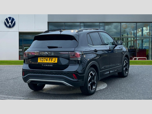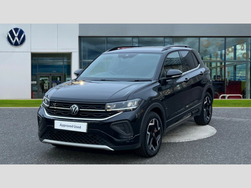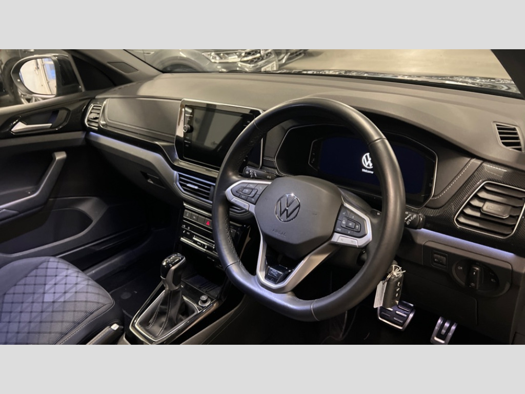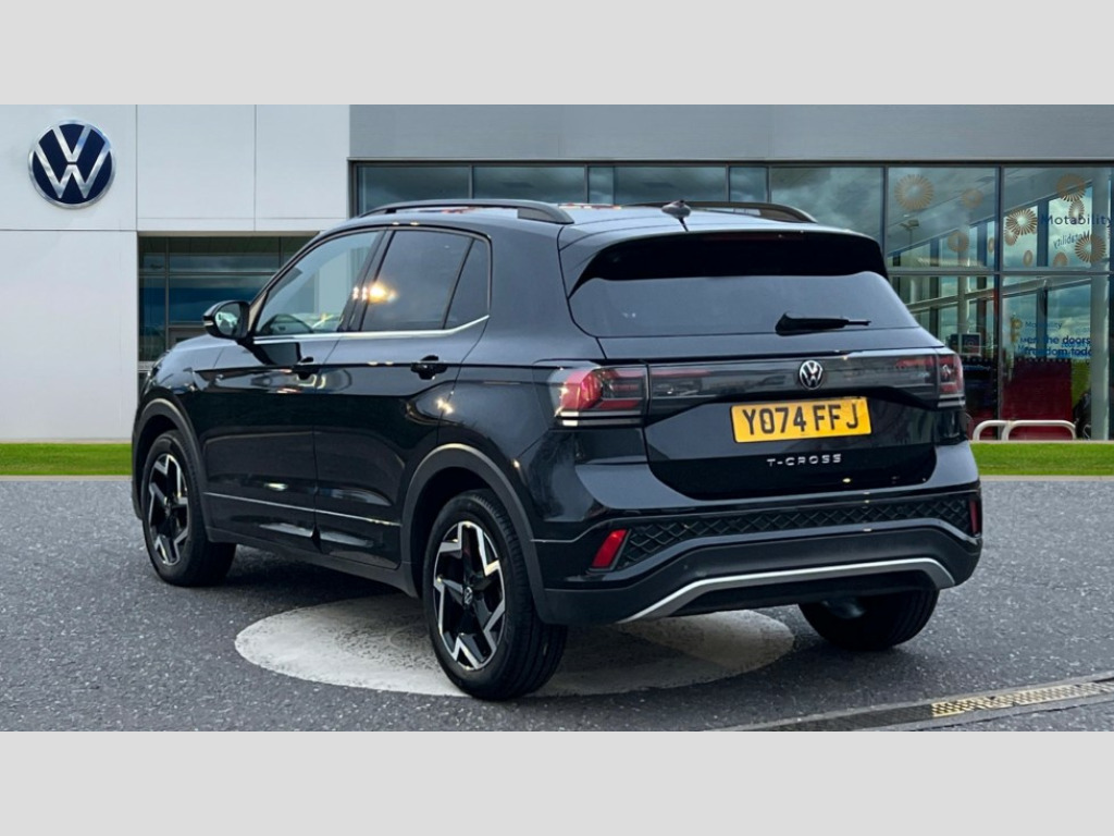 Volkswagen T-Cross 1.0 TSI 115 R-Line 5dr DSG 'Lights On' Reminder warning buzzer, 10.25" Digital cockpit pro, Advanced driver attention and drowsiness monitor, Blind spot monitoring, Car information display, Driver profile selection including ECO function, Dynamic road sign display, E-Sim card for online connectivity, eCall emergency call system, Front and rear parking sensors, Front assist, forward collision warning, autonomous emergency braking and speed limiter, Low washer fluid warning light, Multifunction computer with visual gear change recommendation for fuel consumption, Multifunction front facing camera for distance control, Operating permit alteration, Power assisted steering, Predictive adaptive cruise control, Preparation for navigation system with media and internet package, Preparation for We connect and We connect plus, Semi-automated driving assistance, travel assist including lane keeping system Lane Assist and emergency assisst, Speedo, rev counter, electronic odometer, trip, service interval display, exterior temperature and fuel gauge, Warning sound and light for doors and tailgate open, Warning sound and light for front seatbelts unfastened, Wireless Car net app connect with Apple CarPlay, combined functionality of Apple CarPlay/Android Auto and MirrorLink, Wireless charging, Misfuel prevention device, Start-stop system with battery regeneration (recuperation - energy recovery during braking), 2 USB C ports in front, 2 USB charging sockets on the centre console in the rear charging capacity upto 45W, Diversity antenna for FM reception, Music playback - MP3, WMA and AAC files, Radio, Automatic dimming interior rear view mirror, Automatic hazard lights activation under emergency braking, Automatic headlight control with LED separate daytime running light and coming home and leaving home feature, Body colour door handles, Body colour door mirrors, Body coloured bumpers, Dynamic headlight range control with self adjusting whilst driving, Electric folding door mirror, adjustable, heated with front passenger exterior mirror lowering function, Exterior mirrors convex on the left and aspherical on the right, Front and rear electric windows, Front door sill protectors with R-Line logo, Galvanised body, Heat insulating and laminated safety glass windshield, Heat insulating darkened glass in side and rear windows, High Beam Assist, automatic sensing for switching between dipped and main beam, LED rear combination lights, LED third brake light, Lower door sills and door pillars in black, Privacy glass for rear side windows and rear window, Rain sensor, Rear fog light on one side, reversing light on both sides, Rear side wing doors, Rear window aerial, Rear window wiper with intermittent control, Reflectors in all doors, Scuff plates, Tailgate with integrated roof spoiler, 12V Accessory socket in centre console, 2 Front and rear reading lights incorporating LED technology, 3 rear head restraints, 3 seat bench in 2nd row, 60/40 split folding rear seat backrest, Air care climatronic 2 zone air conditioning system, Ambient lighting, Brushed stainless steel pedals, Chrome plated radiator grille inserts, air vent surrounds and light switch surrounds, Cloth upholstery, Comfort front sport seats, Door and side trim panel, Drawer under drivers seat, Driver and front passenger sunvisor with vanity mirror, Dust and pollen filter, Front + rear carpet mats, Front centre armrest with storage compartment, Front footwell illumination, Front seat back storage pockets, Glove compartment door with light, Heated front seats, Heating and fresh air system with 4 stage blower, Height/reach adjust steering wheel, Instrument lighting white adjustable panel illumination, Interior light with switch off delay and dimmer, Isofix anchors for child seats on outer rear seats and front passenger seats, Leather gearshift handle, Leather wrapped multifunction steering wheel, Luggage compartment floor, Luggage compartment lighting, Manual front seats with height adjustment, Padded dashboard, Removable luggage compartment cover, Single front passenger seat, Storage compartment in drivers and front passengers door, Titanium black roof lining, Unsplit sliding rear seat bench, 3 point outer rear seat belts with ECE label, 3 Point seatbelt for centre rear seat, Anti-lock Braking System (ABS) with Hydraulic Brake Assist (HBA), Automatic post collision braking system, Disc brakes in front, Disc brakes in rear, Driver and front passenger safety-optimised head restraints, Drivers and Front Passengers airbags with front passengers airbag deactivation switch, ESC with EDL and ASR (traction control), Extended and predictive pedestrian/cyclist protection, Front and rear passenger curtain airbag system including front side airbags, Height adjustable front 3 point seatbelts + pretensioners, Hill start assist, Pre crash preventive occupant protection, Proactive passenger protection system in combination with front assist, Rear door child safety locks, Rigid safety cell with front and rear crumple zones, Single tone horn, Tyre pressure loss indicator, Volkswagen roadside assistance, Alarm with interior protection, Anti theft alarm system, Electronic engine immobiliser, Remote tailgate unlocking using key fob, Titanium Black Decorative inserts - R Line, Low rolling resistance tyres
