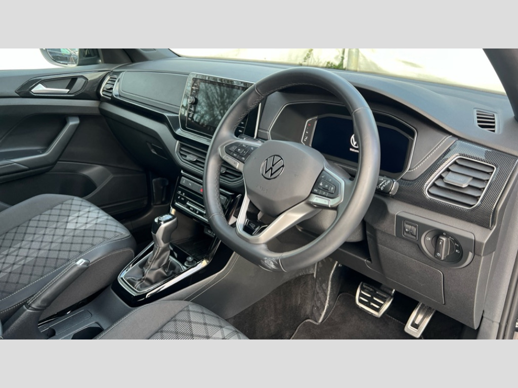 Volkswagen T-Cross 1.0 TSI 115 R-Line 5dr DSG 'Lights On' Reminder warning buzzer, 10.25" Digital cockpit pro, Advanced driver attention and drowsiness monitor, Blind spot monitoring, Car information display, Driver profile selection including ECO function, Dynamic road sign display, E-Sim card for online connectivity, eCall emergency call system, Front and rear parking sensors, Front assist, forward collision warning, autonomous emergency braking and speed limiter, Low washer fluid warning light, Multifunction computer with visual gear change recommendation for fuel consumption, Multifunction front facing camera for distance control, Operating permit alteration, Power assisted steering, Predictive adaptive cruise control, Preparation for navigation system with media and internet package, Preparation for We connect and We connect plus, Semi-automated driving assistance, travel assist including lane keeping system Lane Assist and emergency assisst, Speedo, rev counter, electronic odometer, trip, service interval display, exterior temperature and fuel gauge, Warning sound and light for doors and tailgate open, Warning sound and light for front seatbelts unfastened, Wireless Car net app connect with Apple CarPlay, combined functionality of Apple CarPlay/Android Auto and MirrorLink, Wireless charging, Misfuel prevention device, Start-stop system with battery regeneration (recuperation - energy recovery during braking), 2 USB C ports in front, 2 USB charging sockets on the centre console in the rear charging capacity upto 45W, Diversity antenna for FM reception, Music playback - MP3, WMA and AAC files, Radio, Automatic dimming interior rear view mirror, Automatic hazard lights activation under emergency braking, Automatic headlight control with LED separate daytime running light and coming home and leaving home feature, Body colour door handles, Body colour door mirrors, Body coloured bumpers, Dynamic headlight range control with self adjusting whilst driving, Electric folding door mirror, adjustable, heated with front passenger exterior mirror lowering function, Exterior mirrors convex on the left and aspherical on the right, Front and rear electric windows, Front door sill protectors with R-Line logo, Galvanised body, Heat insulating and laminated safety glass windshield, Heat insulating darkened glass in side and rear windows, High Beam Assist, automatic sensing for switching between dipped and main beam, LED rear combination lights, LED third brake light, Lower door sills and door pillars in black, Privacy glass for rear side windows and rear window, Rain sensor, Rear fog light on one side, reversing light on both sides, Rear side wing doors, Rear window aerial, Rear window wiper with intermittent control, Reflectors in all doors, Scuff plates, Tailgate with integrated roof spoiler, 12V Accessory socket in centre console, 2 Front and rear reading lights incorporating LED technology, 3 rear head restraints, 3 seat bench in 2nd row, 60/40 split folding rear seat backrest, Air care climatronic 2 zone air conditioning system, Ambient lighting, Brushed stainless steel pedals, Chrome plated radiator grille inserts, air vent surrounds and light switch surrounds, Cloth upholstery, Comfort front sport seats, Door and side trim panel, Drawer under drivers seat, Driver and front passenger sunvisor with vanity mirror, Dust and pollen filter, Front + rear carpet mats, Front centre armrest with storage compartment, Front footwell illumination, Front seat back storage pockets, Glove compartment door with light, Heated front seats, Heating and fresh air system with 4 stage blower, Height/reach adjust steering wheel, Instrument lighting white adjustable panel illumination, Interior light with switch off delay and dimmer, Isofix anchors for child seats on outer rear seats and front passenger seats, Leather gearshift handle, Leather wrapped multifunction steering wheel, Luggage compartment floor, Luggage compartment lighting, Manual front seats with height adjustment, Padded dashboard, Removable luggage compartment cover, Single front passenger seat, Storage compartment in drivers and front passengers door, Titanium black roof lining, Unsplit sliding rear seat bench, 3 point outer rear seat belts with ECE label, 3 Point seatbelt for centre rear seat, Anti-lock Braking System (ABS) with Hydraulic Brake Assist (HBA), Automatic post collision braking system, Disc brakes in front, Disc brakes in rear, Driver and front passenger safety-optimised head restraints, Drivers and Front Passengers airbags with front passengers airbag deactivation switch, ESC with EDL and ASR (traction control), Extended and predictive pedestrian/cyclist protection, Front and rear passenger curtain airbag system including front side airbags, Height adjustable front 3 point seatbelts + pretensioners, Hill start assist, Pre crash preventive occupant protection, Proactive passenger protection system in combination with front assist, Rear door child safety locks, Rigid safety cell with front and rear crumple zones, Single tone horn, Tyre pressure loss indicator, Volkswagen roadside assistance, Alarm with interior protection, Anti theft alarm system, Electronic engine immobiliser, Remote tailgate unlocking using key fob, Titanium Black Decorative inserts - R Line, Low rolling resistance tyres