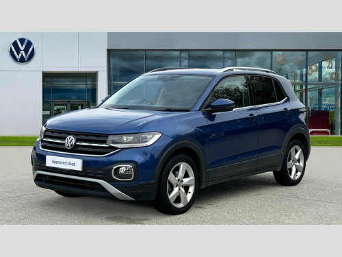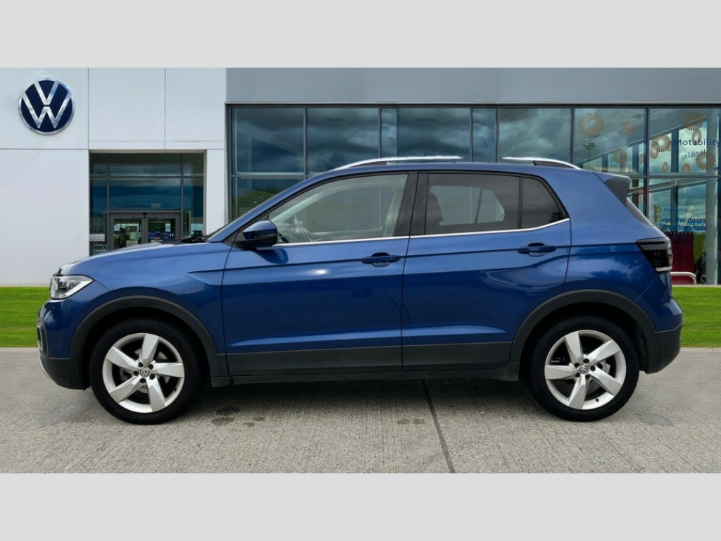 Volkswagen T-Cross 1.0 TSI 115 SEL 5dr Adaptive cruise control, Car-Net App-Connect with VW media control, Discover navigation system with 8.0" colour screen, radio/CD player, European map data, eCall emergency call system, Front assist, radar sensor controlled distance monitor, city emergency braking + predictive pedestrian protection, Lane assist with blind spot plus lane keeping system, Multifunction computer with visual gear change recommendation for fuel consumption, Power assisted speed sensitive steering, Side scan blind spot detection, Speed limiter, Speedo, rev counter, electronic odometer, trip, service interval display, exterior temperature and fuel gauge, Stop/start system, Warning sound and light for doors and tailgate open, Warning sound and light for front seatbelts unfastened, Battery regeneration during braking, Misfuel prevention device, 2 USB sockets in rear, Composition Media with 8"colour touch screen including DAB/CD drive, MP3/WMA, AUX-in/SD slot, 1 USB port and Bluetooth telephone connectivity, Multi device interface (MDI) with USB connection, Premium USB cable for Apple or Android smartphone compatibility, Simultaneous pairing of 2 compatible mobile devices, Title and cover art display, Automatic dimming interior rear view mirror with rain sensor, Automatic hazard lights activation under emergency braking, Body colour door handles, Body coloured bumpers, Dusk sensor, Front and rear electric windows, Front fog lights with static cornering function, Galvanised body, Heated rear window, High level 3rd brake light, LED headlights with auto range adjustment + LED daytime running lights, Manual coming/automatic leaving home lighting function, Radiator grille with chrome lamelel and bumpers in wagon paint, Rear tail lights LED except turn signals, Rear windscreen washer and wiper with interval delay, Reflectors in all doors, Silver roof rails, Tailgate with integrated roof spoiler, Windscreen wipers/ intermittent wipe + 4 position delay, 12V Accessory socket in centre console, 2 Front and rear reading lights incorporating LED technology, 2 Zone electronic climate control with automatic air recirculation, 3 rear head restraints and 3 rear three point seat belts with ECE label, 60/40 split folding rear seat backrest, Drawer under drivers seat, Driver's seat height adjustment, Driver's sunvisor with ticket holder, Dust and pollen filter, Front + rear carpet mats, Front centre armrest with storage compartment and two rear air vents, Glovebox, Heating and fresh air system with 4 stage blower, Height/reach adjust steering wheel, Instrument lighting white adjustable panel illumination, Interior light with delay, Isofix child seat preparation for 2 rear child seats, Luggage compartment cover, Luggage compartment lighting, Lumbar support, Manual front seats with height adjustment, Moveable and foldable Rear bench seat, Removable luggage cover, Storage compartment in driver and passenger doors, Sun visors with mirror on passenger side, Three spoke multi-function leather trimmed steering wheel and gearknob, Variable boot floor, Light and sight pack - T-cross, 3 point seat belt with electric pre tensioner, Anti-lock Braking System (ABS) with Hydraulic Brake Assist (HBA), Automatic post collision braking system, Driver and front passenger safety-optimised head restraints, Drivers and Front Passengers airbags with front passengers airbag deactivation switch, ESC with EDL, ASR, EDTC and trailer stabilisation function, Extended and proactive pedestrian protection, Front and rear curtain airbags, Front disc brakes and rear drum brakes, Front seat side impact airbags, Front ventilated disc brakes and rear disc brakes, Height adjustable 3 point automatic front seatbelts with pretensioners, Hill start assist, Pre crash preventive occupant protection, Rigid safety cell with front and rear crumple zones, Tyre pressure loss indicator, Volkswagen roadside assistance, Alarm with remote central locking and interior protection, Central locking without safe fuse with radio remote control and 2 radio folding keys, Child security locks in rear doors, Electronic engine immobiliser, Softell decorative inserts in dash and centre console