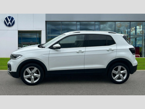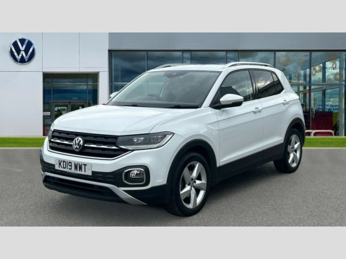 Volkswagen T-Cross 1.0 TSI 115 SEL 5dr DSG This 2019 Volkswagen T-Cross TSI SEL is a Volkswagen manufacturer approved vehicle with only one owner from new. It features a 1.0 litre Euro 6 compliant petrol engine and comes in the SEL trim. Notable features include a Winter Pack with heated seats, a dusk sensor for automatic driving lights, and Adaptive Cruise Control for a more relaxed driving experience. The T-Cross also boasts LED dipped and main beam headlights with automatic range adjustment and distinctive LED daytime running lights, alongside Car-Net App Connect which seamlessly integrates your Android Auto or Apple CarPlay.