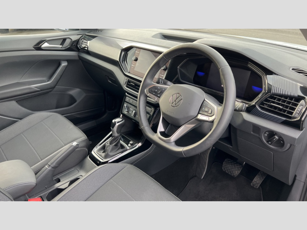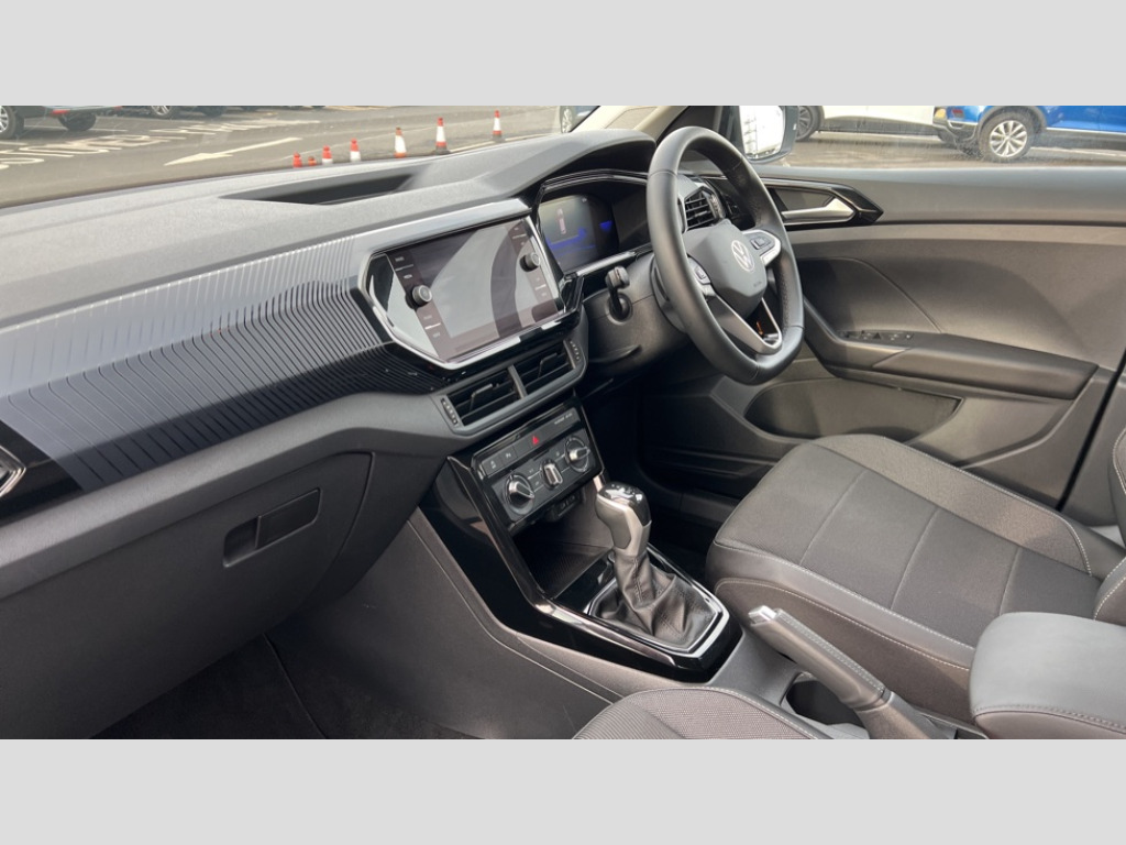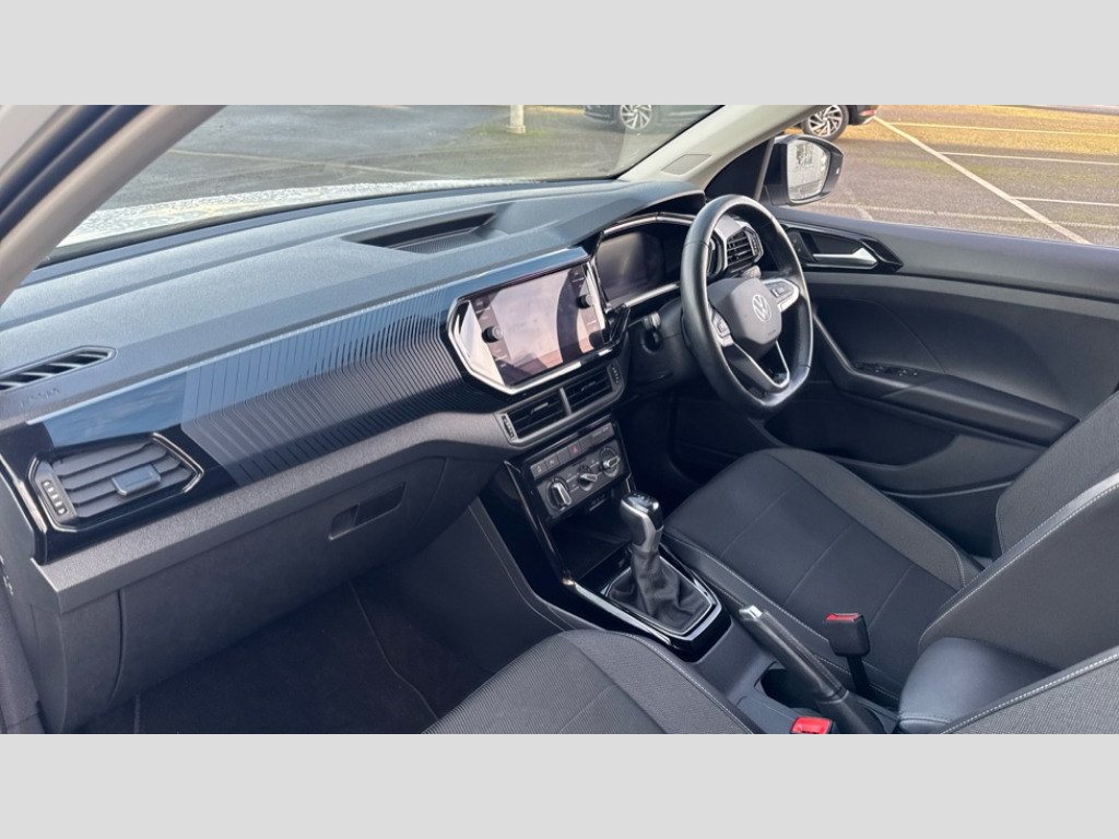 Volkswagen T-Cross 1.0 TSI Black Edition 5dr 'Lights On' Reminder warning buzzer, Adaptive cruise control including front assist, forward collision warning, autonomous emergency braking, speed limiter, Blind spot monitoring, Bluetooth telephone and audio connection for compatible devices, Car information display, Digital cockpit, Driver alert system, eCall emergency call system, Lane assist, Low washer fluid warning light, Multifunction computer with visual gear change recommendation for fuel consumption, Operating permit alteration, Power assisted speed sensitive steering, Speedo, rev counter, electronic odometer, trip, service interval display, exterior temperature and fuel gauge, Stop/start system, Warning sound and light for doors and tailgate open, Warning sound and light for front seatbelts unfastened, We Connect Go Dongle, Wireless Car net app connect with Apple CarPlay, combined functionality of Apple CarPlay/Android Auto and MirrorLink, Battery regeneration during braking, Misfuel prevention device, 2x USB connection with USB charging sockets and in rear centre console, DAB Digital radio receiver, Diversity antenna for FM reception, Multi device interface (MDI) with USB connection, Music playback - MP3, WMA and AAC files, Premium USB cable for Apple or Android smartphone compatibility, Simultaneous pairing of 2 compatible mobile devices, Title and cover art display, Automatic hazard lights activation under emergency braking, Black door mirrors, Black roof rails, Body colour door handles, Body coloured bumpers, Dusk sensor + automatic driving lights, Electrically foldable, adjustable and heated door mirrors with reverse activated kerb view adjustment on passenger's side, Front and rear electric windows, Front fog lights with static cornering function, Galvanised body, Heated rear window, LED third brake light, Lower door sills and door pillars in black, Radiator grille with high gloss surface and chrome strip, Rear fog light on one side, reversing light on both sides, Rear lights incorporating LED technology, Rear side wing doors, Rear tinted glass 65% approx light absorbing from B pillar backwards, Rear window aerial, Rear windscreen washer and wiper with interval delay, Reflectors in all doors, Tailgate with integrated roof spoiler, Windscreen wipers/ intermittent wipe + 4 position delay, 12V Accessory socket in centre console, 3 rear head restraints and 3 rear three point seat belts with ECE label, 3 seat bench in 2nd row, 60/40 split folding rear seat backrest, Comfort front sport seats, Diag cloth upholstery, Drawer under drivers seat, Driver and front passenger sunvisor with vanity mirror, Driver's sunvisor with ticket holder, Dust and pollen filter, Front + rear carpet mats, Front and rear reading lights X 2, Front centre armrest with storage compartment, Front seat back storage pockets, Front seats with adjustable lumbar support, Glovebox, Heating and fresh air system with 4 stage blower, Height/reach adjust steering wheel, Instrument lighting white adjustable panel illumination, Interior light with delay, Isofix child seat preparation for 2 rear child seats, Luggage compartment cover, Luggage compartment lighting, Manual air conditioning, Moveable and foldable Rear bench seat, Single front passenger seat, Storage compartment in drivers and front passengers door, Three spoke multi-function leather trimmed steering wheel and gearknob, Variable boot floor, Anti-lock Braking System (ABS) with Hydraulic Brake Assist (HBA), Automatic post collision braking system, Driver and front passenger safety-optimised head restraints, Drivers and Front Passengers airbags with front passengers airbag deactivation switch, ESC with EDL, ASR, EDTC and trailer stabilisation function, Front and rear curtain airbags, Front disc brakes and rear drum brakes, Front seat side impact airbags, Height-adjustable front three-point seat belts with tensioners, Hill start assist, Pre crash preventive occupant protection, Rear door child safety locks, Rigid safety cell with front and rear crumple zones, Single torn horn, Tyre pressure loss indicator, Volkswagen roadside assistance, Alarm with interior protection and deactivation via infotainment system, Child security locks in rear doors, Electronic engine immobiliser, Remote tailgate unlocking using key fob, Decorative inserts transition high gloss black/platnium grey, 17" Manila black diamond turned surface alloy wheels + anti theft wheel bolts, Breakdown kit