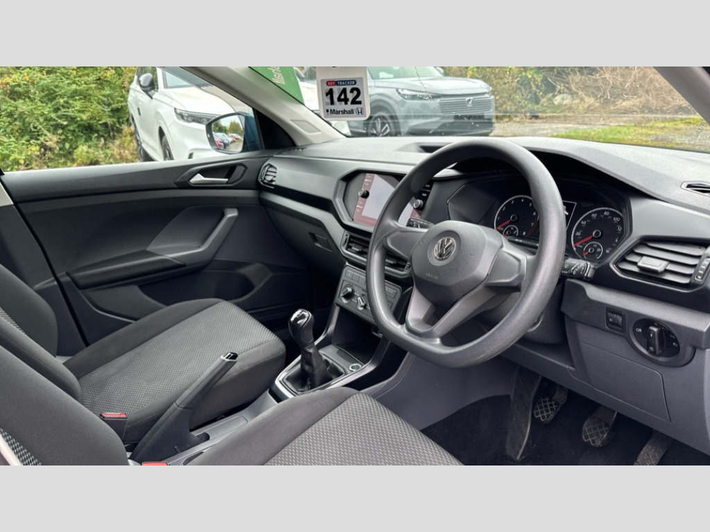 Volkswagen T-Cross 1.0 TSI S 5dr 'Lights On' Reminder warning buzzer, eCall emergency call system, Lane assist with blind spot plus lane keeping system, Multifunction computer with visual gear change recommendation for fuel consumption, Power assisted speed sensitive steering, Side scan blind spot detection, Speedo, rev counter, electronic odometer, trip, service interval display, exterior temperature and fuel gauge, Stop/start system, Warning sound and light for doors and tailgate open, Warning sound and light for front seatbelts unfastened, Battery regeneration during braking, Misfuel prevention device, Composition Media with 8"colour touch screen including DAB/CD drive, MP3/WMA, AUX-in/SD slot, 1 USB port and Bluetooth telephone connectivity, Front and rear 6 speakers, Multi device interface (MDI) with USB connection, Premium USB cable for Apple or Android smartphone compatibility, Simultaneous pairing of 2 compatible mobile devices, Title and cover art display, Automatic dimming interior rear view mirror with rain sensor, Automatic hazard lights activation under emergency braking, Body colour door handles, Body colour door mirrors with integrated indicators, Body coloured bumpers, Dusk sensor, Front and rear electric windows, Galvanised body, Halogen clear headlights range adjustable via infotainment system with automatic headlight activation and separate LED daytime running lights, Heated rear window, High level 3rd brake light, Lower door sills and door pillars in black, Manual coming/automatic leaving home lighting function, Power adjustable heated door mirrors, Radiator grille with chrome lamelel and bumpers in wagon paint, Rear tail lights LED except turn signals, Rear window aerial, Rear windscreen washer and wiper with interval delay, Reflectors in all doors, Tailgate with integrated roof spoiler, Windscreen wipers/ intermittent wipe + 4 position delay, 12V Accessory socket in centre console, 3 rear head restraints and 3 rear three point seat belts with ECE label, 60/40 split folding rear seat backrest, Basket cloth upholstery, Drawer under drivers seat, Driver and front passenger sunvisor with vanity mirror, Driver's sunvisor with ticket holder, Dust and pollen filter, Front centre armrest with storage compartment and two rear air vents, Front seats with adj lumbar support, Glovebox, Heating and fresh air system with 4 stage blower, Height/reach adjust steering wheel, Indoor lights with shutdown delay and dimming function in 2 reading lights at the front and 2 rear, Instrument lighting white adjustable panel illumination, Interior light with delay, Isofix child seat preparation for 2 rear child seats, Luggage compartment cover, Luggage compartment lighting, Manual climate control, Manual front seats with height adjustment, Moveable and foldable Rear bench seat, Removable luggage cover, Storage compartment in driver and passenger doors, 3 point seat belt with electric pre tensioner, Anti-lock Braking System (ABS) with Hydraulic Brake Assist (HBA), Automatic post collision braking system, Driver and front passenger safety-optimised head restraints, Drivers and Front Passengers airbags with front passengers airbag deactivation switch, ESC with EDL, ASR, EDTC and trailer stabilisation function, Extended and proactive pedestrian protection, Front and rear curtain airbags, Front disc brakes and rear drum brakes, Front seat side impact airbags, Front ventilated disc brakes and rear disc brakes, Height adjustable 3 point automatic front seatbelts with pretensioners, Hill start assist, Pre crash preventive occupant protection, Rigid safety cell with front and rear crumple zones, Tyre pressure loss indicator, Volkswagen roadside assistance, Central locking without safe fuse with radio remote control and 2 radio folding keys, Child security locks in rear doors, Electronic engine immobiliser, Remote tailgate unlocking using key fob, Softell decorative inserts in dash and centre console, 16" Rochester black alloy wheels + anti theft wheel bolts