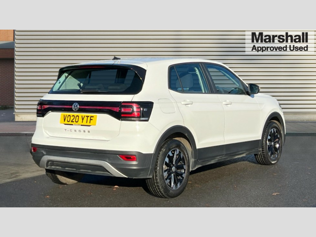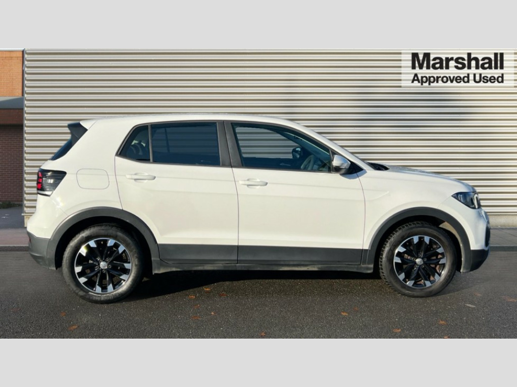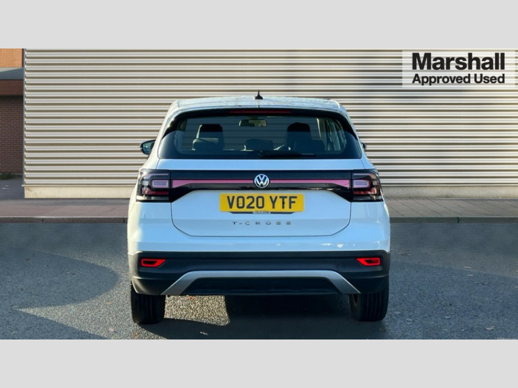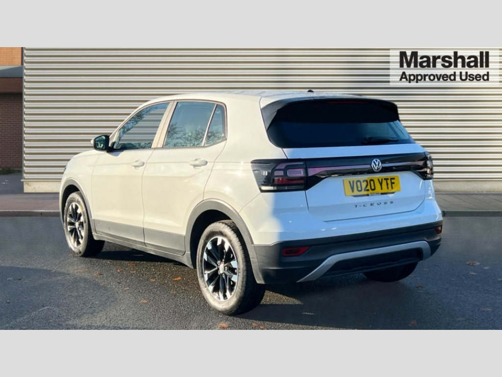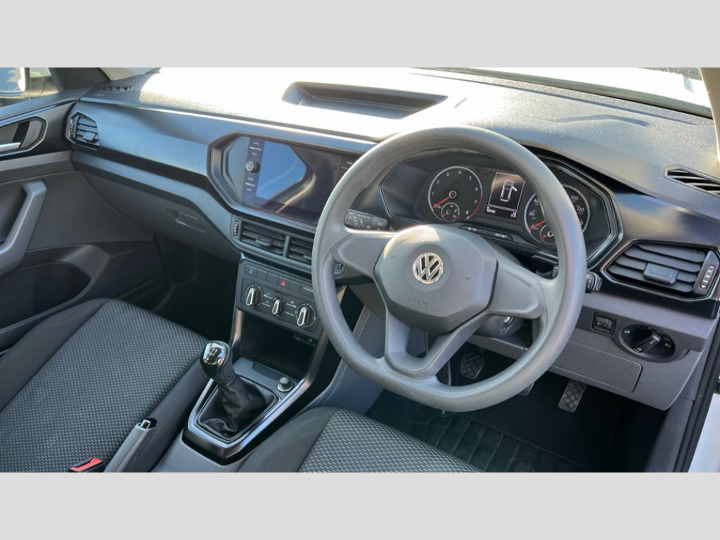 Volkswagen T-Cross 1.0 TSI S 5dr 'Lights On' Reminder warning buzzer, eCall emergency call system, Lane assist, Multifunction computer with visual gear change recommendation for fuel consumption, Power assisted speed sensitive steering, Speedo, rev counter, electronic odometer, trip, service interval display, exterior temperature and fuel gauge, Stop/start system, Warning sound and light for doors and tailgate open, Warning sound and light for front seatbelts unfastened, We Connect Go Dongle, Battery regeneration during braking, Misfuel prevention device, Front and rear 6 speakers, Premium USB cable for Apple or Android smartphone compatibility, Automatic hazard lights activation under emergency braking, Body colour door handles, Body coloured bumpers, Electric adjustable/heated door mirrors, Front and rear electric windows, Galvanised body, Halogen clear headlights range adjustable via infotainment system with automatic headlight activation and separate LED daytime running lights, Heated rear window, High level 3rd brake light, Lower door sills and door pillars in black, Manual coming/automatic leaving home lighting function, Radiator grille with high gloss surface and chrome strip, Rear lights incorporating LED technology, Rear window aerial, Rear windscreen washer and wiper with interval delay, Reflectors in all doors, Tailgate with integrated roof spoiler, Windscreen wipers/ intermittent wipe + 4 position delay, 12V Accessory socket in centre console, 3 rear head restraints and 3 rear three point seat belts with ECE label, 60/40 split folding rear seat backrest, Basket cloth upholstery, Drawer under drivers seat, Driver and front passenger sunvisor with vanity mirror, Driver's sunvisor with ticket holder, Dust and pollen filter, Front and rear reading lights X 2, Front seats with adj lumbar support, Glovebox, Heating and fresh air system with 4 stage blower, Height/reach adjust steering wheel, Instrument lighting white adjustable panel illumination, Interior light with delay, Isofix child seat preparation for 2 rear child seats, Luggage compartment cover, Luggage compartment lighting, Manual air conditioning, Manual front seats with height adjustment, Moveable and foldable Rear bench seat, Storage compartment in drivers and front passengers door, Anti-lock Braking System (ABS) with Hydraulic Brake Assist (HBA), Automatic post collision braking system, Driver and front passenger safety-optimised head restraints, Drivers and Front Passengers airbags with front passengers airbag deactivation switch, ESC with EDL, ASR, EDTC and trailer stabilisation function, Extended and proactive pedestrian protection, Front and rear curtain airbags, Front disc brakes and rear drum brakes, Front seat side impact airbags, Height adjustable 3 point automatic front seatbelts with pretensioners, Hill start assist, Pre crash preventive occupant protection, Rigid safety cell with front and rear crumple zones, Tyre pressure loss indicator, Volkswagen roadside assistance, Child security locks in rear doors, Electronic engine immobiliser, Remote central locking with 2 remote folding keys, Remote tailgate unlocking using key fob, Softell decorative inserts in dash and centre console, 16" Rochester black alloy wheels + anti theft wheel bolts