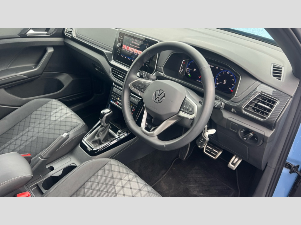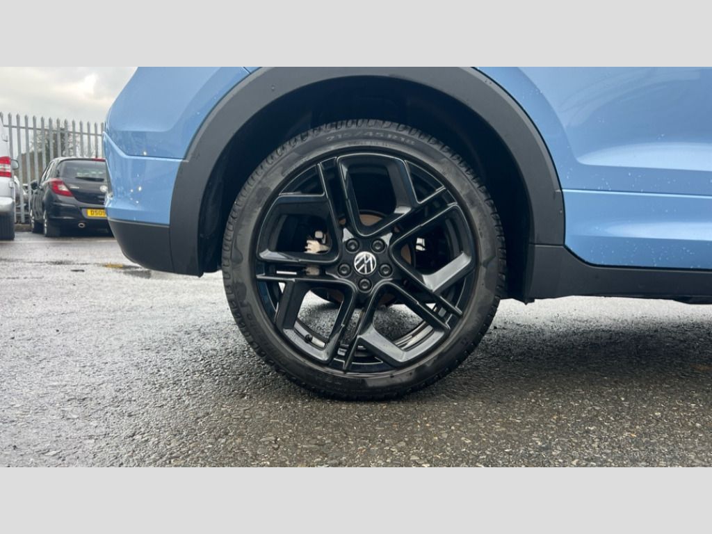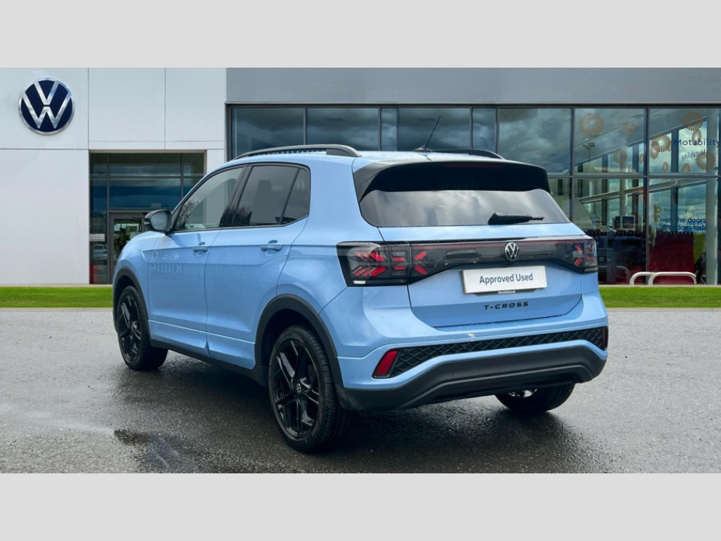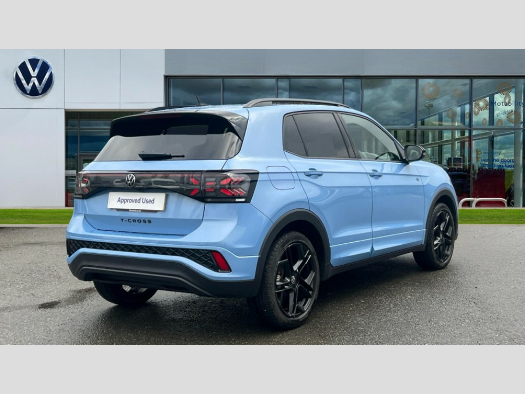 Volkswagen T-Cross 1.5 TSI Black Edition 5dr DSG 'Lights On' Reminder warning buzzer, 10.25" Digital cockpit pro, Advanced driver attention and drowsiness monitor, Blind spot monitoring, Car information display, Driver profile selection including ECO function, Dynamic road sign display, E-Sim card for online connectivity, eCall emergency call system, Front and rear parking sensors, Front assist, forward collision warning, autonomous emergency braking and speed limiter, Low washer fluid warning light, Mobile phone interface with inductive charging, Multifunction computer with visual gear change recommendation for fuel consumption, Multifunction front facing camera for distance control, Operating permit alteration, Power assisted steering, Predictive adaptive cruise control, Preparation for navigation system with media and internet package, Preparation for We connect and We connect plus, Semi-automated driving assistance, travel assist including lane keeping system Lane Assist and emergency assisst, Speedo, rev counter, electronic odometer, trip, service interval display, exterior temperature and fuel gauge, Warning sound and light for doors and tailgate open, Warning sound and light for front seatbelts unfastened, Wireless Car net app connect with Apple CarPlay, combined functionality of Apple CarPlay/Android Auto and MirrorLink, Wireless charging, Misfuel prevention device, Start-stop system with battery regeneration (recuperation - energy recovery during braking), 2 USB C ports in front, 2 USB charging sockets on the centre console in the rear charging capacity upto 45W, Diversity antenna for FM reception, Music playback - MP3, WMA and AAC files, Radio, Advanced high beam control dynamic light assist, Automatic dimming interior rear view mirror, Automatic hazard lights activation under emergency braking, Automatic headlight control and coming home and leaving home feature, Black roof rails, Body colour door handles, Body coloured bumpers, Cornering light and poor weather light, Dynamic headlight range control, Electric folding door mirror, adjustable, heated with front passenger exterior mirror lowering function, Exterior mirrors convex on the left and aspherical on the right, Exterior mirrors in contrast colour, Front and rear electric windows, Front door sill protectors with R-Line logo, Galvanised body, Heat insulating and laminated safety glass windshield, Heat insulating darkened glass in side and rear windows, Illuminated molding between headlamps, IQ.Light LED matrix headlamps with LED separate daytime running light, LED rear tail lights with dynamic turn signal, LED third brake light, Lower door sills and door pillars in black, Privacy glass for rear side windows and rear window, Rain sensor, Rear fog light on one side, reversing light on both sides, Rear side wing doors, Rear window aerial, Rear window wiper with intermittent control, Reflectors in all doors, Scuff plates, Tailgate with integrated roof spoiler, 12V Accessory socket in centre console, 2 Front and rear reading lights incorporating LED technology, 3 rear head restraints, 3 seat bench in 2nd row, 60/40 split folding rear seat backrest, Air care climatronic 2 zone air conditioning system, Ambient lighting and logo projection, Brushed stainless steel pedals, Chrome plated radiator grille inserts, air vent surrounds and light switch surrounds, Cloth upholstery, Comfort front sport seats, Door and side trim panel, Drawer under drivers seat, Driver and front passenger sunvisor with vanity mirror, Dust and pollen filter, Front + rear carpet mats, Front centre armrest, Front centre armrest with storage compartment, Front footwell illumination, Front seat back storage pockets, Glove compartment door with light, Heated front seats, Heating and fresh air system with 4 stage blower, Height/reach adjust steering wheel, Instrument lighting white adjustable panel illumination, Interior light with switch off delay and dimmer, Isofix anchors for child seats on outer rear seats and front passenger seats, Leather gearshift handle, Leather wrapped multifunction steering wheel with paddle shift, Luggage compartment floor, Luggage compartment lighting, Manual front seats with height adjustment, Padded dashboard, Removable luggage compartment cover, Single front passenger seat, Storage compartment in drivers and front passengers door, Titanium black roof lining, Unsplit sliding rear seat bench, 3 point outer rear seat belts with ECE label, 3 Point seatbelt for centre rear seat, Anti-lock Braking System (ABS) with Hydraulic Brake Assist (HBA), Automatic post collision braking system, Disc brakes in front, Disc brakes in rear, Driver and front passenger safety-optimised head restraints, Drivers and Front Passengers airbags with front passengers airbag deactivation switch, ESC with EDL and ASR (traction control), Extended and predictive pedestrian/cyclist protection, Front and rear passenger curtain airbag system including front side airbags, Height adjustable front 3 point seatbelts + pretensioners, Hill start assist, Pre crash preventive occupant protection, Proactive passenger protection system in combination with front assist, Rear door child safety locks, Rigid safety cell with front and rear crumple zones, Single tone horn, Tyre pressure loss indicator, Volkswagen roadside assistance, Alarm with interior protection, Anti theft alarm system, Anti theft wheel bolts, Electronic engine immobiliser, Remote tailgate unlocking using key fob, Black decorative trims, Titanium Black Decorative inserts - R Line, 18" York black diamond turned alloy wheels, Low rolling resistance tyres