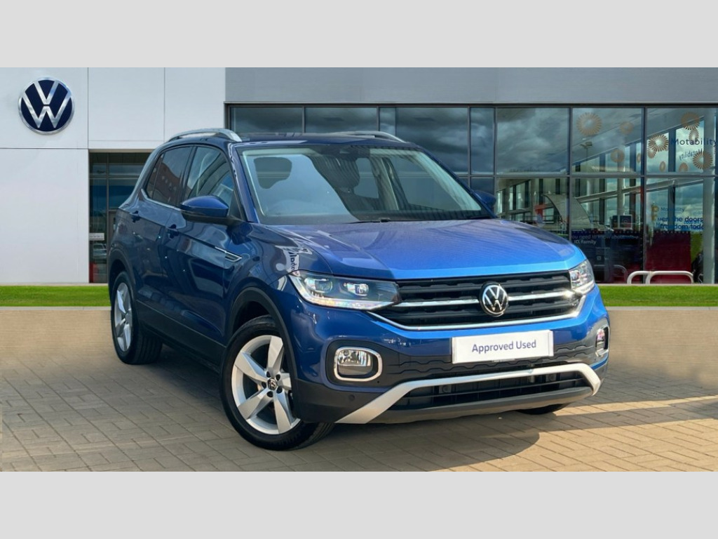 Volkswagen T-Cross 1.5 TSI EVO SEL 5dr DSG 'Lights On' Reminder warning buzzer, 2D/3D map view, Adaptive cruise control including front assist, forward collision warning, autonomous emergency braking, speed limiter, Blind spot monitoring, Bluetooth telephone and audio connection for compatible devices, Car information display, Digital cockpit, Driver alert system, eCall emergency call system, Lane assist, Low washer fluid warning light, Multifunction computer with visual gear change recommendation for fuel consumption, Operating permit alteration, Power assisted speed sensitive steering, Speed limit display, Speedo, rev counter, electronic odometer, trip, service interval display, exterior temperature and fuel gauge, Stop/start system, Warning sound and light for doors and tailgate open, Warning sound and light for front seatbelts unfastened, We connect plus preparation, Wireless Car net app connect with Apple CarPlay, combined functionality of Apple CarPlay/Android Auto and MirrorLink, Battery regeneration during braking, Misfuel prevention device, 2x USB connection with USB charging sockets and in rear centre console, DAB Digital radio receiver, Diversity antenna for FM reception, Multi device interface (MDI) with USB connection, Music playback - MP3, WMA and AAC files, Premium USB cable for Apple or Android smartphone compatibility, Simultaneous pairing of 2 compatible mobile devices, SMS Functionality, Three route options - Fast, Short, Eco, Title and cover art display, Automatic hazard lights activation under emergency braking, Body colour door handles, Body coloured bumpers, Dusk sensor + automatic driving lights, Electrically foldable, adjustable and heated door mirrors with reverse activated kerb view adjustment on passenger's side, Front and rear electric windows, Front fog lights with static cornering function, Galvanised body, Heated rear window, LED third brake light, Lower door sills and door pillars in black, Radiator grille with chrome trim and chrome bezel front fog lamp, Rear fog light on one side, reversing light on both sides, Rear lights incorporating LED technology, Rear side wing doors, Rear window aerial, Rear windscreen washer and wiper with interval delay, Reflectors in all doors, Silver roof rails, Tailgate with integrated roof spoiler, Windscreen wipers/ intermittent wipe + 4 position delay, 12V Accessory socket in centre console, 2 Front and rear reading lights incorporating LED technology, 2 Zone electronic climate control with automatic air recirculation, 3 rear head restraints and 3 rear three point seat belts with ECE label, 3 seat bench in 2nd row, 60/40 split folding rear seat backrest, Branded points of interest, Drawer under drivers seat, Driver and front passenger sunvisor with vanity mirror, Driver's sunvisor with ticket holder, Dust and pollen filter, Front + rear carpet mats, Front centre armrest with storage compartment, Front footwell illumination, Front seat back storage pockets, Glovebox, Heating and fresh air system with 4 stage blower, Height/reach adjust steering wheel, Instrument lighting white adjustable panel illumination, Interior light with delay, Isofix child seat preparation for 2 rear child seats, Luggage compartment cover, Luggage compartment lighting, Moveable and foldable Rear bench seat, Storage compartment in drivers and front passengers door, Three spoke multi-function leather trimmed steering wheel and gearknob, Variable boot floor, Anti-lock Braking System (ABS) with Hydraulic Brake Assist (HBA), Automatic post collision braking system, Driver and front passenger safety-optimised head restraints, Drivers and Front Passengers airbags with front passengers airbag deactivation switch, ESC with EDL, ASR, EDTC and trailer stabilisation function, Front and rear curtain airbags, Front seat side impact airbags, Height-adjustable front three-point seat belts with tensioners, Hill start assist, Pre crash preventive occupant protection, Rear door child safety locks, Rigid safety cell with front and rear crumple zones, Single torn horn, Tyre pressure loss indicator, Volkswagen roadside assistance, Alarm with interior protection and deactivation via infotainment system, Child security locks in rear doors, Electronic engine immobiliser, Remote tailgate unlocking using key fob, Breakdown kit