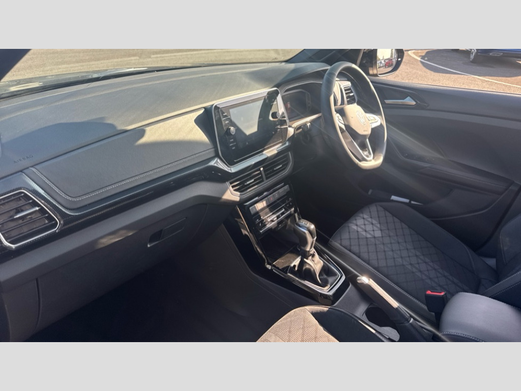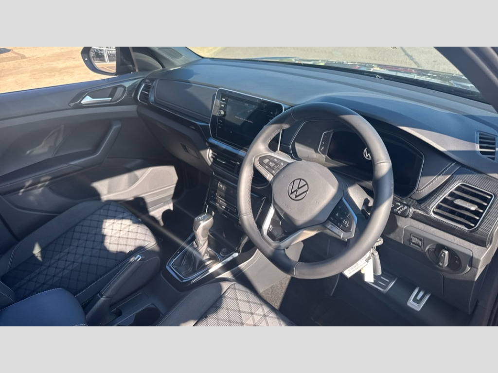 Volkswagen T-Cross 1.5 TSI R-Line 5dr DSG 'Lights On' Reminder warning buzzer, 10.25" Digital cockpit pro, Advanced driver attention and drowsiness monitor, Car information display, Driver profile selection including ECO function, Dynamic road sign display, E-Sim card for online connectivity, eCall emergency call system, Front and rear parking sensors, Front assist, forward collision warning, autonomous emergency braking and speed limiter, Low washer fluid warning light, Multifunction computer with visual gear change recommendation for fuel consumption, Multifunction front facing camera for distance control, Operating permit alteration, Power assisted steering, Predictive adaptive cruise control, Preparation for navigation system with media and internet package, Preparation for We connect and We connect plus, Semi-automated driving assistance, travel assist including lane keeping system Lane Assist and emergency assisst, Side assist, Speedo, rev counter, electronic odometer, trip, service interval display, exterior temperature and fuel gauge, Warning sound and light for doors and tailgate open, Warning sound and light for front seatbelts unfastened, Wireless Car net app connect with Apple CarPlay, combined functionality of Apple CarPlay/Android Auto and MirrorLink, Wireless charging, Misfuel prevention device, Start-stop system with battery regeneration (recuperation - energy recovery during braking), 2 USB C ports in front, 2 USB charging sockets on the centre console in the rear charging capacity upto 45W, Diversity antenna for FM reception, Music playback - MP3, WMA and AAC files, Radio, Automatic dimming interior rear view mirror, Automatic hazard lights activation under emergency braking, Automatic headlight control with LED separate daytime running light and coming home and leaving home feature, Body colour door handles, Body coloured bumpers, Dynamic headlight range control with self adjusting whilst driving, Electric folding door mirror, adjustable, heated with front passenger exterior mirror lowering function, Exterior mirrors convex on the left and aspherical on the right, Front and rear electric windows, Front door sill protectors with R-Line logo, Galvanised body, Heat insulating and laminated safety glass windshield, Heat insulating darkened glass in side and rear windows, High Beam Assist, automatic sensing for switching between dipped and main beam, LED rear combination lights, LED third brake light, Lower door sills and door pillars in black, Rain sensor, Rear fog light on one side, reversing light on both sides, Rear side wing doors, Rear window aerial, Rear window wiper with intermittent control, Reflectors in all doors, Scuff plates, Tailgate with integrated roof spoiler, 12V Accessory socket in centre console, 2 Front and rear reading lights incorporating LED technology, 3 rear head restraints, 3 seat bench in 2nd row, 60/40 split folding rear seat backrest, Air care climatronic 2 zone air conditioning system, Ambient lighting, Brushed stainless steel pedals, Chrome plated radiator grille inserts, air vent surrounds and light switch surrounds, Cloth upholstery, Comfort front sport seats, Door and side trim panel, Driver and front passenger sunvisor with vanity mirror, Dust and pollen filter, Front + rear carpet mats, Front centre armrest with storage compartment, Front footwell illumination, Front seat back storage pockets, Glove compartment door with light, Heated front seats, Heating and fresh air system with 4 stage blower, Height/reach adjust steering wheel, Instrument lighting white adjustable panel illumination, Interior light with switch off delay and dimmer, Isofix anchors for child seats on outer rear seats and front passenger seats, Leather gearshift handle, Leather wrapped multifunction steering wheel, Luggage compartment floor, Luggage compartment lighting, Manual front seats with height adjustment, Padded dashboard, Removable luggage compartment cover, Single front passenger seat, Storage compartment in drivers and front passengers door, Titanium black roof lining, Unsplit sliding rear seat bench, Without drawers under front seats, 3 point outer rear seat belts with ECE label, 3 Point seatbelt for centre rear seat, Anti-lock Braking System (ABS) with Hydraulic Brake Assist (HBA), Automatic post collision braking system, Disc brakes in front, Disc brakes in rear, Driver and front passenger safety-optimised head restraints, Drivers and Front Passengers airbags with front passengers airbag deactivation switch, ESC with EDL and ASR (traction control), Extended and predictive pedestrian/cyclist protection, Front and rear passenger curtain airbag system including front side airbags, Height adjustable front 3 point seatbelts + pretensioners, Hill start assist, Pre crash preventive occupant protection, Proactive passenger protection system in combination with front assist, Rear door child safety locks, Rigid safety cell with front and rear crumple zones, Single tone horn, Tyre pressure loss indicator, Volkswagen roadside assistance, Alarm with interior protection, Anti theft alarm system, Electronic engine immobiliser, Remote tailgate unlocking using key fob, Titanium Black Decorative inserts - R Line, Low rolling resistance tyres