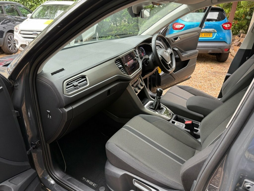 In stock now this stunning 1.0 TSI special equipment T-ROC 5 Door with great specification. I come complete with air conditioning, black cloth interior, factory bluetooth for handsfree, DAB digital radio, Aux and USB connectivity, power folding electric mirrors, electric windows all round, cruise control, multi function leather steering wheel, remote central locking with 2 x keys, 17 inch alloy wheels, Finished in stunning grey with a great service history having recently been serviced and a long mot with no advisories. In great condition throughout. 12V Socket in Centre Console in Storage , 17in Alloy Wheels - Kulmbach, 2x USB Connection - USB Charging Sockets, ABS - Anti-Lock Braking System, Adaptive Cruise Control, Airbags - Front Seat Side Impact, Alarm, Armrest - Front Centre, Automatic Dimming Interior Rear View Mir, Automatic Hazard Lights Activation Under, Automatic Leaving Home and Manual Coming, Black Grained Lower Door Protectors, Black Grained Wheel Arches, Body Coloured Bumpers with Silver Metall, Body Coloured Door Mirrors with Integrat, Body-Coloured Door Handles, Car-Net App-Connect, Chrome Trim on Radiator Grille - Upper a, Climate Control - 2Zone Electronic Air C, Composition Media System, Cup Holders - Front x2, Curtai