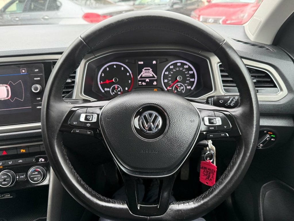 HP and PCP Finance available from 9.9% APR. Only 45000 miles and 2 owners from new! High Seated Petrol and ULEZ friendly. This T-Roc is finished in Urano grey with black cloth seats. It is fitted with Flat Bottom Leather Multifunction steering wheel, Dual zone climate control Air Con, Car Play, DAB Radio, Bluetooth, rear park assist with lane assist and rear camera, adaptive cruise control, LED day running lights, remote locking, electric windows and power fold mirrors, 17" alloy wheels, Space saver Spare wheel, 2 x USB aux ports and more. It comes with a documented service history done by VW and Independents at 4310/14550/24029/35628 and 45503 miles. The current MOT is April. We will supply the car with a new MOT if necessary and a 6 month RAC insured warranty, which can be extended along with 12 months Roadside assistance. Finance is available from 9.9% APR Subject to status and extended warranties are available. This petrol T Roc has a high specification, is exceptional throughout & has not been smoked in, is ULEZ friendly, has the high seated versatility and it drives superbly with no fault. 12V Socket in Centre Console in Storage , 17in Alloy Wheels - Kulmbach, 17in Alloy Wheels - Mayfield, 2x USB Connection - USB Charging Sockets, ABS - Anti-Lock Braking System, Adaptive Cruise Control, Airbags - Front Seat Side Impact, Alarm, Armrest - Front Centre, Automatic Dimming Interior Rear View Mir, Automatic Hazard Lights Activation Under, Automatic Leaving Home and Manual Coming, Black Grained Lower Door Protectors, Black Grained Wheel Arches, Body Coloured Bumpers with Silver Metall, Body Coloured Door Mirrors with Integrat, Body-Coloured Door Handles, Car-Net App-Connect, Chrome Trim on Radiator Grille - Upper a, Climate Control - 2Zone Electronic Air C, Composition Media System,