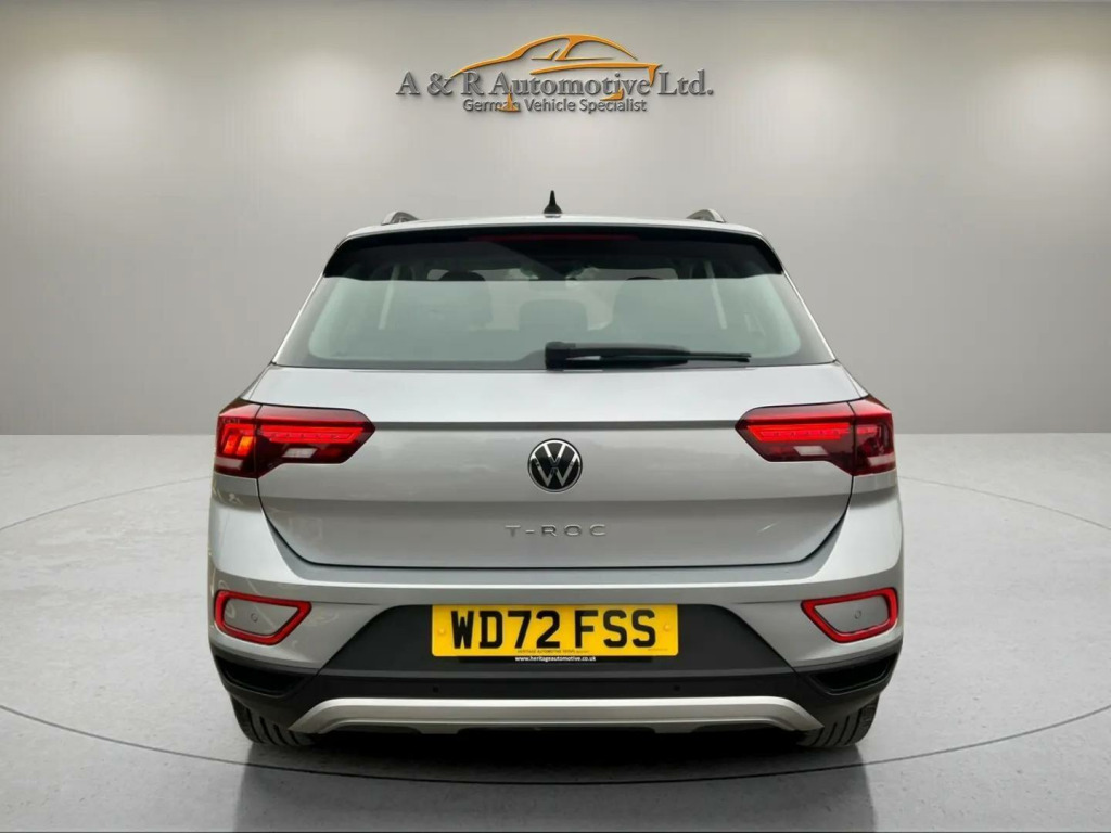 We are delighted to be selling this lovely 1 owner T-Roc in beautiful condition inside and out. It comes with a Full Service History and 2 keys. The first MOT isn't due until Febuary 18th 2026 and it also has manufactures Warranty until then.OUR SHOWROOM AND FORECOURT ARE NOW OPEN FOR VIEWINGS!WE ARE ALSO STILL OPERATING OUR VIDEO CALL VIEWING AND RESERVE AND COLLECT SERVICE IF REQUIRED. ALL  VEHICLES  COME  WITH  A  NEW MOT, VEHICLE INSPECTION & 3 MONTHS WARRANTY  VALID  THROUGHOUT  THE UK.All vehicles are HPI checked and clear, Part Exchanges Welcome, Credit and Debit cards accepted, Finance available  competitive rates. Viewing by appointment only, To arrange your viewing appointment please contact on either phone number or email at aandrautomotivegmail.comA & R, Just Nice People To Deal With. v socket in centre console, 16in alloy wheels - chester, 3 rear head restraints, 3-point seat belts - outer rear with ece label, abs - anti-lock braking system, air care climatronic air conditioning system with active combination filter and 2-zone temperature control, ambient lighting with logo projection, anti-theft alarm system with interior monitoring - backup horn and towing protection, anti-theft wheel bolts, automatic dimming interior rear view mirror, automatic headlight control with led separate daytime running lights and coming home-leaving home feature, bluetooth mobile phone interface, body coloured bumpers and radiator grille with chrome trim and front fog lamps with chrome bezel, curtain airbag system, dab+ - digital radio reception, decorative inserts - pewter matte - instrument panel and door panels at the front, digital cockpit - basic - 8in display, diversity antenna for fm reception, door and side trim panel cloth, driver alert system, driver assistance package, driver and front passenger airbag with front passenger airbag deactivation, driver and front passengers seat height adjustment, drivers under seat drawer, drivers and front passengers safety optimised head restraints, esc - electronic stability control - includes edl - electronic differential lock and asr - traction control - edtc - engine drag torque control and trailer stabilisation function, electronic parking brake with auto hold function, exterior mirror housing and door handles - body coloured, exterior mirrors - aspherical on driver side - convex on front passenger side, external - usb type c data sockets and charging sockets, front centre armrest, front comfort seats, front shock absorption, height-adjustable front three-point seat belts with tensioners, hill start assist, isofix child seat preparation, led headlights, led rear combination lamps, lane keeping system lane assist, leather gearshift handle, load-through provision with cupholder when folded down, lumbar support in front seats, non-folding front passenger seat backrest, park assist including parking sensors front and rear, power assisted steering - speed sensitive, power windows with comfort operation and circuit breaker, predictive pedestrian protection, preparation for we connect and we connect plus - 3 years, radio - ready 2 discover including streaming and internet, rain sensor, reading lights in front, rear exhaust tailpipe, rear fog light on one side and reversing lights on both sides, rear shock absorption - chassis with increased ride height, remote electrically foldable door mirrors - puddle lights and reverse activated passengers door mirror, roof rails - black, single-tone horn, steering wheel - multifunction - leather wrapped - multifunction with paddle shift, sun visors with illuminated vanity mirrors, tailgate-trunk lid release from outside, trims for alloy wheels, tyre mobility kit including compressor and sealing foam in lieu of spare wheel, tyre pressure loss indicator, variable boot floor - height adjustable and removable, warning sound and light for front and rear seat belts if unfastened, e-call emergency call service, privacy glass - rear side windows and rear window, 17in alloy wheels - johannesburg, life fabric - titanium black, carpet mats - front and rear