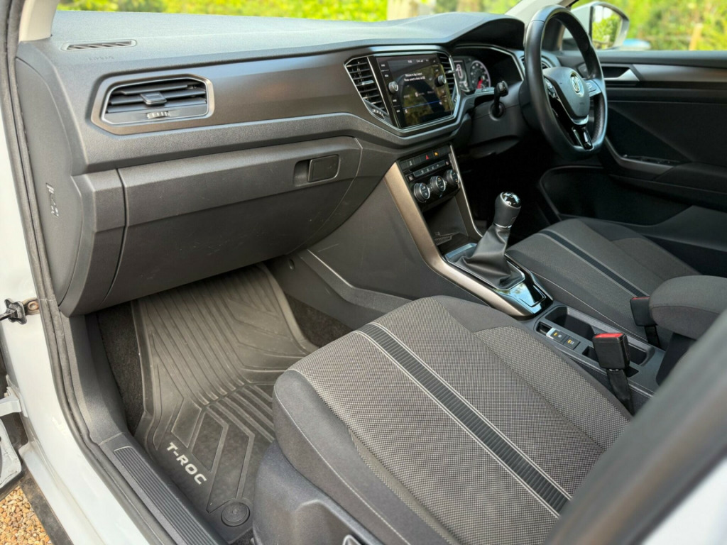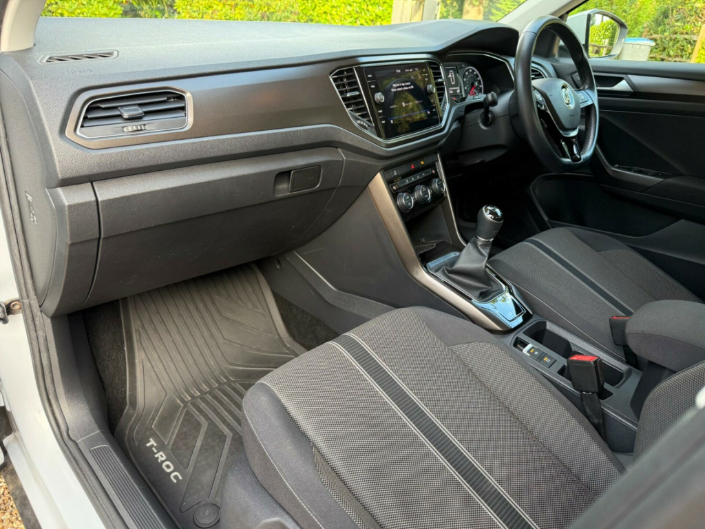 NOW RESERVED : We're thrilled to present this pristine 2018 Volkswagen T-Roc 1.0 TSI SE, finished in striking White Silver Metallic. With just 27,000 miles on the clock and only one previous owner from new, it's an outstanding example of this very sought after model. This vehicle comes with a Full Main Dealer Service History, last serviced in June 2025 at 26,509 miles, Mot June 2026, Extended Warranty, Two Remote Keys, HPi check report and all the relevant paperwork. Just Some of this cars Extra key features include: 18'' Arlo Alloy Wheels in Adamantium Silver - cost £525Electric Tailgate opening - cost £320Tinted Rear Windows - cost £220White Silver Metallic Paint - £575Other features include: Apple Car PlayClimate control Air ConditioningFront and Rear Parking SensorsComposition Media System.Electric Folding Mirrors.Lastly, this car also qualifies for the Volkswagen service plan offer, this is 2 years servicing for only £21.75 a month for 24 months. See https://service-plans.vwfs.co.uk/vw/the-plans for more details.All our vehicles are HPi checked with Gold Extended Parts and labour Warranties, Fully valeted and Mot. We also welcome your vehicle in Part Exchange.We are a family run business with over 35 years of experience in the motor industry and pride ourselves on delivering exceptional service and expertise.Viewings are available by appointment only, so please feel free to get in touch to arrange a convenient time for a viewing or test drive. For more information about this vehicle, or to discuss part exchange options, don't hesitate to call us, we're here to help and look forward to welcoming you Soon. in alloy wheels - arlo sterling silver, carpet mats - front and rear, electric tailgate, white silver metallic paint, 12v socket in centre console in storage area, 17in alloy wheels - kulmbach, 2x usb connection - usb charging sockets, abs - anti-lock braking system, adaptive cruise control, airbags - front seat side impact, alarm, armrest - front centre, automatic dimming interior rear view mirror, automatic hazard lights activation under emergency braking, automatic leaving home and manual coming home lighting function, black grained lower door protectors, body coloured bumpers with silver metallic underbody fascia, body coloured door mirrors with integrated indicators, body-coloured door handles, car-net app-connect, chrome trim on radiator grille - upper and lower, climate control - 2zone electronic air conditioning with automatic air recirculation and allergen filter, composition media system, cup holders - front x2, curtain airbag system, dark oak decorative inserts in dash and door panels, drivers and front passengers airbags with front passenger airbag deactivation switch, drivers and front passengers safety optimised head restraints, dusk sensor, esc - electronic stability control - includes edl - electronic differential lock and asr - traction control - edtc - engine drag torque control and trailer stabilisation function, electric windows - front and rear, electrically foldable door mirrors, electronic engine immobiliser, electronic parking brake with auto hold function, front assist - radar sensor controlled distance monitoring system - city emergency braking system and predictive pedestrian protection, front comfort seats with height adjustment, front seat back storage pockets, glovebox, halogen clear headlights - range adjustable - led daytime running lights, heated rear window, height and reach adjustable steering wheel, height-adjustable front three-point seat belts with tensioners, high level 3rd brake light, instrument lighting - white adjustable panel illumination, interior lighting delay, isofix child seat preparation - easy-fit - for 2 outer rear seats, led rear number plate lights, lane assist, leather trimmed three spoke multifunction steering wheel and gear knob, load lashing points x4 in luggage compartment, load-through provision with cupholder when folded down, luggage compartment cover - removable, luggage compartment light, multifunction computer, parking sensors - front and rear, power assisted steering - speed sensitive, rain sensor, reading lights - front x2, rear wash wipe with intermittent wipe, remote central locking with 2 remote folding keys, remote tailgate unlocking via key fob, rigid safety cell with front and rear crumple zones, roof rails - black, split folding rear seat back with folding centre armrest, steel space saver spare wheel, storage compartment in drivers and front passenger door for 1.5 litre bottle, storage compartment in rear doors, storage compartments in luggage area - left and right, three rear 3-point seat belts, three rear head restraints, tyre pressure loss indicator, under seat drawers - drivers, vanity mirrors - illuminated, warning - lights on - buzzer, warning sound and light for doors and tailgate if open, warning sound and light for front and rear seat belts if unfastened, windscreen wiper with intermittent wipe
