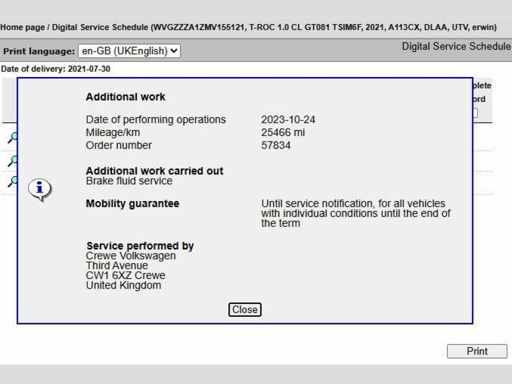 Boasting a Full VW Main Dealership Service History and having had Only One Owner from new, this 2021 Volkswagen T-Roc TSI SE presents a superb ownership proposition. Powered by an efficient 1.0 litre Euro 6 petrol engine, this T-Roc is equipped with 17 inch Kulmbach Adamantium Silver alloy wheels, automatic dusk and halogen clear headlights with LED daytime running lights, and front and rear parking sensors for effortless manoeuvring. The Ready 2 Discover infotainment system with Bluetooth connectivity ensures you stay connected on every journey.This T-Roc offers excellent value, highlighted by its impressive fuel economy of 46 miles per gallon, indicating it is more economical than many similar vehicles. Furthermore, its low CO2 emissions and low insurance group rating mean that running costs are kept to a minimum, making it a sensible choice for many drivers. A clear vehicle history check and 12 months MOT provided on purchase, alongside a 3 month warranty, offer complete peace of mind. The last service was completed at 45515 miles.. 17in Alloy Wheels - Kulmbach, 2x USB-C Connection - USB Carging Socket in Centre Console, ABS - Anti-Lock Braking System, Adaptive Cruise Control, Airbags - Front Seat Side Impact, Alarm, Armrest - Front Centre, Automatic Dimming Interior Rear View Mirror, Automatic Hazard Lights Activation Under Emergency Braking, Automatic Leaving Home and Manual Coming Home Lighting Function, Black Grained Lower Door Protectors, Black Grained Wheel Arches, Body Coloured Bumpers with Silver Metallic Underbody Fascia, Body Coloured Door Mirrors with Integrated Indicators, Body-Coloured Door Handles, Chrome Trim on Radiator Grille - Upper and Lower, Climate Control - 2Zone Electronic Air Conditioning with Automatic Air Recirculation and Allergen Filter, Cup Holders - Front x2, Curtain Airbag System, Decorative Inserts - Limestone Grey, Drivers and Front Passengers Airbags with Front Passenger Airbag Deactivation Switch, Drivers and Front Passengers Safety Optimised Head Restraints, Dusk Sensor, ESC - Electronic Stability Control - Includes EDL - Electronic Differential Lock and ASR - Traction Control - EDTC - Engine Drag Torque Control and Trailer Stabilisation Function, Electric Windows - Front and Rear, Electrically Foldable Door Mirrors, Electronic Engine Immobiliser, Electronic Parking Brake with Auto Hold Function, Front Assist - Radar Sensor Controlled Distance Monitoring System - City Emergency Braking System and Predictive Pedestrian Protection, Front Comfort Seats with Height Adjustment, Front Seat Back Storage Pockets, Galvanised Body, Glovebox, Halogen Clear Headlights - Range Adjustable - LED Daytime Running Lights, Heated Rear Window, Height and Reach Adjustable Steering Wheel, Height-Adjustable Front Three-Point Seat Belts with Tensioners, High Level 3rd Brake Light, Instrument Lighting - White Adjustable Panel Illumination, Interior Lighting Delay, Isofix Child Seat Preparation - Easy-Fit - For 2 Outer Rear Seats, LED Rear Number Plate Lights, Lane Assist, Leather Trimmed Three Spoke Multifunction Steering Wheel and Gear Knob, Load Lashing Points x4 in Luggage Compartment, Load-Through Provision with Cupholder When Folded Down, Luggage Compartment Cover - Removable, Luggage Compartment Light, Multifunction Computer, Parking Sensors - Front and Rear, Power Assisted Steering - Speed Sensitive, Premium USB Cable, Rain Sensor, Reading Lights - Front x2, Ready 2 Discover Infotainment System, Rear Wash Wipe with Intermittent Wipe, Remote Central Locking with 2 Remote Folding Keys, Remote Tailgate Unlocking via Key Fob, Rigid Safety Cell with Front and Rear Crumple Zones, Roof Rails - Black, Split Folding Rear Seat Back with Folding Centre Armrest, Storage Compartment in Drivers and Front Passenger Door for 1.5 Litre Bottle, Storage Compartment in Rear Doors, Storage Compartments in Luggage Area - Left and Right, Three Rear 3-Point Seat Belts, Three Rear Head Restraints, Tyre Mobility Kit, Tyre Pressure Loss Indicator, Under Seat Drawers - Drivers, Vanity Mirrors - Illuminated, Voice Activation, Warning - Lights On - Buzzer, Warning Sound and Light for Doors and Tailgate if Open, Warning Sound and Light for Front and Rear Seat Belts if Unfastened, We Connect Preparation, Windscreen Wiper with Intermittent Wipe, Wireless App Connect, VW Light and Vision pack, USB-C interface and USB charging socket,, 17in Alloy Wheels - Kulmbach Adamantium Silver. Full dealership history