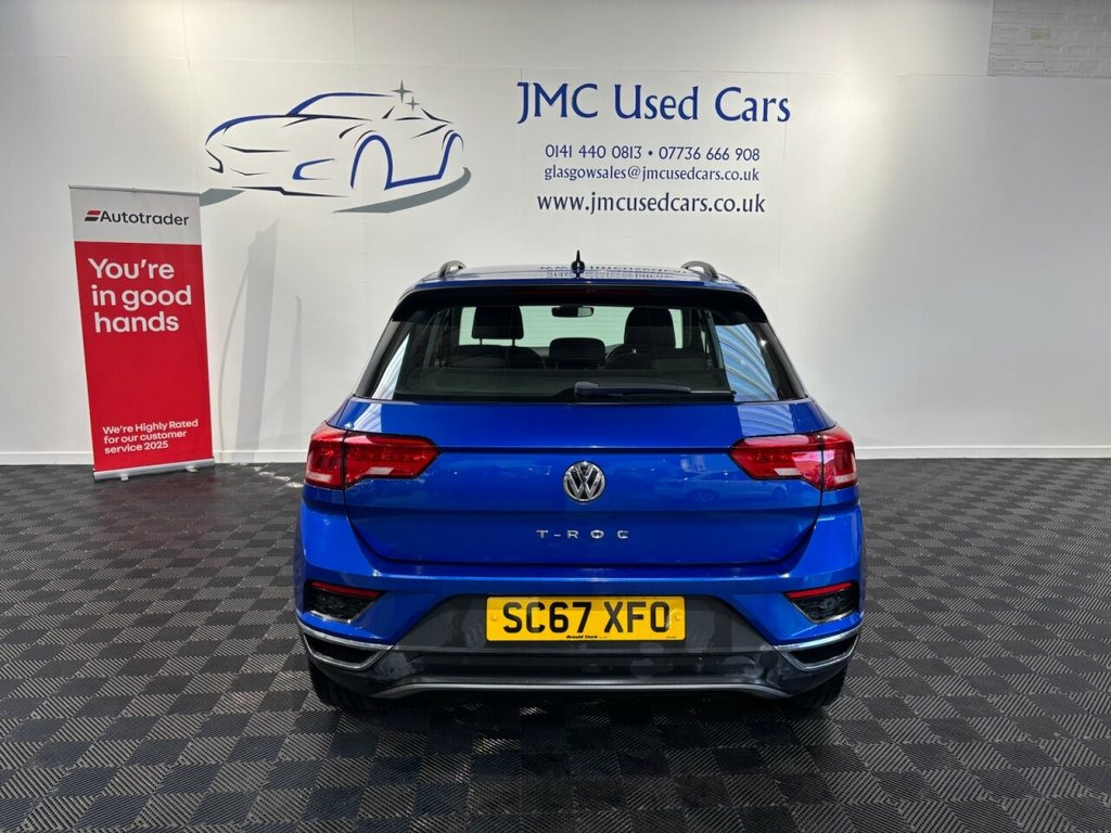Overall: if you want a stylish, efficient and fairly comfortable small SUV for everyday driving — especially around town or commuting — the T-Roc 1.0 TSI SE is a strong and practical choice. If you frequently travel with passengers or need more power, though, you might prefer a larger-engine alternative. Award-Winning Family Business | Premium Customer Service & Aftercare Located just off Junction 24 of the M8 in Glasgow, we offer an impressive range of quality used cars, all displayed in our indoor showroom. Each vehicle is meticulously prepared to meet our high standards, ensuring you're driving away with complete confidence. We welcome part exchanges and offer tailored finance and warranty packages to suit every budget. Need help choosing the right car? Our team is here to provide expert advice and support. Can't make it in person? No problem! We offer live video walkarounds of our cars upon request, and you can complete all finance agreements securely online. For more details or to arrange a viewing, contact Martin today. Atlantic Blue, Roof Rails - Silver Anodised, 12V Socket in Centre Console in Storage , 17in Alloy Wheels - Kulmbach, 2x USB Connection - USB Charging Sockets, ABS - Anti-Lock Braking System, Adaptive Cruise Control, Airbags - Front Seat Side Impact, Alarm, Armrest - Front Centre, Automatic Dimming Interior Rear View Mir, Automatic Hazard Lights Activation Under, Automatic Leaving Home and Manual Coming, Black Grained Lower Door Protectors, Body Coloured Bumpers with Silver Metall, Body Coloured Door Mirrors with Integrat, Body-Coloured Door Handles, Car-Net App-Connect, Chrome Trim on Radiator Grille - Upper a, Climate Control - 2Zone Electronic Air C, Composition Media System, Cup Holders -