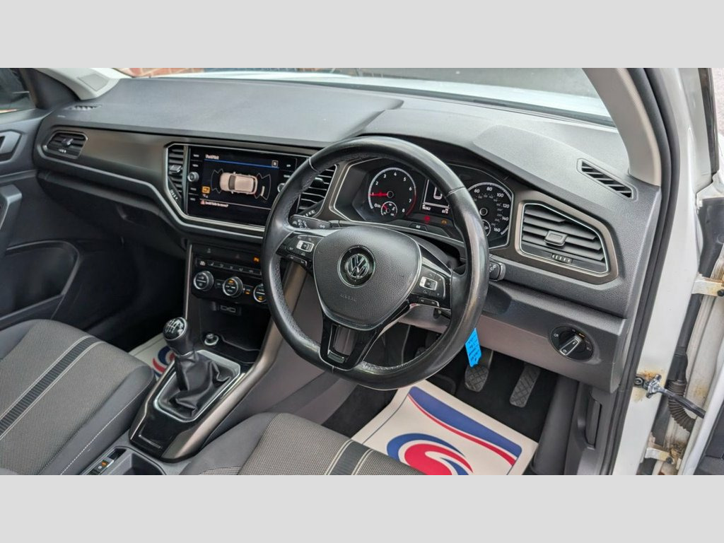 THIS 2018 / 18 ONE OWNER FROM NEW, VOLKSWAGEN T-ROC COMES WITH £2030 WORTH OF EXTRAS INCLUDING PANORAMIC ROOF, 18" MONTEGO BAY ALLOYS, WINTER PACK AND NON METALLIC PURE WHITE PAINT!! AS STANDARD, IT COMES WITH ADAPTIVE CRUISE CONTROL, PARKING SENSORS, DUAL ZONE CLIMATE CONTROL, APPLE PLAY/ANDORID AUTO, LANE ASSIST, HEATED SEATS, POWER MIRRORS, AUTO LIGHTS AND MUCH MORE!! IT COMES WITH FANTASTIC SERVICE HISTORY, BEING SERVICED AT 10852, 20443, 29499, 38908, 49088, 59137, 69081, 78876, 89169 AND JUST NOW BY US AT 96301!! FULLY PREPARED AND READY TO DRIVE AWAY WITHIN THE HOUR! 3 MONTHS PARTS AND LABOUR WARRANTY SUBJECT TO CRITERIA. FINANCE AVAILABLE SUBJECT TO STATUS. BOOK YOUR APPOINTMENT TODAY BY GIVING US A CALL ON 01226 779190. Panoramic Sunroof, 18in Alloy Wheels - Montego Bay, Adaptive Cruise Control, Climate Control - 2Zone Electronic Air C, Parking Sensors - Front and Rear, Composition Media System, Electrically Foldable Door Mirrors, Lane Assist, Winter Pack, Pure white - non metallic, Tracks 4 Cloth - Dark Oak-Ceramique with, Electric Windows - Front and Rear