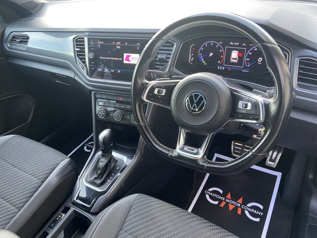 21 Plate Volkswagen T-Roc 1.5TSi R-Line DSG 150ps 5dr, Finished in Indium Grey Metallic, Comes with Excellent Factory Spec Including Body Coloured Bumpers, 19 Diamond Cut Alloys, Tinted Windows, Silver Roof Bars, Boot Spoiler, LED Lights, Remote Locking, R-Line Sports Seats, Heated Seats, Parking Sensors, Touch Screen Media System, Satellite Navigation, AppleCarplay, Android Auto, Electric Windows, Electric Folding Mirrors, A/C, Digital Climate Control, Automatic Lights, Cruise Control, Adaptive Cruise, Lane Assist, Driving Modes, Bluetooth, Trip Computer, Lovely Well Cared For Example, Comes with Full Service History, Just had a Fresh Service and New Brake Pads, Just the 1 Previous Owner From New, Vehicle Drives Superb, Beat The Main Dealer Price at Just £18,999.