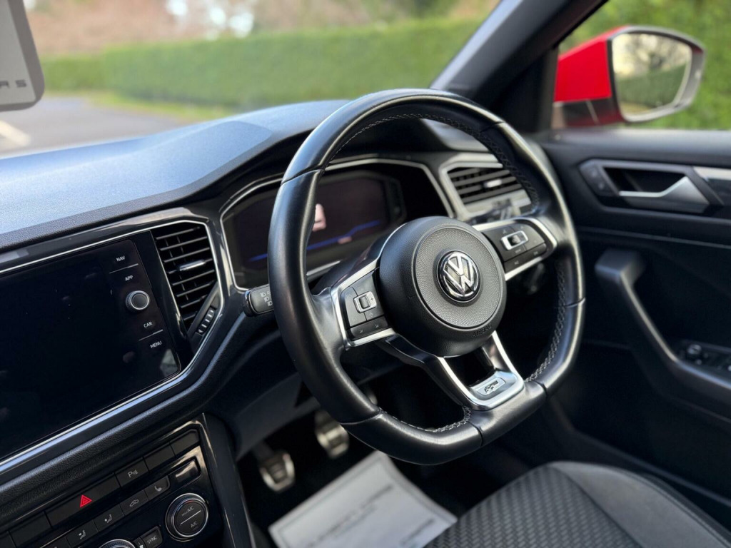 This 2018 Volkswagen T-Roc TSI EVO R-Line boasts a full dealership service history and a clear vehicle history check, offering you peace of mind. This stylish R-Line model is powered by an efficient 1.5 litre Euro 6 petrol engine, known for its low CO2 emissions. It comes with a 3 month warranty and a 12 month MOT provided on purchase. Notable features include front and rear parking sensors with parking assistance, 2Zone electronic climate control with automatic air recirculation and an allergen filter, and automatic LED headlights that activate with the dusk sensor. For added comfort during colder months, it includes a winter pack with heated seats. The performance of this T-Roc is also a key highlight, with an impressive 0-62mph acceleration time of just 8.4 seconds. These features combined indicate how this vehicle offers a superior driving experience compared to other similar models on the market.
