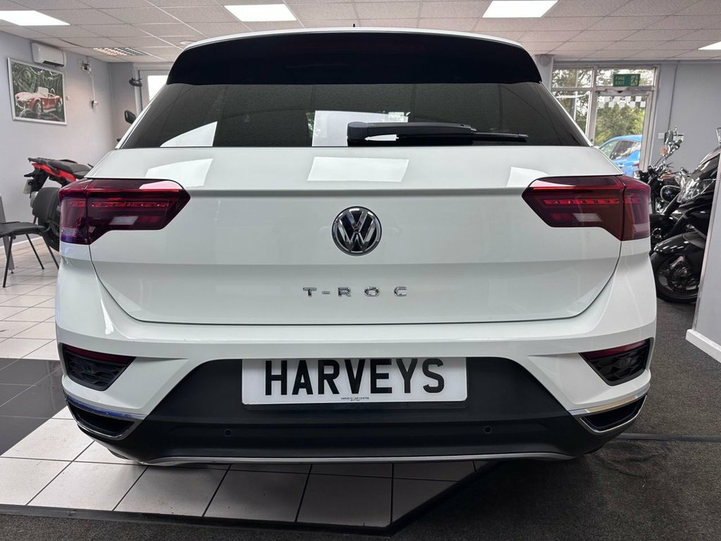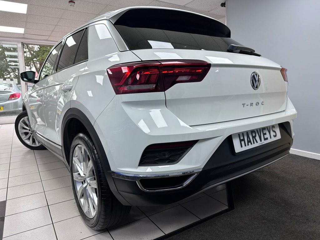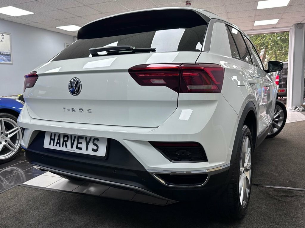 FULL VW SERVICE RECORD. MOT MAT 2026. This 2019 Volkswagen T-Roc TSI EVO R-Line boasts exceptionally low mileage for its age, having covered just 31,000 miles. As a Euro 6 compliant vehicle, it features a 1.5 litre Turbocharged petrol engine and is presented in the sporty R-Line trim. This particular model comes equipped with keyless entry and start for ultimate convenience. For enhanced safety and awareness, it also benefits from Side Assist Plus with Rear Traffic Alert and the Driver Assistance Pack Plus, both incorporating blind spot assistance. Equipped with many expensive factory options like Dynamic Chassis control. Stay connected at all times with Apple CarPlay/ Android Auto and Sat Nav so you keep on track. The T-Roc R-Line offers a compelling blend of performance and efficiency, highlighted by its impressive 0-60mph acceleration time of just 8.6 seconds. Its low CO2 emissions further underscore its efficiency, making it a more economical choice. These features collectively indicate that this Volkswagen T-Roc is a well-appointed and well maintained example, offering a superior driving experience compared to many similar vehicles. A well reviewed choice. This example has been imported from Cyprus and has been exclusively maintained by Volkswagen Main Dealers with no expense spared. 12V Socket in Centre Console in Storage , 19in Alloy Wheels - Suzuka, 2x USB Connection - USB Charging Sockets, ABS - Anti-Lock Braking System, Active Info Display, Adaptive Cruise Control, Airbags - Front Seat Side Impact, Alarm, Aluminium - Pedals, Ambient Lighting in Front Footwell and L, Armrest - Front Centre, Automatic Dimming Interior Rear View Mir, Automatic Hazard Lights Activation Under, Automatic Leaving Home and Manual Coming, Black Grained Lower Door Protectors, Black Roofling and Sun Visors, Body Coloured Bumpers with Silver Metall, Body Coloured Door Mirrors with Integrat, Body Coloured Rear Spoiler, Body-Coloured Door Handles, Car-Net App-Connect, Car-Net Guide and Inform - 3