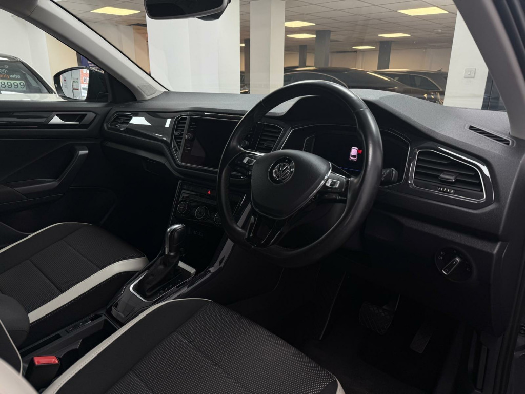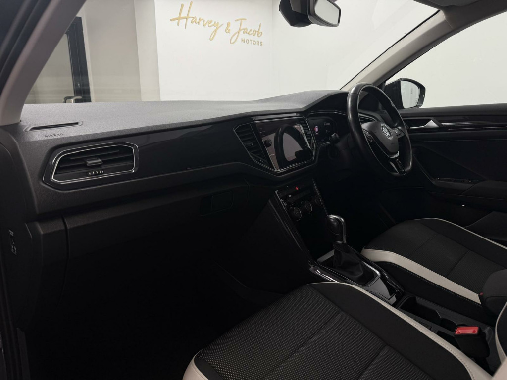 This 2019 Volkswagen T-Roc TSI EVO SEL is a superb example of a well maintained compact SUV. It boasts a responsive 1.5 litre petrol engine, meeting Euro 6 emission standards, and benefits from a low CO2 emission rating. The SEL trim level ensures a high specification, and this particular model includes the desirable Driver Assistance Pack Plus, featuring Blind Spot Assistance, alongside Park Assist for effortless manoeuvring. Connectivity is seamless thanks to Car-Net App-Connect, offering Android Auto and Apple CarPlay integration, all managed through the Composition Media System with Bluetooth.Experience impressive performance with a swift 0-62mph acceleration time of just 8.4 seconds, demonstrating its dynamic capability. The inclusion of front and rear parking sensors, along with parking assistance, further enhances its user friendly nature. These features collectively highlight how this Volkswagen T-Roc offers a refined and technologically advanced driving experience, setting it apart from other vehicles in its class. rk assist, driver assistance pack plus, 12v socket in centre console in storage area, 18in alloy wheels - arlo sterling silver, 2x usb connection - usb charging sockets, abs - anti-lock braking system, active info display, adaptive cruise control, airbags - front seat side impact, alarm, ambient lighting in front footwell and light stripes below trim in front doors, armrest - front centre, automatic dimming interior rear view mirror, automatic hazard lights activation under emergency braking, automatic leaving home and manual coming home lighting function, black grained lower door protectors, black grained wheel arches, body coloured bumpers with silver metallic underbody fascia, body coloured door mirrors with integrated indicators, body-coloured door handles, car-net app-connect, car-net guide and inform (3 year subscription from new), car-net security and service including ecall, caribou grey decorative inserts in dash and door panels, chrome effect trapezoid dummy exhaust tailpipe surrounds - left and right, chrome trim on radiator grille - upper and lower, climate control - 2zone electronic air conditioning with automatic air recirculation and allergen filter, composition media system, cup holders - front x2, curtain airbag system, discover navigation touch-screen navigation-infotainment system with car-net guide and inform, driver alert system, driver profile choices, drivers and front passengers airbags with front passenger airbag deactivation switch, drivers and front passengers safety optimised head restraints, dusk sensor, esc - electronic stability control - includes edl - electronic differential lock and asr - traction control - edtc - engine drag torque control and trailer stabilisation function, electric windows - front and rear, electrically foldable door mirrors, electronic engine immobiliser, electronic parking brake with auto hold function, footwell illumination - front, front assist - radar sensor controlled distance monitoring system - city emergency braking system and predictive pedestrian protection, front fog lights with static cornering function, front seat back storage pockets, front sport seats with height adjustment, galvanised body, glovebox, heated rear window, height and reach adjustable steering wheel, height-adjustable front three-point seat belts with tensioners, high level 3rd brake light, instrument lighting - white adjustable panel illumination, interior lighting delay, isofix child seat preparation - easy-fit - for 2 outer rear seats, led darkened rear light clusters, led headlights, led rear number plate lights, lane assist, leather trimmed three spoke multifunction steering wheel and gear knob, load lashing points x4 in luggage compartment, load-through provision with cupholder when folded down, luggage compartment cover - removable, luggage compartment light, multifunction computer, parking sensors - front and rear, power assisted steering - speed sensitive, premium usb cable, rain sensor, reading lights - front and rear x2 incorporating led technology, rear tinted glass - b pillar backwards - approx 65 percent tinted, rear wash wipe with intermittent wipe, remote central locking with 2 remote folding keys, remote tailgate unlocking via key fob, rigid safety cell with front and rear crumple zones, roof rails - silver anodised, space and weight saving spare wheel, split folding rear seat back with folding centre armrest, storage compartment in drivers and front passenger door for 1.5 litre bottle, storage compartment in rear doors, storage compartments in luggage area - left and right, three rear 3-point seat belts, three rear head restraints, tyre pressure loss indicator, under seat drawers - drivers, vanity mirrors - illuminated, voice activation, warning - lights on - buzzer, warning sound and light for doors and tailgate if open, warning sound and light for front and rear seat belts if unfastened, windscreen wiper with intermittent wipe