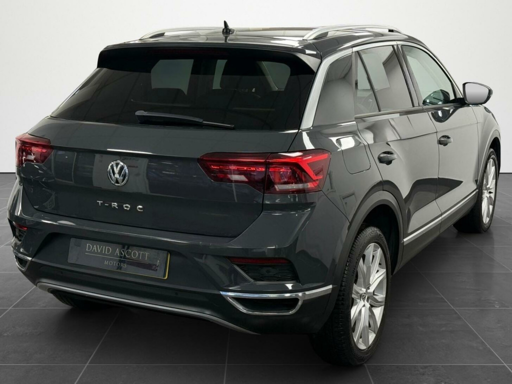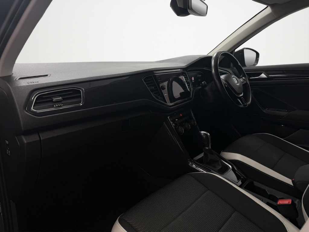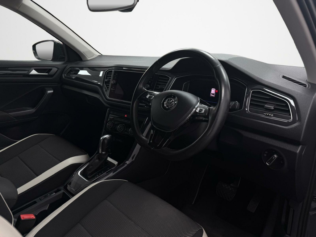 This 2019 Volkswagen T-Roc TSI EVO SEL is a well maintained example of this popular compact SUV. It features a 1.5 litre petrol engine, meeting Euro 6 emissions standards, and comes with the desirable SEL trim. Inside, you'll find a 2Zone electronic climate control system with automatic air recirculation and an allergen filter, ensuring a comfortable cabin environment. The Composition Media system includes Bluetooth connectivity for seamless phone integration, and the dusk sensor automatically activates the headlights, adding to the convenience.This T-Roc offers an impressive fuel economy of 51 miles per gallon, which is better than many similar vehicles. Its low CO2 emissions also contribute to its appeal. For those who enjoy a responsive drive, it accelerates from 0 to 62 miles per hour in just 8.4 seconds, demonstrating a good balance of performance and efficiency. iver assistance pack plus, park assist, vienna leather sport pack - quartz-ceramique with caribou grey, 16in alloy wheels - chester, abs - anti-lock braking system, airbags - front seat side impact, automatic dimming interior rear view mirror, automatic hazard lights activation under emergency braking, automatic leaving home and manual coming home lighting function, black grained lower door protectors, black grained wheel arches, black matt decorative inserts in dash and centre console, body coloured bumpers and door handles, body coloured door mirrors with integrated indicators, chrome trim on radiator grille - upper and lower, climate control - 2zone electronic air conditioning with automatic air recirculation and allergen filter, composition media system, cup holders - front x2, curtain airbag system, drivers and front passengers airbags with front passenger airbag deactivation switch, drivers and front passengers safety optimised head restraints, dusk sensor, esc - electronic stability control - includes edl - electronic differential lock and asr - traction control - edtc - engine drag torque control and trailer stabilisation function, electric windows - front and rear, electrically heated and adjustable door mirrors, electronic engine immobiliser, electronic parking brake with auto hold function, front assist - radar sensor controlled distance monitoring system - city emergency braking system and predictive pedestrian protection, galvanised body, glovebox, halogen clear headlights - range adjustable - led daytime running lights, heated rear window, height and reach adjustable steering wheel, height-adjustable front three-point seat belts with tensioners, high level 3rd brake light, instrument lighting - white adjustable panel illumination, interior lighting delay, isofix child seat preparation - easy-fit - for 2 outer rear seats, led rear number plate lights, lane assist, load lashing points x4 in luggage compartment, luggage compartment cover - removable, luggage compartment light, manual height adjustment for front seats, multifunction computer, power assisted steering - speed sensitive, premium usb cable, rain sensor, reading lights - front x2, rear wash wipe with intermittent wipe, remote central locking with 2 remote folding keys, remote tailgate unlocking via key fob, rigid safety cell with front and rear crumple zones, seats - split folding rear, steel space saver spare wheel, storage compartment in drivers and front passenger door for 1.5 litre bottle, storage compartment in rear doors, storage compartments in luggage area - left and right, three rear 3-point seat belts, three rear head restraints, three-spoke steering wheel, tyre pressure loss indicator, vanity mirrors - illuminated, warning - lights on - buzzer, warning sound and light for doors and tailgate if open, warning sound and light for front and rear seat belts if unfastened, windscreen wiper with intermittent wipe, discover navigation touch-screen navigation-infotainment system with car-net guide and inform, rear tinted glass - b pillar backwards - approx 65 percent tinted