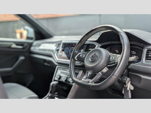 THIS FANTASTIC EXAMPLE OF A VOLKSWAGEN T-ROC R-LINE COMES WITH A GREAT SPECIFICATION INCLUING - 'White silver' metallic paintwork - 19" alloy wheels - Titan black and carbon flag cloth interior - Shadow steel interior trims - Digital driving display - Satellite navigation - Interior illumination strips - Wireless mobile connect - Apple / Android CarPlay - Heated seats - Cruise control - Automatic transmission - Optional brake caliper painting available - Optional gloss black mirrors - Optional exterior de-chrome - Optional rear privacy - Optional one year extended warranty available - This vehicle is subject to a £149 peace of mind fee Steel Space Saver Spare Wheel, 19in Alloy Wheels - Suzuka, ABS - Anti-Lock Braking System, Adaptive Cruise Control, Airbags - Front Seat Side Impact, Alarm, Aluminium - Pedals, Ambient Lighting in Front Footwell and L, Armrest - Front Centre, Automatic Dimming Interior Rear View Mir, Automatic Hazard Lights Activation Under, Automatic Leaving Home and Manual Coming, Black Grained Lower Door Protectors, Black Roofling and Sun Visors, Body Coloured Bumpers with Silver Metall, Body Coloured Door Mirrors with Integrat, Body Coloured Rear Spoiler, Body-Coloured Door Handles, Chrome Effect Trapezoid Dummy Exhaust Ta, Chrome Trim on Radiator Grille - Upper a, Climate Control - 2Zone Electronic Air