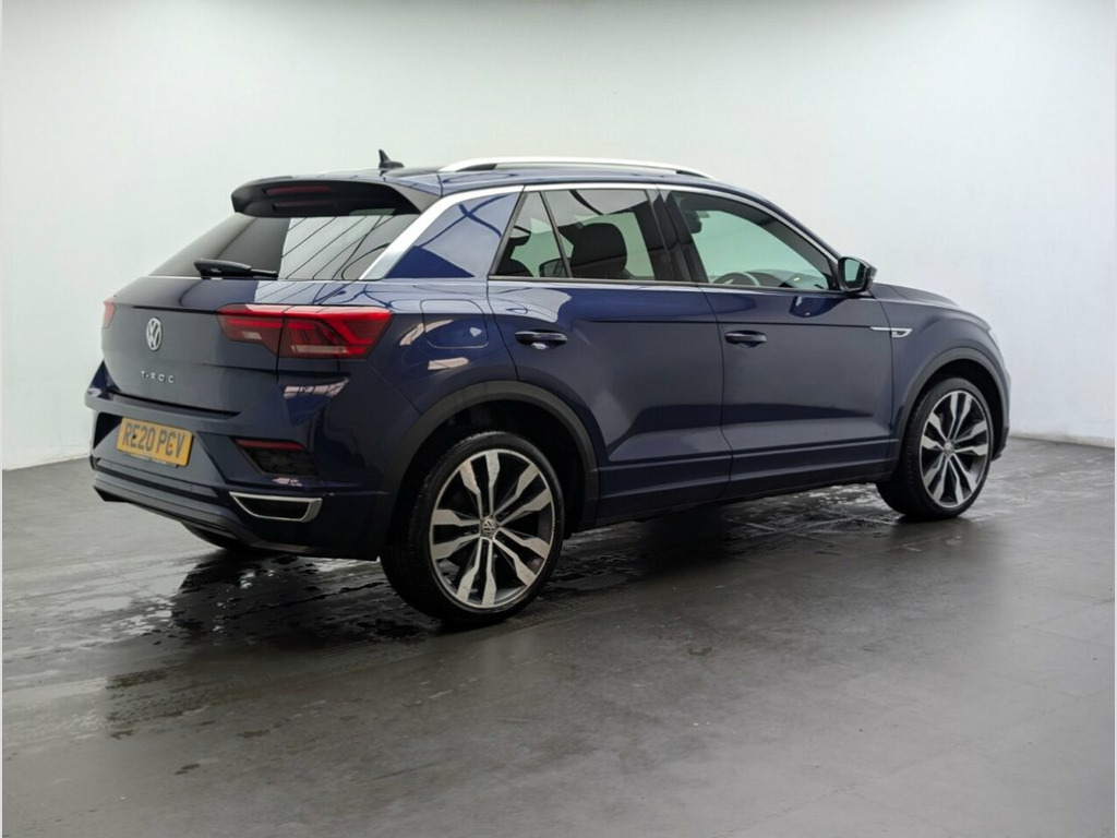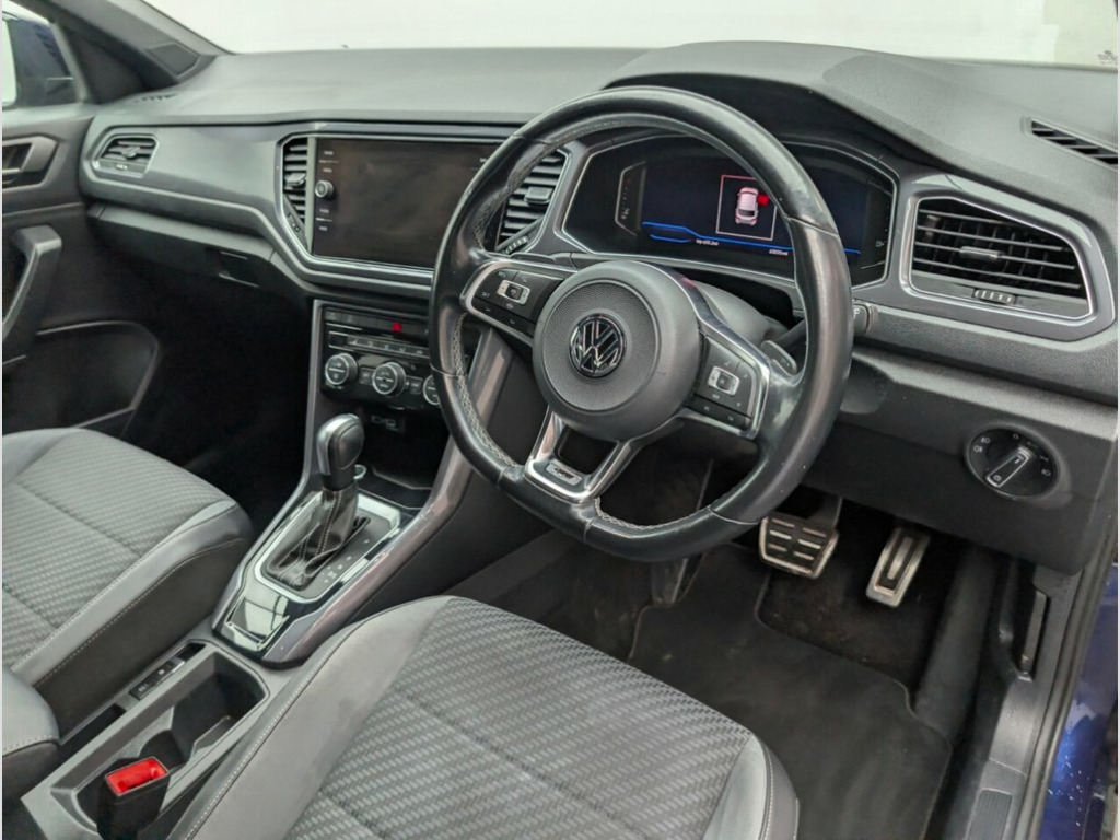 19" alloys, Navigation, Heated seats, Parking sensors and Cruise control. 5 services - last service done 21/01/26 . This 2020 Volkswagen T-Roc TSI EVO R-Line offers excellent peace of mind with its MOT valid until June 2026. This stylish R-Line model is equipped with a responsive 1.5 litre petrol engine, meeting Euro 6 emissions standards. You'll appreciate the convenience of automatic headlights activated by a dusk sensor, along with front and rear parking sensors to assist with manoeuvring. For comfortable journeys, it features adaptive cruise control, allowing you to maintain a set speed effortlessly, and a 2Zone electronic climate control system with an allergen filter to ensure a pleasant cabin environment. The winter pack adds further comfort with heated seats. This Volkswagen T-Roc stands out with its impressive 0-60mph acceleration time of just 8.6 seconds, demonstrating its spirited performance. Furthermore, its placement in a low insurance group indicates that running costs are kept competitive, making it an attractive option for many drivers. These highlights, combined with its comprehensive feature set, position this T-Roc as a compelling choice within its class. 12V Socket in Centre Console in Storage , 19in Alloy Wheels - Suzuka, 2x USB Connection - USB Charging Sockets, ABS - Anti-Lock Braking System, Active Info Display, Adaptive Cruise Control, Airbags - Front Seat Side Impact, Alarm, Aluminium - Pedals, Ambient Lighting in Front Footwell and L, Armrest - Front Centre, Automatic Dimming Interior Rear View Mir, Automatic Hazard Lights Activation Under, Automatic Leaving Home and Manual Coming, Black Grained Lower Door Protectors, Black Roofling and Sun Visors, Body Coloured Bumpers with Silver Metall, Body Coloured Door Mirrors with Integrat, Body Coloured Rear Spoiler, Body-Coloured Door Handles, Car-Net App-Connect, Car-Net Guide and Inform (3