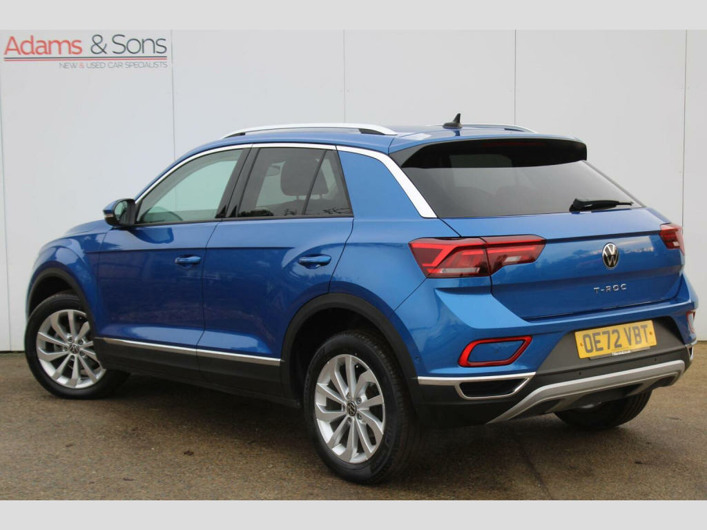 Fantastic condition throughout of this well equipped facelift 2022 (72 plate registered) Volkswagen T-Roc 1.5 TSI Style DSG automatic finished in desirable Ravenna Blue against white suede over grey cloth interior. This low mileage example includes both VW Key fobs, a fully documented Volkswagen main dealer service history and original owners manuals. Specification includes; Satellite navigation, Apple car play with Andriod Auto, DAB digital radio, Bluetooth telephone, front and rear parking sensors with optical view, adaptive cruise control, automatic LED lights/wipers and media interface. Fantastic compact SUV with great look and Volkswagen refinement! Low rate HP/PCP funding plans available upon request (subject to applicant and balance). Here at Adams and sons we do not charge any dealer administration fees and pride ourselves on paramount customer service. All our cars are price checked daily to ensure you get the right car at the right price- Established business since 1932. Adams & Sons make every effort to ensure vehicle details on this listing are correct. However, the vehicle specifications can sometimes differ from that shown. Please satisfy yourself that a vehicle has a specific feature that is important to you before purchasing. Our staff will be happy to assist you.