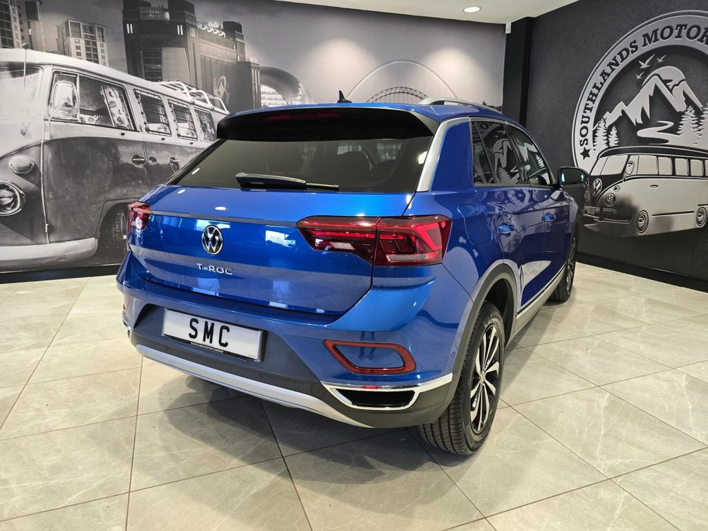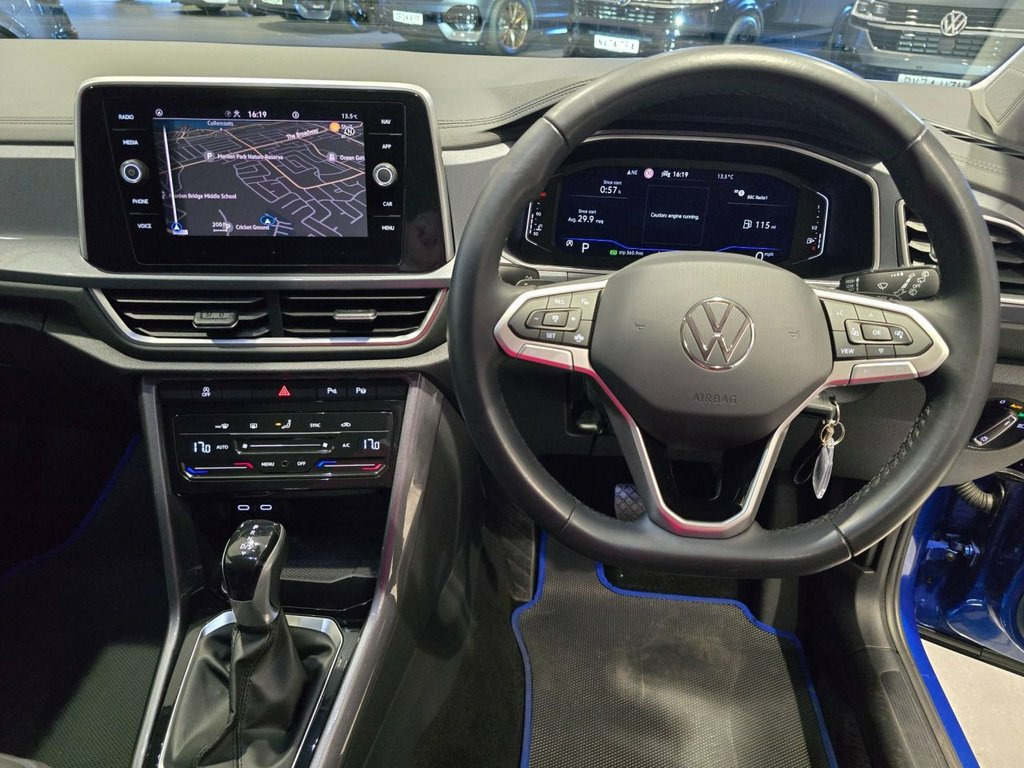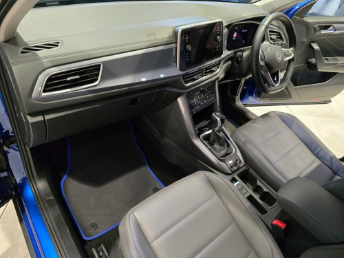 The 2022 Volkswagen T-Roc 1.5 TSI Style is a striking compact SUV that blends dynamic performance with premium comfort and cutting-edge technology. Powered by a refined 1.5-litre TSI petrol engine delivering 150 PS, this model offers a smooth and responsive driving experience, complemented by a DSG automatic gearbox for effortless gear changes. Designed to meet Euro 6 emissions standards, it delivers excellent efficiency and low running costs, making it a practical choice for both city commuting and long-distance journeys. The T-Roc's bold exterior styling features a confident front grille, sharp LED headlights, and stylish 17-inch alloy wheels, giving it a modern, sporty presence on the road. Inside, the cabin combines Volkswagen's renowned build quality with a sophisticated design. The Style trim includes high-quality materials, ambient interior lighting, and supportive seats, ensuring a comfortable and enjoyable ride for all passengers. Technology is at the forefront with a Digital Cockpit display, an intuitive infotainment system with smartphone integration (Apple CarPlay/Android Auto), and advanced driver-assistance features. Safety is enhanced by systems such as Adaptive Cruise Control, Front Assist, and Lane Assist, providing peace of mind on every journey. Practicality is equally impressive, with generous interior space, flexible rear seating, and a versatile boot capacity, making it ideal for family life or active lifestyles. Stylish, efficient, and wel 17in Alloy Wheels - Johannesburg - Black, Discover Pro Navigation System including, Ravenna Blue