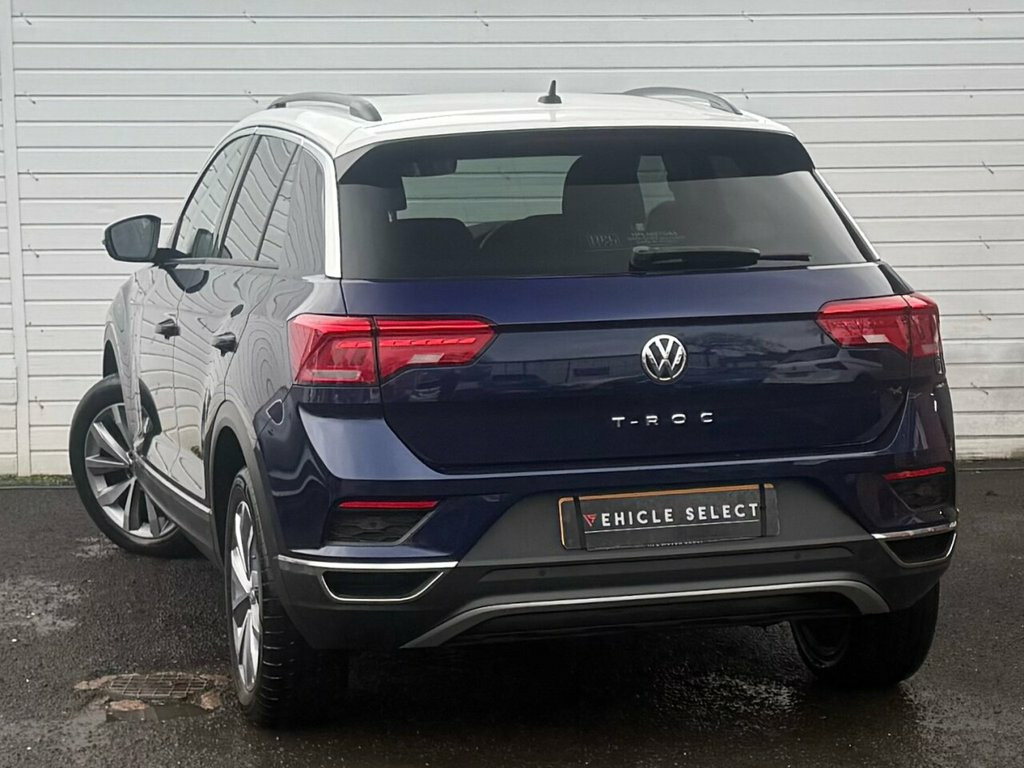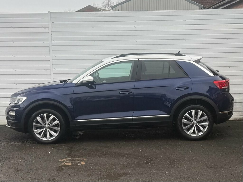 We are pleased to offer this 2019 Volkswagen T-Roc 1.6 TDI Design SUV, a superb example that has been very well looked after and drives exactly as it should. Finished in the striking Ravenna Blue metallic paint with a contrasting Pure White roof, this T-Roc really stands out on the road. The car benefits from a full service history, and for added peace of mind the cambelt and water pump have already been replaced. It is lovely and clean inside and out and clearly reflects careful ownership. Specification is excellent and includes 17 inch alloy wheels, adaptive cruise control, virtual cockpit, satellite navigation, DAB digital radio, Apple CarPlay, Android Auto and MirrorLink, along with ambient interior lighting and two-zone climate control. Comfort and practicality are enhanced by a front centre armrest, twin cupholders, front comfort seats with height adjustment, leather multifunction steering wheel, height and reach adjustable steering column, electric windows front and rear, electrically folding door mirrors, rain and light sensors, USB input, automatic hold handbrake, ISOFIX child seat mounting points and privacy glass, among many other features. This T-Roc offers excellent fuel economy, low running costs and strong road presence, making it an ideal choice for both family use and longer journeys. The Euro 6 diesel engine ensures it is ULEZ compliant and ready for modern driving requirements. HPI clear. Part exchange welcome. Viewing is highly recommended. Please cont Ravenna Blue with Pure White Roof, 12V Socket in Centre Console in Storage , 17in Alloy Wheels - Mayfield, 2x USB Connection - USB Charging Sockets, ABS - Anti-Lock Braking System, Adaptive Cruise Control, Airbags - Front Seat Side Impact, Alarm, Ambient Lighting in Front Footwell and L, Armrest - Front Centre, Automatic Dimming Interior Rear View Mir, Automatic Hazard Lights Activation Under, Automatic Leaving Home and Manual Coming, Black Grained Lower Door Protectors, Black Grained Wheel Arches, Body Coloured Door Mirrors with Integrat, Body-Coloured Door Handles, Car-Net App-Connect, Chrome Effect Trapezoid Dummy Exhaust Ta, Chrome Trim on Radiator Grille - Upper a, Climate Control - 2Zo