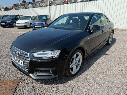 Audi A4 1.4 TFSI S line | 2017 (67) | Just 54,957 Miles | ULEZ Compliant RO67 WPA | Sleek Black Finish | 6-Speed Manual | Only 2 Owners This stunning Audi A4 S line blends executive class with sporty styling and a dynamic drive. Powered by the refined and efficient 1.4 TFSI petrol engine, this saloon delivers a perfect balance of performance and economy, backed by Audi's renowned build quality and cutting-edge design. Finished in timeless Mythos Black, this car comes with S line styling, bold presence, and just the right amount of attitude. With only 54,957 miles and 2 previous owners, it?s been well looked after and is ready for its next chapter. Key Features: 1.4 TFSI Petrol ? 150 BHP 6-Speed Manual Gearbox S line Exterior Styling Pack 18? 5-Twin-Spoke Alloy Wheels LED Headlights & Rear Lights Half Leather S line Sports Seats Flat-Bottom Multifunction Steering Wheel Audi Drive Select Rear Parking Sensors MMI Infotainment System with Bluetooth, DAB, USB, and Voice Control Dual-Zone Climate Control Cruise Control & Speed Limiter ULEZ Compliant Euro 6 Engine Whether you're commuting in comfort or heading out on the open road, this A4 S line offers an incredibly smooth and stylish experience with the versatility of a spacious saloon. ULEZ Compliant & HPI Clear Nationwide Warranty Included Competitive Finance Options Available Part Exchange Welcome Home Delivery Available Across the UK Call us today on 01633 212 398 or 07375 840676 Email: sales@carzon 18in Alloy Wheels - 5-Twin-Spoke Star De, 4-Way Electric Lumbar Support, 6-Airbag System, Anti Theft Locking Wheel Bolts, Anti-Theft Alarm, Audi Connect - 3 Month Trial, Audi Connect Safety and Service - e-call, Audi Drive Select, Audi Smartphone Interface, Audi Sound System, Auto-Dimming Rear-View Mirror, Bluetooth Interface, Body Coloured Door Mirrors, CD Drive, Chrome-Plated Trims for Exhaust System, Cloth Headlining in Black, Cruise Control with Speed Limiter, DAB Digital Radio, Deluxe 3-Zone Electronic Climate Control, Door Handles - Body Coloured, Door Mirrors - Electrically Adjustable a, Driver Information System - 7in Colour D, ESC - Electronic Stabilisation Control i, Electric Boot