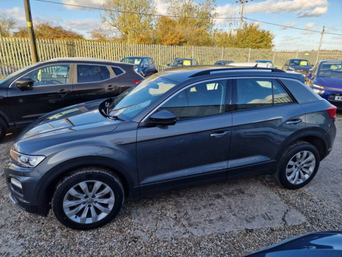 2019 VOLKSWAGEN T-ROC 1.6TDI SE EDITION FINISHED IN INDIUM GREY METALLIC WITH FACTORY ALLOYS! JUST ONE FORMER KEEPER COMPLETE WITH A SERVICE RECORD INCLUDING A CAMBELT AND WATER PUMP REPLACEMENT THIS YEAR. 2 KEYS. FEATURES INCLUDE COLD BLOWING DUAL ZONE AUTO CLIMATE CONTROL, APPLE CAR PLAY, ANDROID AUTO, MIRROR LINK, ADAPTIVE CRUISE CONTROL, AUTOMATIC HEADLIGHTS AND WIPERS, CENTRE ARM REST, ELECTRIC PARKING BRAKE WITH AUTO HOLD, USB PORTS, POWER FOLD WING MIRRORS (FOR THOSE NARROW PARKING SPACES), FRONT AND REAR PARKING SENSORS, VOICE CONTROL, BLUETOOTH AND MEDIA CONNECTIVITY! A BRIGHT GENUINE EXAMPLE THAT DRIVES SUPERB. ULEZ COMPLIANT. SUPPLIED FULLY SERVICED WITH A FULL YEARS MOT. FINANCE AVAILABLE AT COMPETITIVE RATES. CREDIT CARDS ACCEPTED. PART EXCHANGE WELCOME. NO PRESSURE NO HASSLE SALES STAFF. OVER 60 YEARS COMBINED MOTOR TRADE EXPERIENCE. ALL CARS HPI SAFETY CHECKED. SUCCESSFULLY TRADING FOR OVER 25 YEARS. FIND US ON FACEBOOK AND LIKE OUR PAGE. FOCUS CAR SALES 01284 850756. 12V Socket in Centre Console in Storage , 17in Alloy Wheels - Kulmbach, 2x USB Connection - USB Charging Sockets, ABS - Anti-Lock Braking System, Adaptive Cruise Control, Airbags - Front Seat Side Impact, Alarm, Armrest - Front Centre, Automatic Dimming Interior Rear View Mir, Automatic Hazard Lights Activation Under, Automatic Leaving Home and Manual Coming, Black Grained Lower Door Protectors, Black Grained Wheel Arches, Body Coloured Bumpers with Silver Metall, Body Coloured Door Mirrors with Integrat, Body-Coloured Door Handles, Car-Net App-Connect, Chrome Trim on Radiator Grille - Upper a, Climate Control - 2Zone Electronic Air C, Composition Media System, Cup Holders - Front x2, Curtai