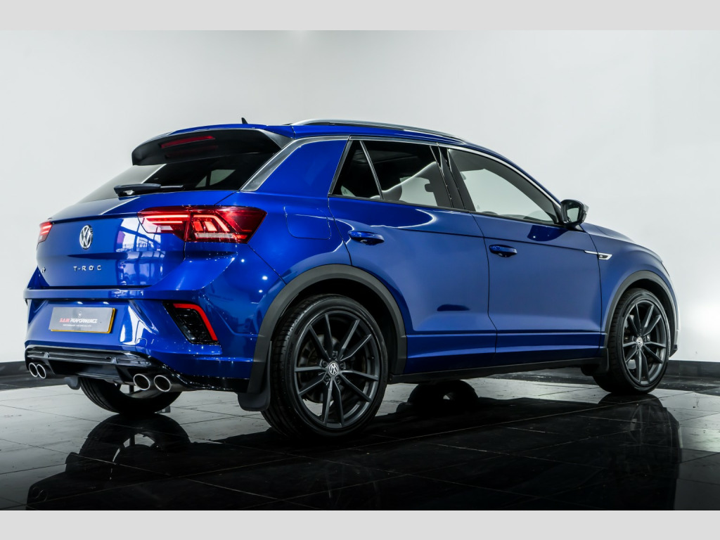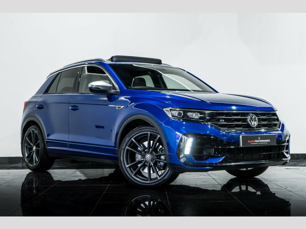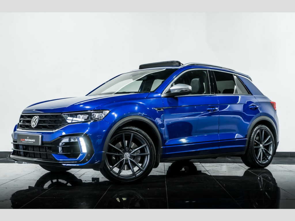 2020 Volkswagen T-Roc 2.0 TSI R SUV 5dr Petrol DSG 4Motion in Lapiz Blue with contrasting Alcantara interior. This car comes with: Full Service History, Panoramic Sunroof, Reverse Camera, DCC (Dynamic Chassis control) Virtual Cockpit, Upgraded 19 inch Pretoria Alloy Wheels, Apple Carplay, Park Pilot (front and rear Parking Sensors), Auto Hill Hold Assist, Heated Seats, carbon Mirror Caps, Interior Rear View Mirror Camera, Electric Folding & Heated Door Mirrors, Dab Radio, Privacy Glass, 7 Speed Gearbox, VW Drive Select, Multi Functional Steering Wheel, Adaptive Cruise Control, LED Daytime Running Lights plus much more... , This vehicle has the following modifications: Star Light Roof (Interior), Maxton Design Kit, Stage 1 Remap. carbon Style front Bonnet (This can be taken off upon request). , All our vehicles at S A M Performance are HPI Clear. We offer low rates finance packages tailored to suit every individual, subject to terms and conditions. For more information speak to our sales team today on 01706 659966 or to view our stock list go on to our website www.samperformance.co.uk, , NATIONWIDE DELIVERY AND CLICK & COLLECT SERVICE NOW AVAILABLE. , VIEWINGS BY APPOINTMENT ONLY.